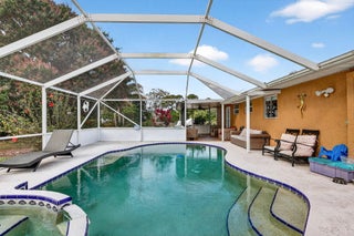 Rare in-town find! Immaculate, move-in-ready home on a huge lot, perfect for boaters or RV owners. Features include a screened in-ground pool, oversized 2-car garage, fully fenced yard with sliding gate, new pavilion patio, cabana bath, and lush landscaping. Quiet cul-de-sac with sidewalks, across from waterfront homes. New roof, new A/C, updated appliances. Blocks to River Park Marina with boat ramps, parks, and fishing. A true needle in a haystack.