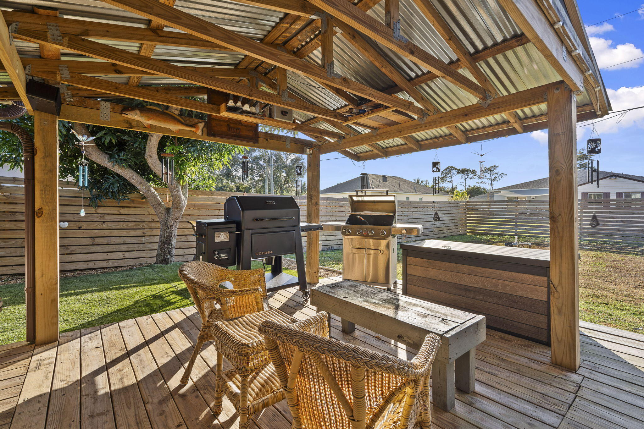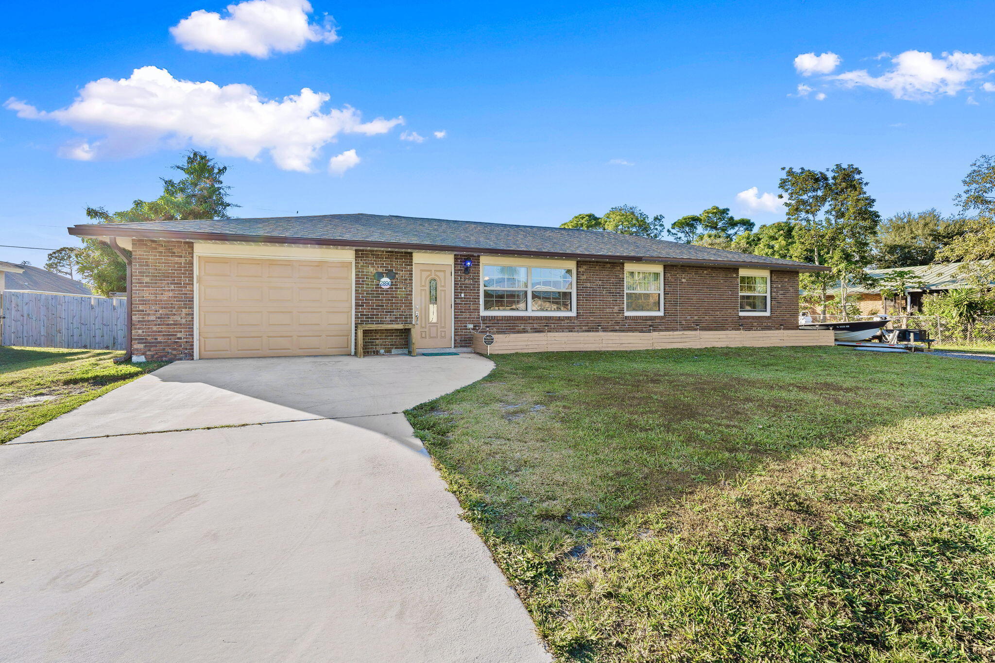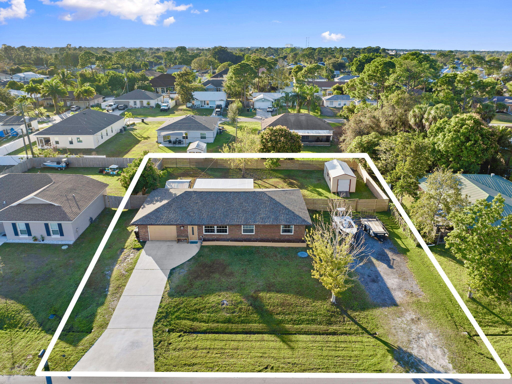 This Home offers a comfortable and functional layout with generous indoor and outdoor space, designed for everyday living and long-term use.Inside, the home features a practical floor plan that flows naturally from room to room, providing flexibility for both daily routines and entertaining. The kitchen has been updated in recent years with granite countertops and durable finishes, offering a clean, functional workspace that connects easily to the main living areas. Tile and laminate wood flooring throughout the home add durability and ease of maintenance.A full laundry room with a mud-room-style bathroom located just off the garage creates a highly functional transition space -- ideal for busy households, projects, or coming infrom the yard without tracking through the home. The backyard is where this property truly opens up. Fully fenced for privacy, the outdoor space includes a dedicated gazebo grilling area well-suited for gatherings or quiet evenings. Mature fruit trees add character and shade, creating a yard that feels established and usable rather than overbuilt. Side-yard access with a culvert and double gate provides valuable flexibility for storage, recreational equipment, or future needs. A 12x24 shed with power further enhances the versatility of the property. Additional improvements include a newer roof and a yard layout that supports a variety of lifestyles, hobbies, and uses. This home offers a strong balance of comfort, function, and outdoor space, with features that support real living rather than short-term trends. Conveniently located in Port St. Lucie with easy access to shopping, dining, and major roadways.