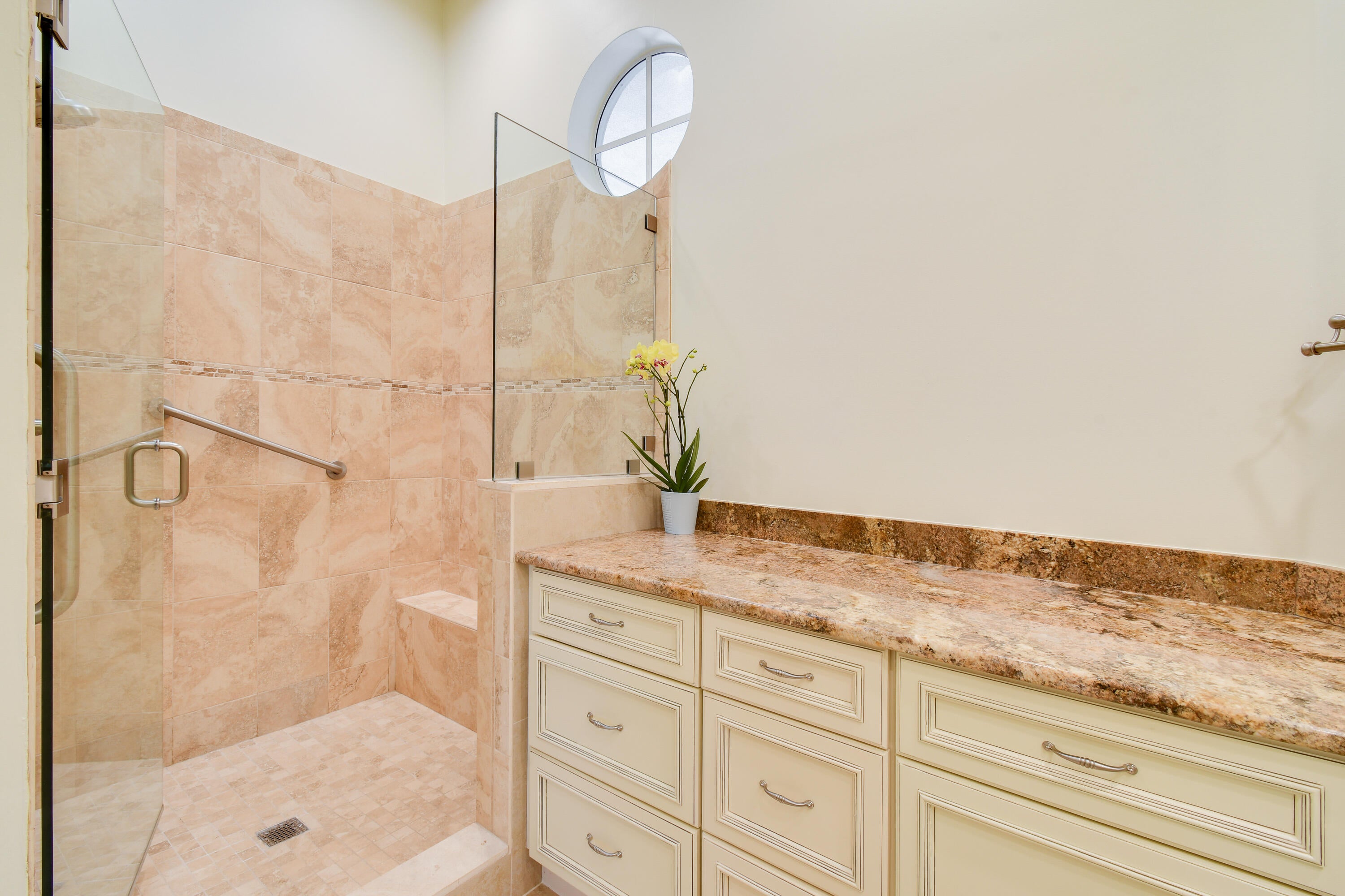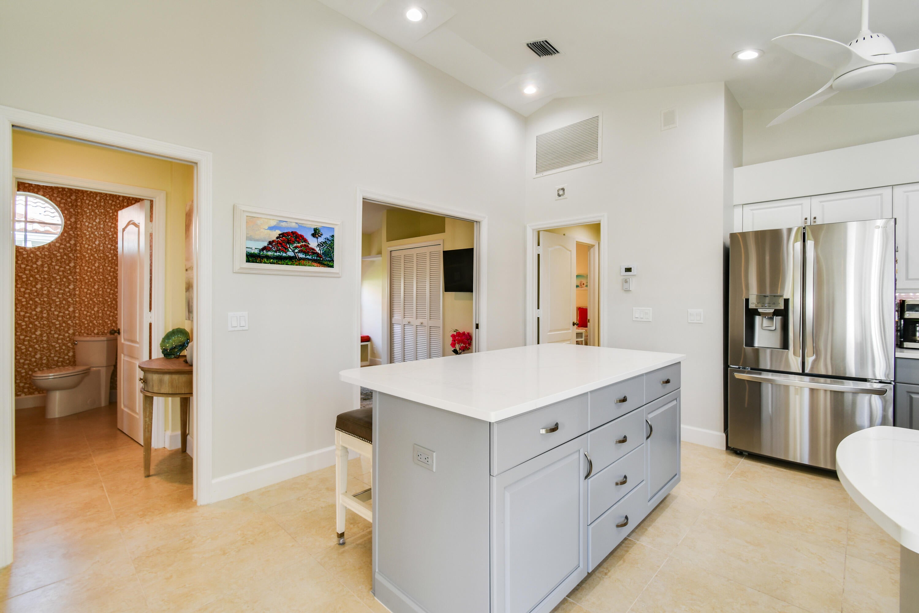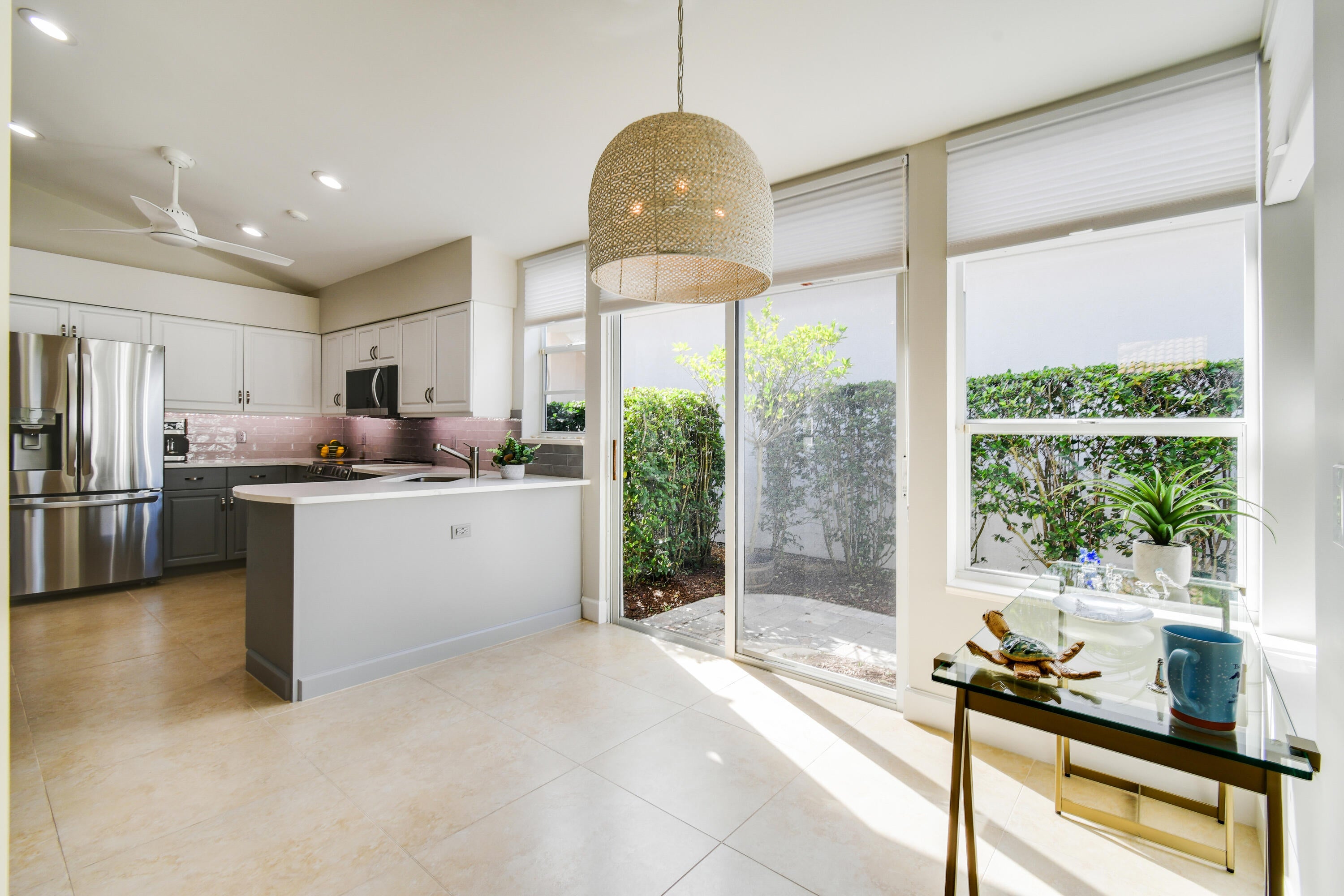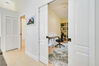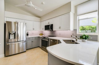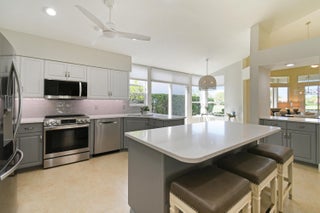 Tucked within the intimate enclave of Fig Tree Village, this beautifully updated one-story single-family residence offers refined living in a private, resort-style setting with serene views of the 18th hole of the River Ridge course. Spanning 1,756 A/C Sqft, the home features three spacious bedrooms (3rd bedroom currently used as office), two and a half baths, and a thoughtfully designed layout complemented by a two-car garage with epoxy flooring and an extended driveway. Major system upgrades provide peace of mind, including a 2020 roof, 2021 A/C, and a new 2025 water heater. At the heart of the home, the newly renovated kitchen blends style and functionality with stainless steel appliances, quartz countertops, a striking glass tile backsplash, and elegant two-toned cabinetry anchored bya statement islandperfect for both everyday living and entertaining. The bathrooms have been tastefully renovated with custom-built vanities, stone countertops, and glass-enclosed showers, creating spa-like retreats. Throughout the home, you'll find wood and tile flooring (no carpet), custom window treatments, new remote-controlled ceiling fans, updated light fixtures, and custom closet built-ins that elevate both comfort and organization. Outdoor living is equally impressive. A screen-enclosed patio with tumbled stone flooring invites relaxed mornings and evening gatherings, while a secondary paver patio extends your entertaining space or a perfect area to BBQ. Fig Tree Village is a boutique HOA community of just 22 patio homes, offering residents access to a community pool with an outdoor kitchen in a peaceful, low-maintenance environment. Beyond the Fig Tree neighborhood, Harbour Ridge stands out as one of South Florida's most premier private club memberships, offering an unparalleled lifestyle. From championship golf and boating to fitness, tennis, pickleball, dining, and nature experiences within a Certified Audubon Cooperative Sanctuary, the community delivers exceptional amenities paired with personalized, first-class service. This move-in-ready home presents a rare opportunity to enjoy elegant living, scenic views, and a world-class club lifestyleall in one exceptional setting.
