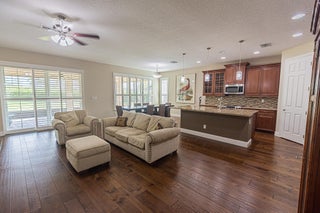 Welcome to effortless Florida living in Vitalia, a premier 55+ gated community. This beautifully appointed 2-bedroom home with den/flex room sits on an oversized, private lot and features a whole-house solar system (paid in full!) plus impact glass windows for peace of mind. The open floor plan showcases tile and wood flooring, plantation shutters throughout. The chef's kitchen boasts granite counters, 42'' wood cabinetry, and stainless steel appliances. The spacious primary suite offers spa like bathroom with dual sinks and a walk-in shower. Relax on the oversized screened lanai or enjoy resort-style amenities including a pool, pickleball, fitness center, clubs, and more. Schedule your showing today!