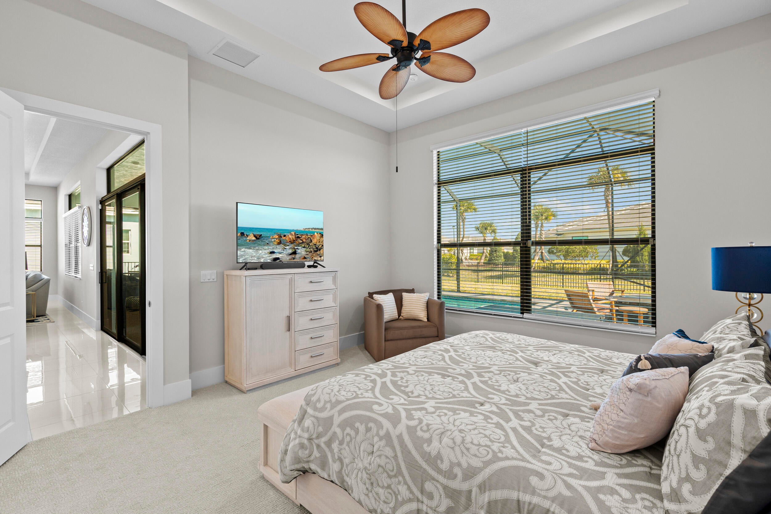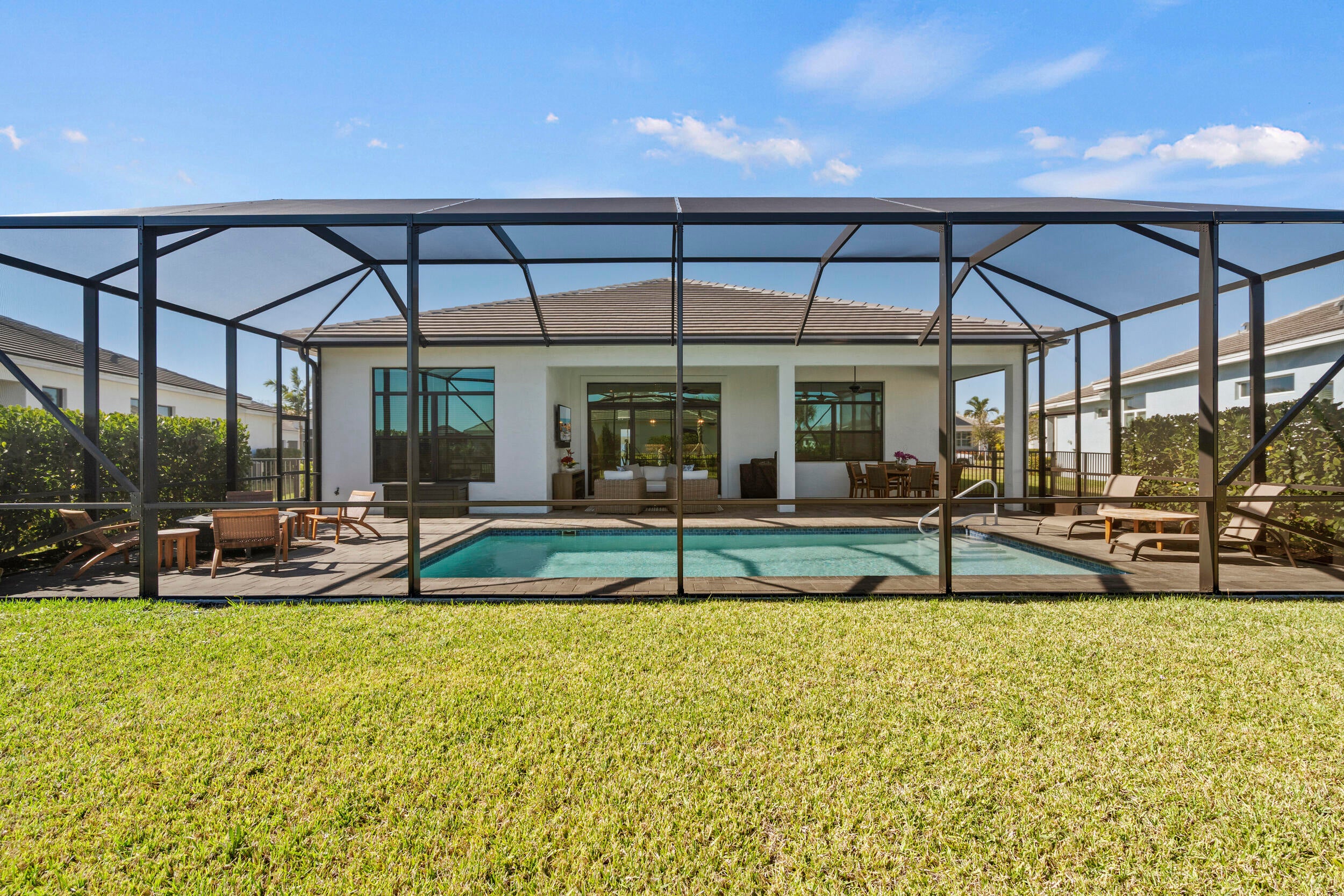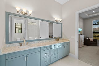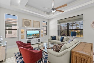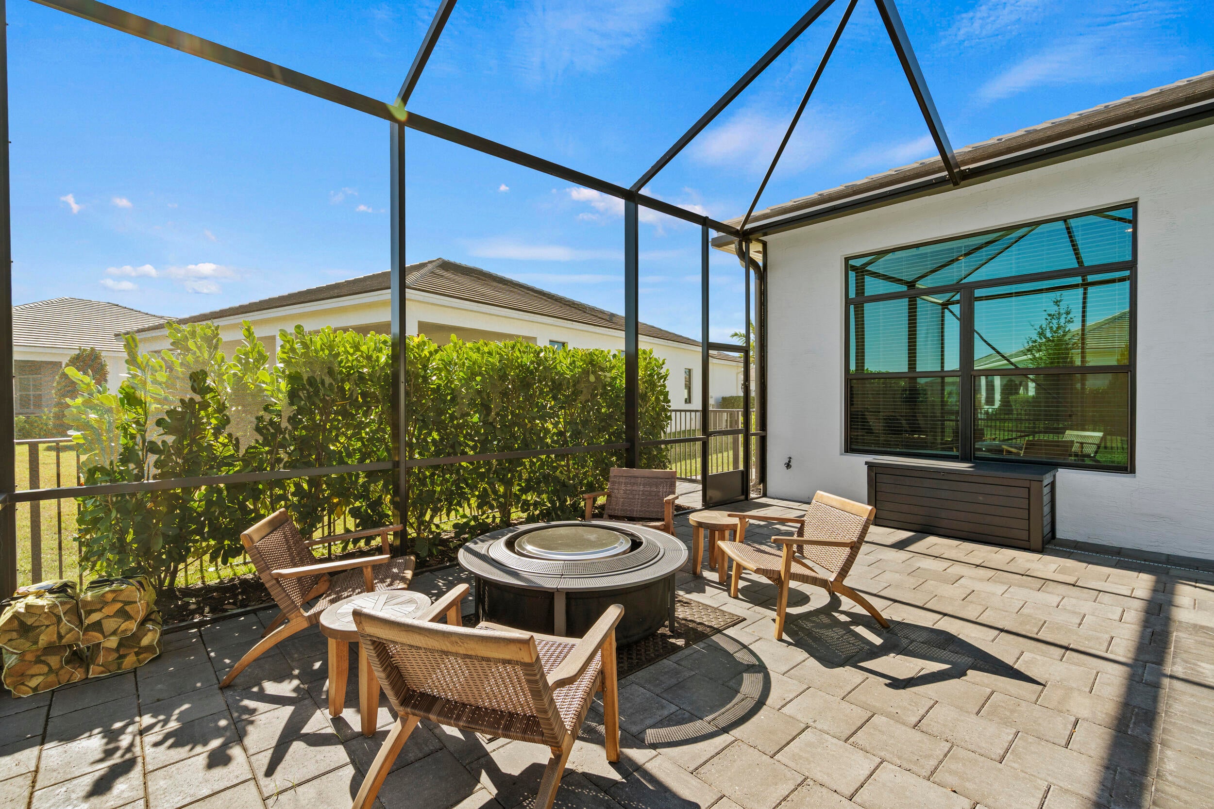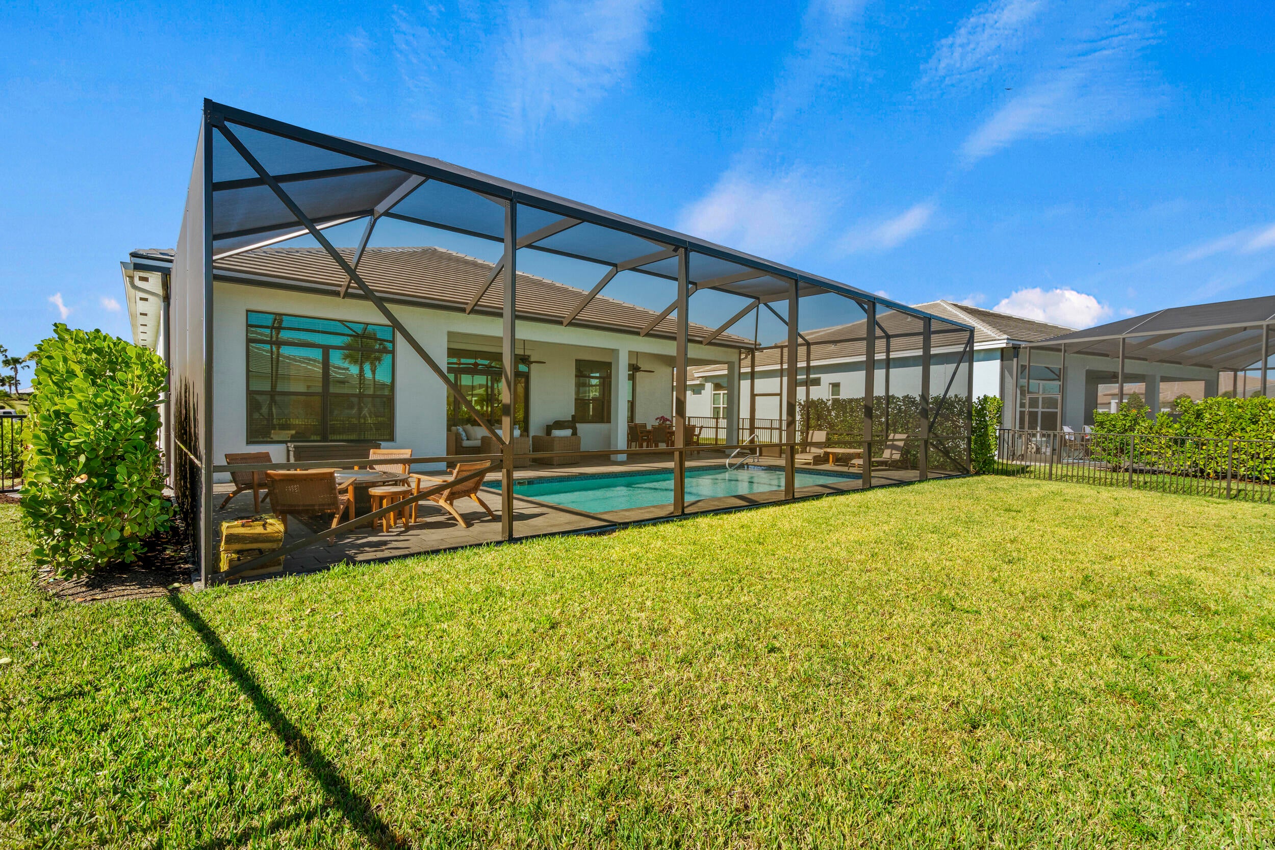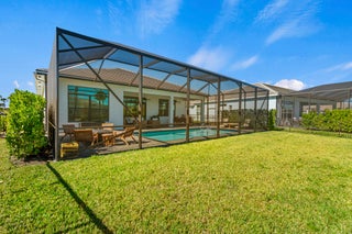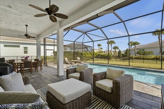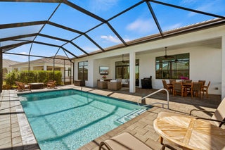 Stunning ''Paige Model'' from the Hepburn Collection at Verano PGA Village. Like New home shows like a MODEL! Contemporary design features CBS Construction, Flat tile roof, paver driveway, Hurricane Impact Windows & fabulous screen enclosed pool with fenced in yard offering tropical setting on spacious lot. Hosts 3 BR's, 3 BA's, Office/den with custom built-in's & 3 Car Garage. Foyer entrance, gorgeous porcelain tile, Plantation Shutters, Split Floor Plan, volume ceilings with custom trays & wonderful Open Floor Plan. Gourmet Kitchen boasts quartz countertops, glass backsplash, stainless steel appliances, hood, cooktop stove, wall oven & walk in pantry w/wood shelves. Grand Master Suite w/ natural lighting, LG walk in closet with custom built-in's & Bath includes LG shower & dual sinks.Exceptional outside area with sliding glass doors to covered patio, beautiful salt, electric heated pool with screened enclosure lanai 46 x 24, is perfect to entertain. HOA includes: Recreation clubhouse Talavera, lawn care, exterior pest control, cable, high speed internet, alarm monitoring & manned gated security. PGA Verano is a resort style community with 27 pickle ball courts, tennis courts, fitness centers with state of the art equipment, indoor and outdoor pools, saunas, and dog park. Exceptional Talavera Social Club 19,000 sq ft offers something for everyone! There is a golf cart path to the PGA Golf Club which offers 3 Public Championship Golf Courses and Private Course (membership optional). Located minutes from Shopping, Restaurants, Activities, Entertainment & Even Home of the New York Mets Spring Training. Only 45 Minutes from Palm Beach Airport and a growing area. The Treasure Coast has beautiful Waterways for the Beach, Fishing & Boating. Due to the location of the Treasure Coast the Weather is delightful! Schedule your private showing today- this gem won't last!