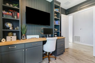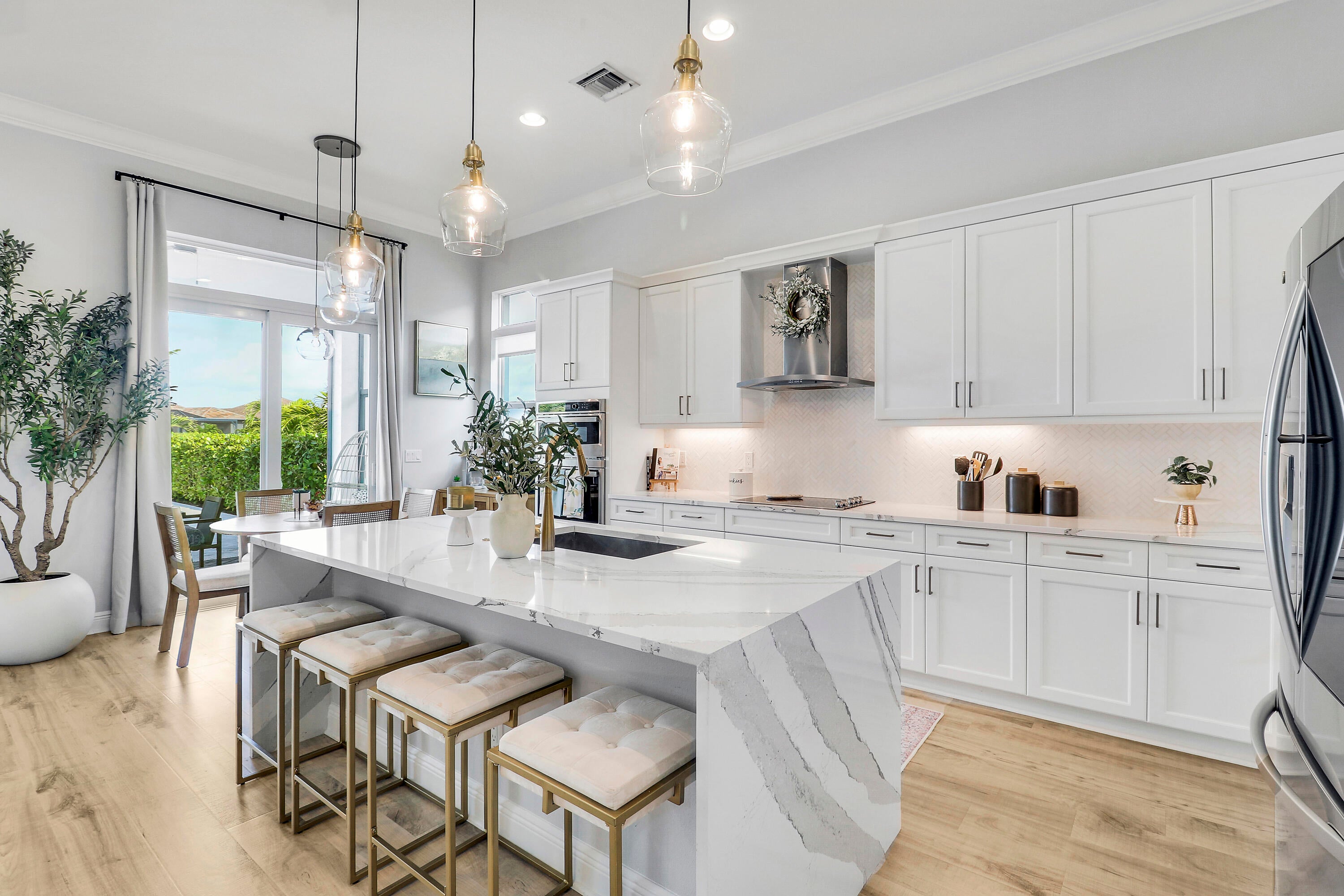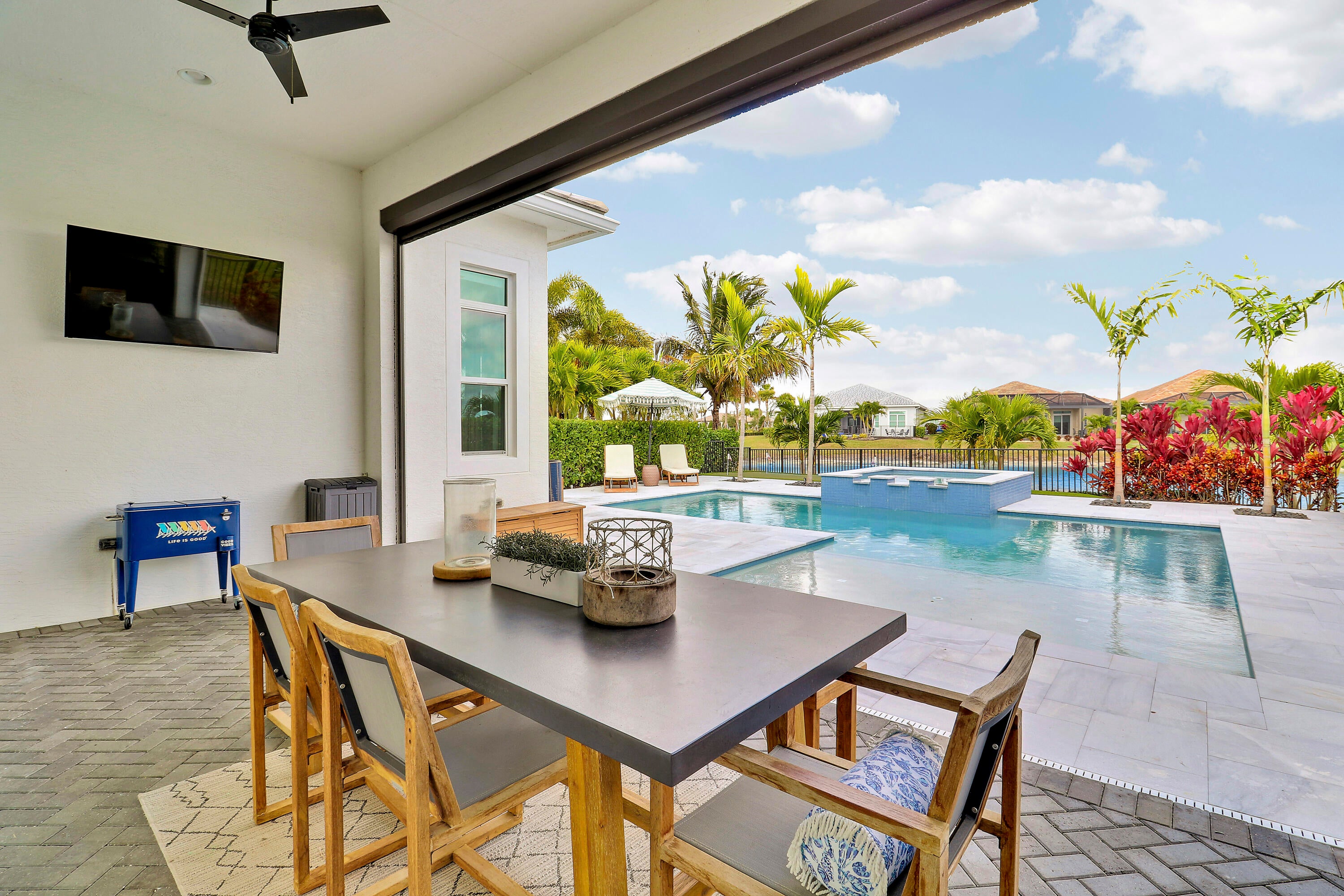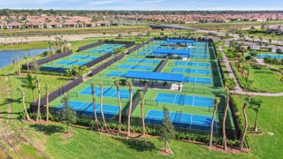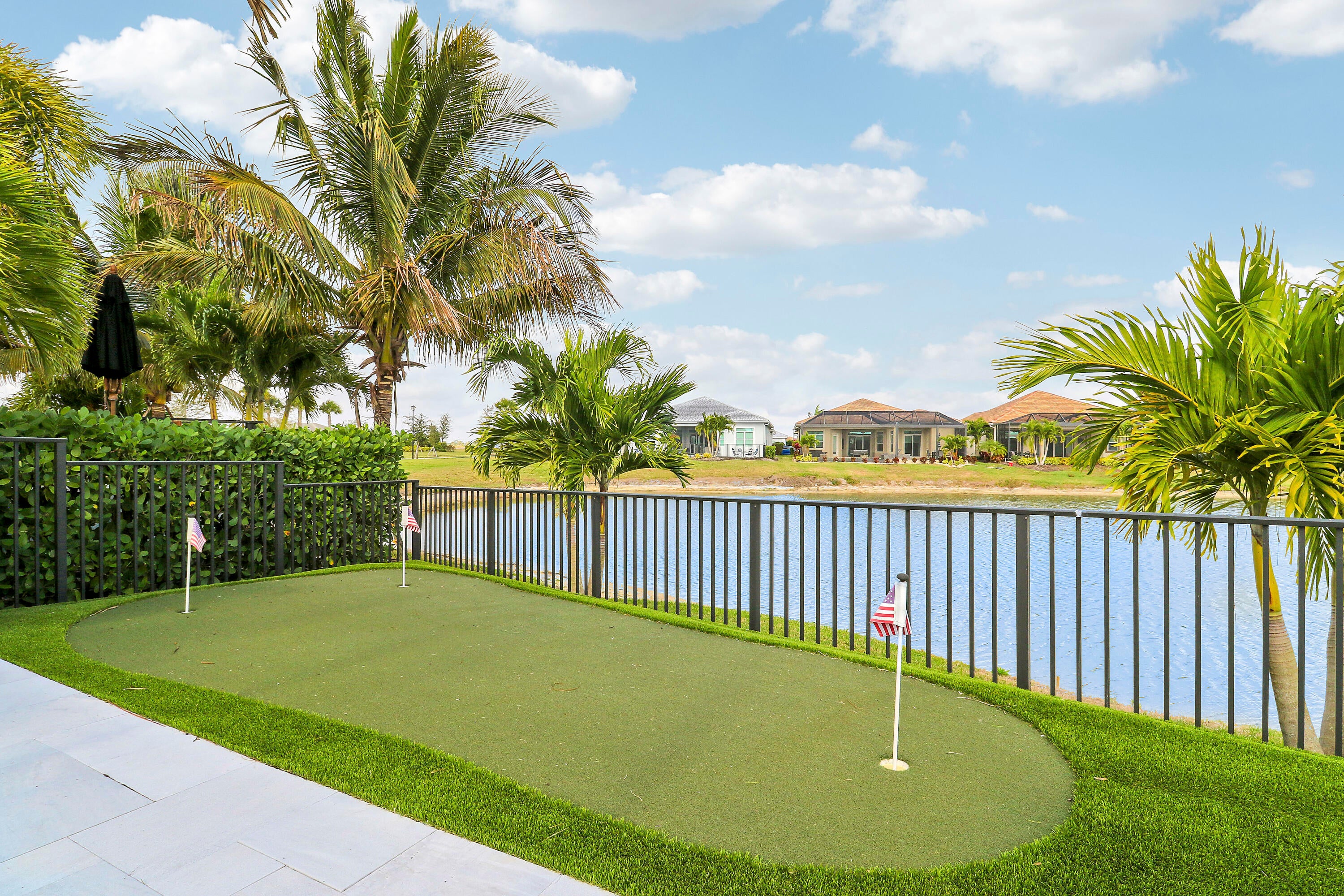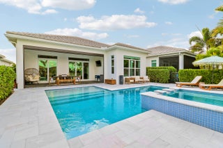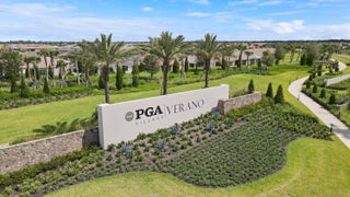 CASUAL ELEGANCE IN THIS BEAUTIFULLY UPGRADED LAKE FRONT POOL HOME BUILT IN 2021! This 3BR+DEN/3BA/2CG Siena floor plan will not disappoint! You'll notice the GORGEOUS UPGRADES the moment you walk through the front door with LVP plank flooring in main living areas, custom woodwork t/o, elegant lighting & ceiling fans, designer draperies, closet organizers, upgraded baths and more. The kitchen is an entertainers dream, open to the living area and features white cabinets, light quartz counters with waterfall detail, tile backsplash, upgraded hood vent and SS appliances. Living room feature wall has built in cabinetry and electric fireplace. The serene primary suite overlooks the lake and has a spa-like ensuite with huge walk-in closet. Two other bedrooms have access to their own bathrooms.The flex space makes for a great home office with built in desk unit, beautiful paneling and double doors, making it easily usable as another bedroom if needed. THE OUTDOOR SPACE IS A DREAM with large covered area with retractable screen, tropical landscaping with landscape lighting, sand blasted marble paver deck and even your own putting green! Float around in the INCREDIBLE heated POOL & SPA with splash deck, waterfall and gorgeous tile work! Verano is an amenity rich community with a 27-court pickleball facility, walking paths, indoor and outdoor pools, multiple fitness centers, sauna, dog park, resistance pool, e-gym, tennis courts, social clubhouse with activities and so much more! HOA dues include basic cable, internet, alarm monitoring, lawn care, common area maintenance gated security and access to all amenities. For avid golfers, there is a cart path from the community leading to the PGA Golf Club (membership is optional and availability varies). This community truly has something for everyone! Don't miss out on this fantastic opportunity! Call today and start enjoying all that Florida living has to offer!