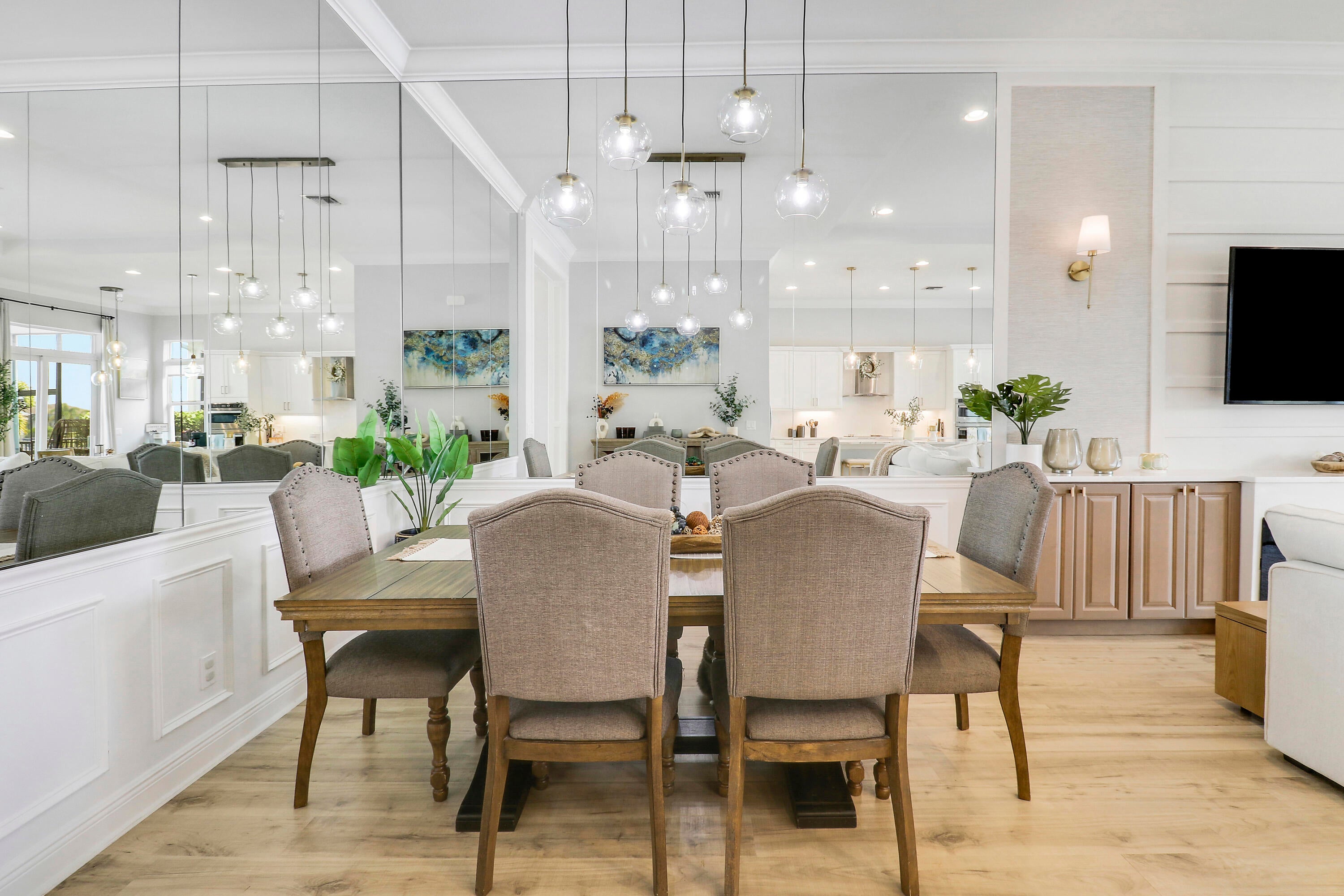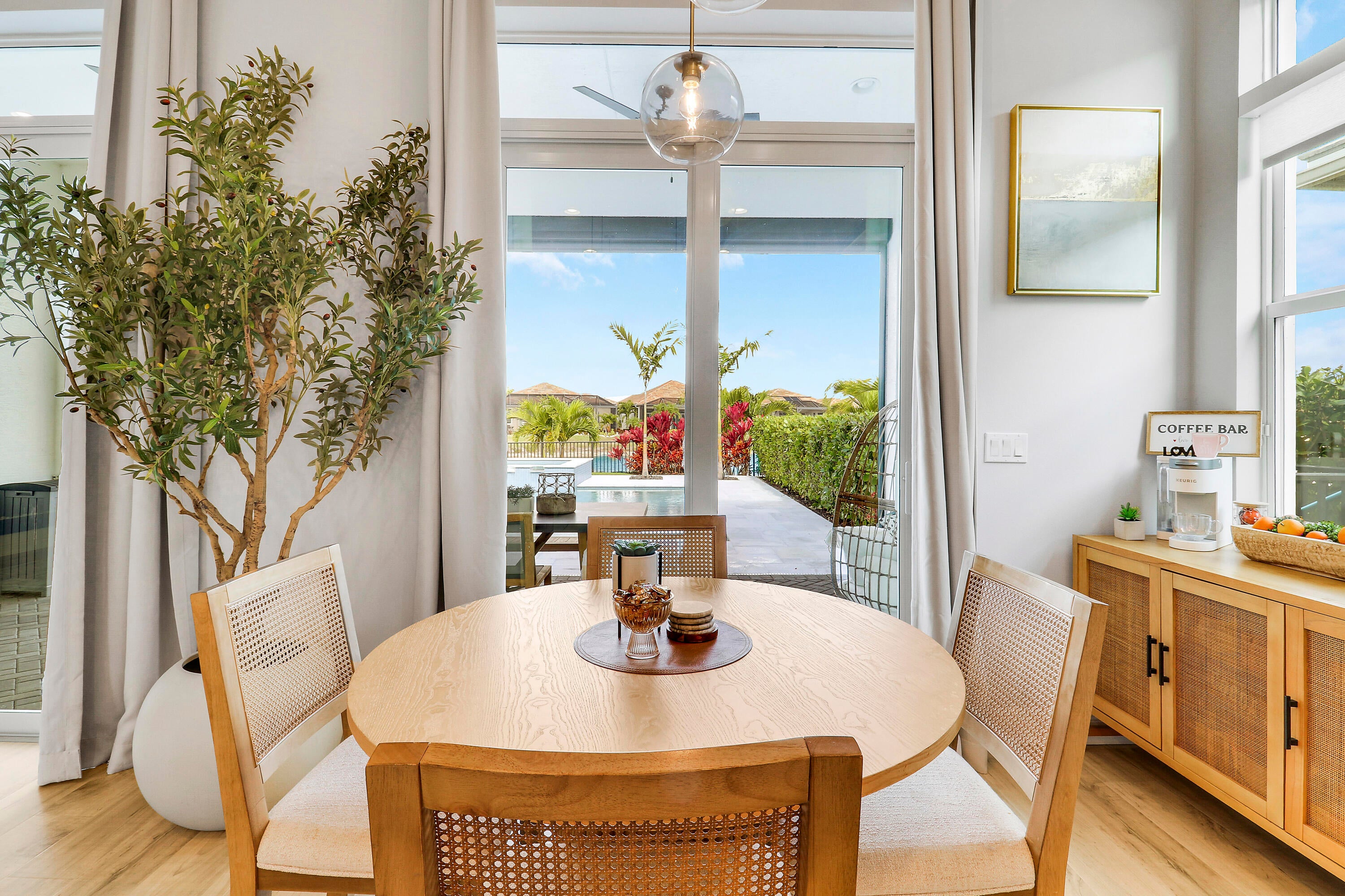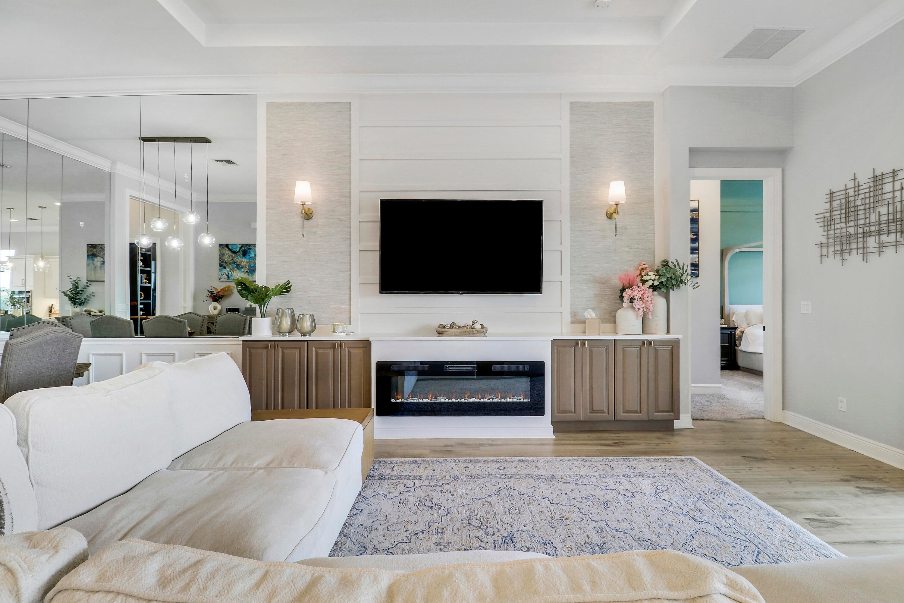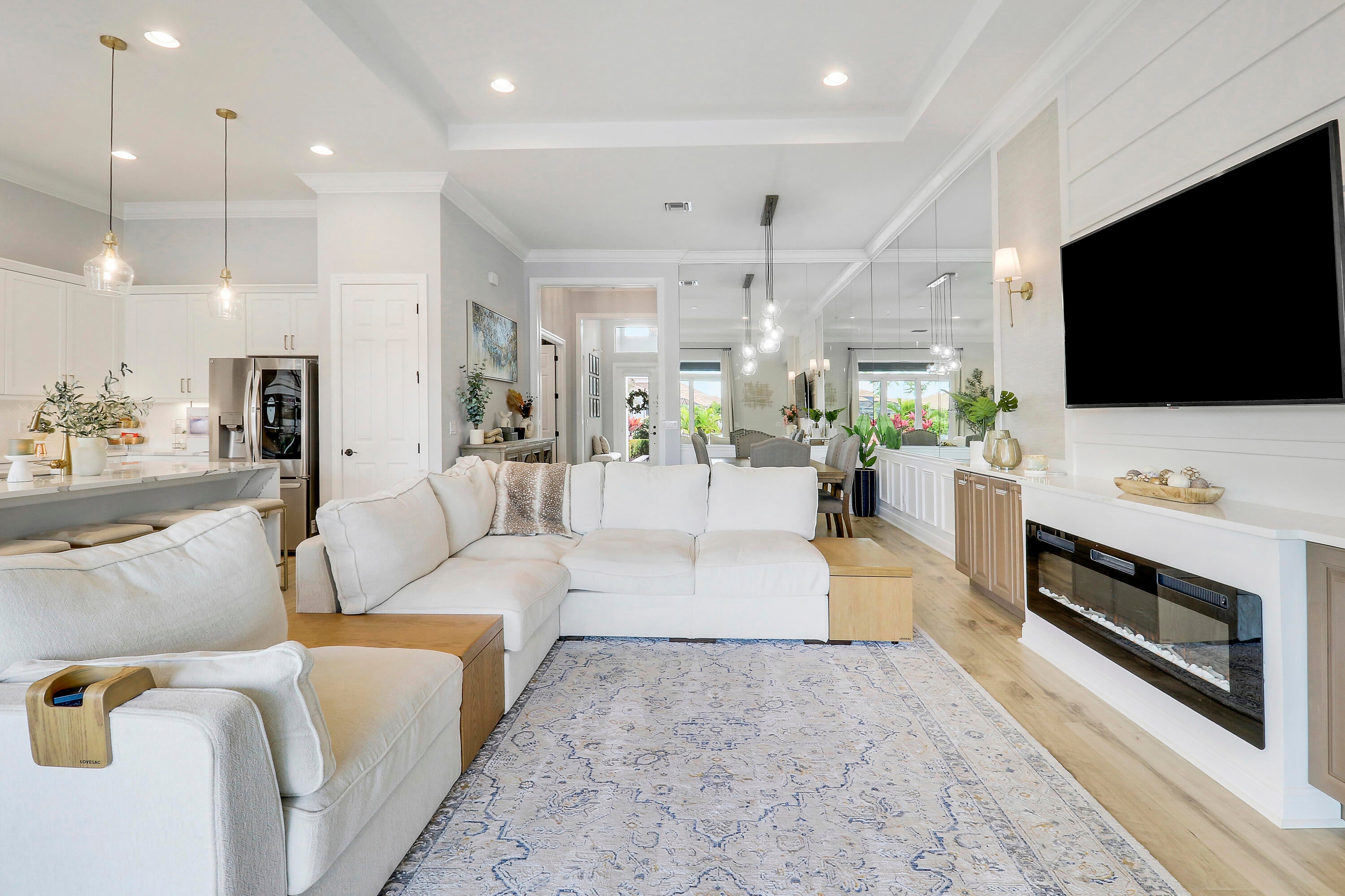 CASUAL ELEGANCE IN THIS BEAUTIFULLY UPGRADED LAKE FRONT POOL HOME BUILT IN 2021! This 3BR+DEN/3BA/2CG Siena floor plan will not disappoint! You'll notice the GORGEOUS UPGRADES the moment you walk through the front door with LVP plank flooring in main living areas, custom woodwork t/o, elegant lighting & ceiling fans, designer draperies, closet organizers, upgraded baths and more. The kitchen is an entertainers dream, open to the living area and features white cabinets, light quartz counters with waterfall detail, tile backsplash, upgraded hood vent and SS appliances. Living room feature wall has built in cabinetry and electric fireplace. The serene primary suite overlooks the lake and has a spa-like ensuite with huge walk-in closet. Two other bedrooms have access to their own bathrooms.The flex space makes for a great home office with built in desk unit, beautiful paneling and double doors, making it easily usable as another bedroom if needed. THE OUTDOOR SPACE IS A DREAM with large covered area with retractable screen, tropical landscaping with landscape lighting, sand blasted marble paver deck and even your own putting green! Float around in the INCREDIBLE heated POOL & SPA with splash deck, waterfall and gorgeous tile work! Verano is an amenity rich community with a 27-court pickleball facility, walking paths, indoor and outdoor pools, multiple fitness centers, sauna, dog park, resistance pool, e-gym, tennis courts, social clubhouse with activities and so much more! HOA dues include basic cable, internet, alarm monitoring, lawn care, common area maintenance gated security and access to all amenities. For avid golfers, there is a cart path from the community leading to the PGA Golf Club (membership is optional and availability varies). This community truly has something for everyone! Don't miss out on this fantastic opportunity! Call today and start enjoying all that Florida living has to offer!