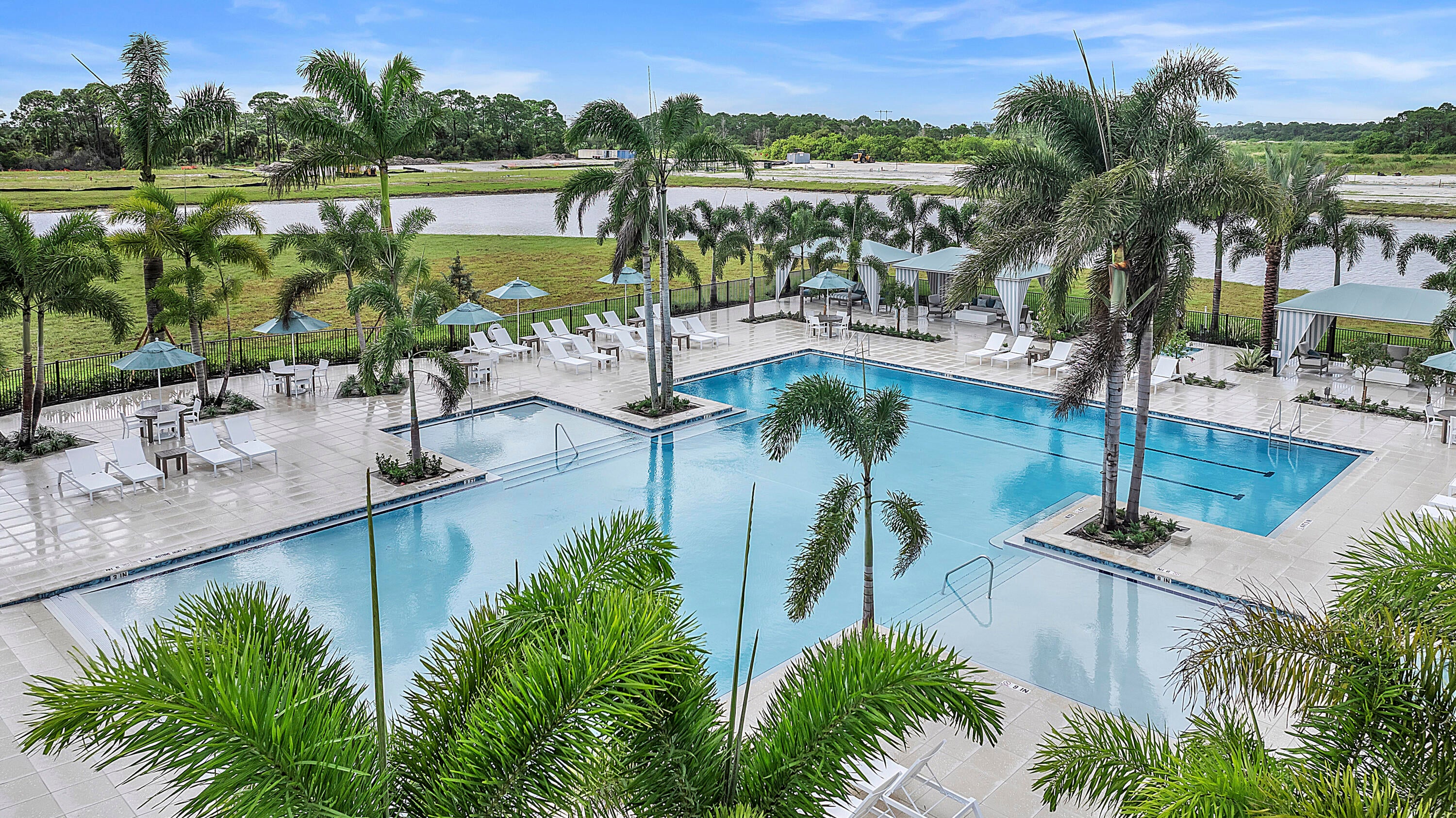 Introducing the Spring Lake IV home plan from the Villa Collection at Four Seasons at Wylder, an exceptional 55+ active adult community in Port St. Lucie, Florida. This desirable homesite features peaceful preserve views, offering a serene and private backdrop. The stylish villa presents a designer-curated Loft aesthetic with porcelain wood-look tile throughout. The striking kitchen features white cabinetry and is beautifully appointed with Soapstone Mist quartz countertops and a spacious island overlooking the open dining and great room--perfect for both everyday living and entertaining. Architectural ceiling details and abundant natural light further enhance the home's modern elegance. A thoughtfully designed layout includes a home office with barn door just off the foyer, an open greatroom and dining area, and a private primary suite featuring triple windows. The relaxing primary bath offers a freestanding vanity, while a convenient laundry room provides direct access to the two-car garage. Residents enjoy a true resort-at-home lifestyle with access to an impressive array of amenities, activities, and social opportunities.