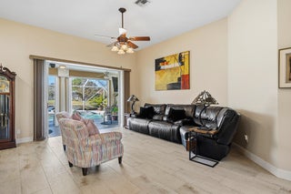 Experience refined living in this beautifully updated pool home set along a picturesque lake in a prestigious, tree-lined gated golf club community, conveniently close to shopping, dining,and everyday conveniences, this home delivers both luxury and lifestyle. High ceilings enhance the light-filled interior, showcasing a stunningly updated kitchen, elegant baths, and designer wood-look plank flooring. The home also features a versatile flex space offering endless possibilities and is ideal for use as a den, home office, sitting area, playroom or recreation room. Outdoors, an inviting, expansive living space with pool and spa overlooks the serene lake, where spectacular sunset views create an unforgettable backdrop.