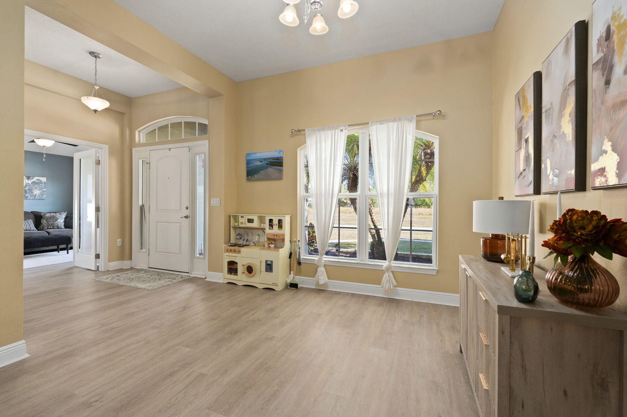 Featuring 4 bedrooms, 3 bathrooms, and a flex room/den, this home offers 2,315 sq ft of thoughtfully designed living space. Newer flooring flows throughout the home, complementing the rich espresso cabinetry, granite countertops, and stainless steel appliances. A desirable split floorplan and high ceilings create an open, airy feel while providing privacy for owners and guests alike. Welcome to 2066 SW Quarry Street!The primary suite is a true retreat, featuring direct access to the patio, two walk-in closets, dual vanities, a separate shower, and a relaxing soaking tub. Across the home, the private 2nd bedroom has convenient access to the 2nd bathroom. The back corner of the home features the 3rd & 4th bedrooms and a 3rd bathroom that offers convenient cabana access to the fully fenced backyardideal for future outdoor entertaining, with plenty of room to add a pool. Perfectly positioned in the heart of the Treasure Coast, this home is just minutes from Tradition (without the HOA), St. Lucie West, Clover Park (Mets Stadium), I-95, top healthcare facilities, shopping, dining, and everyday conveniences. Enjoy quick access to downtown Fort Pierce, downtown Stuart, many golf courses, area beaches, and multiple boat ramps - making it easy to embrace the Florida lifestyle. A well-appointed home in a prime central location - this one checks all the boxes.
