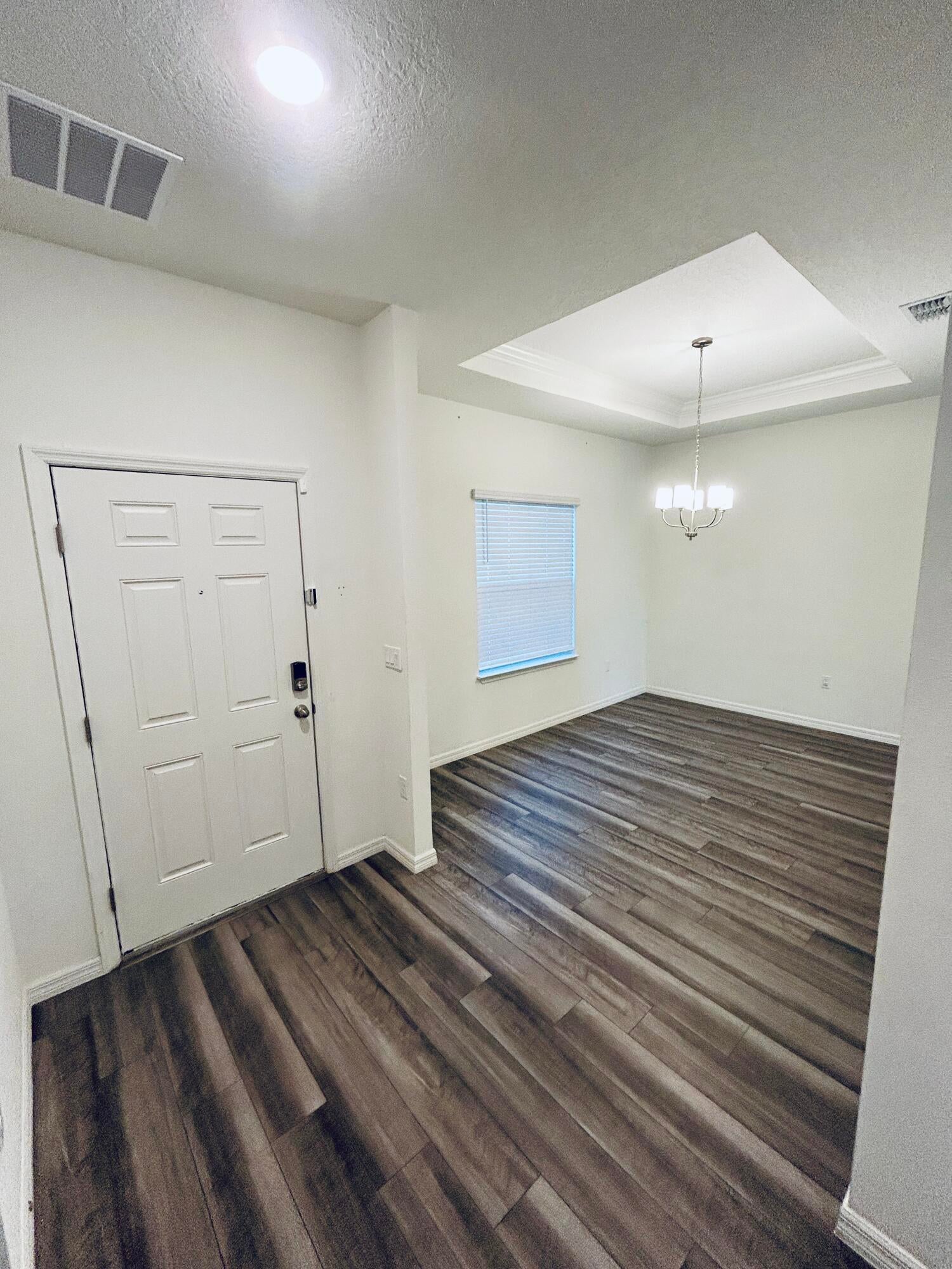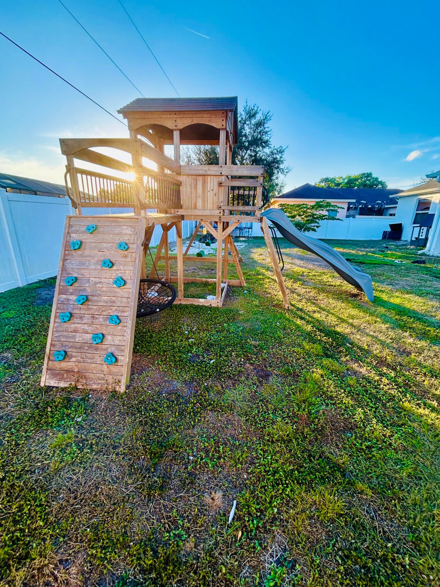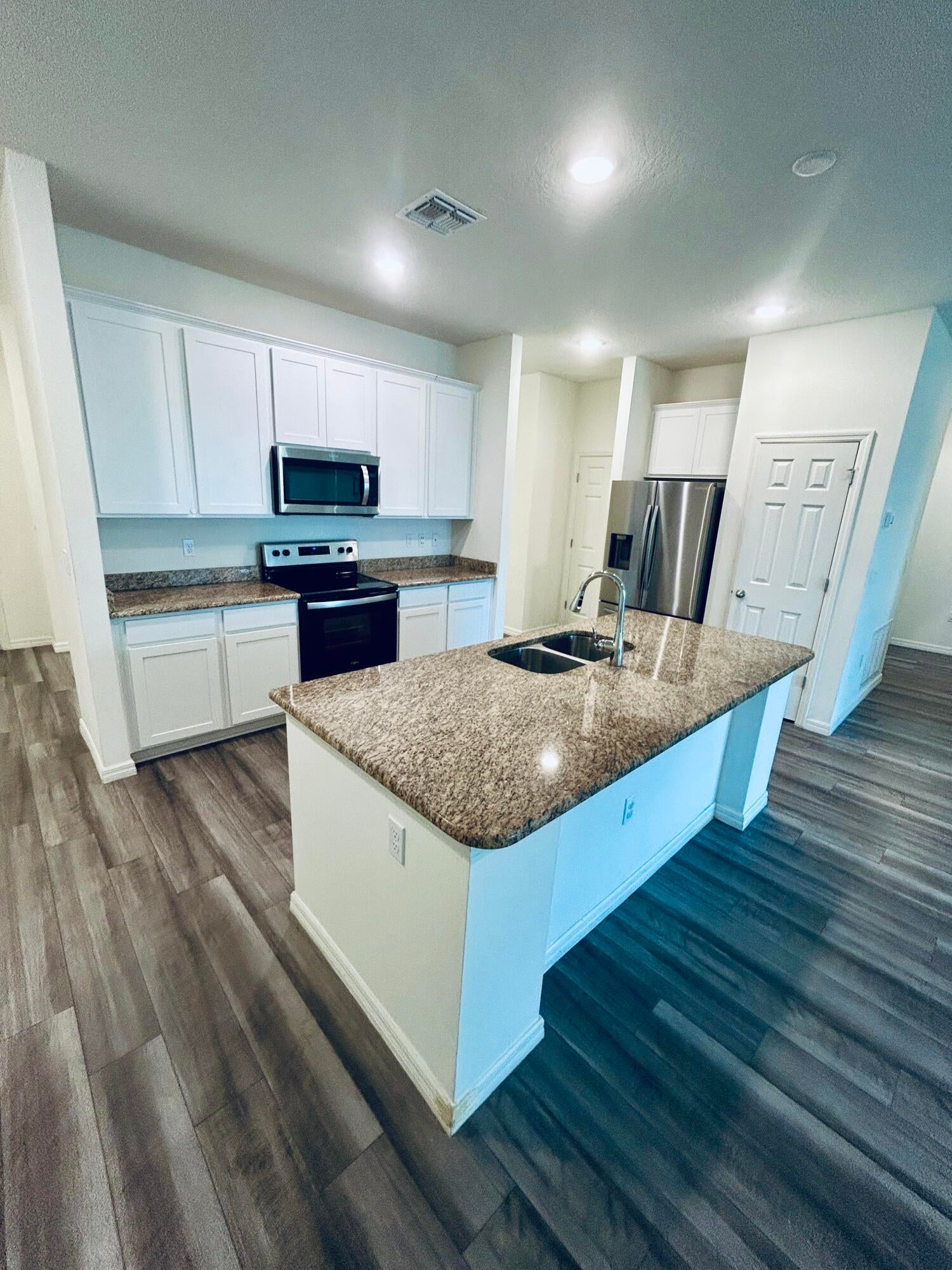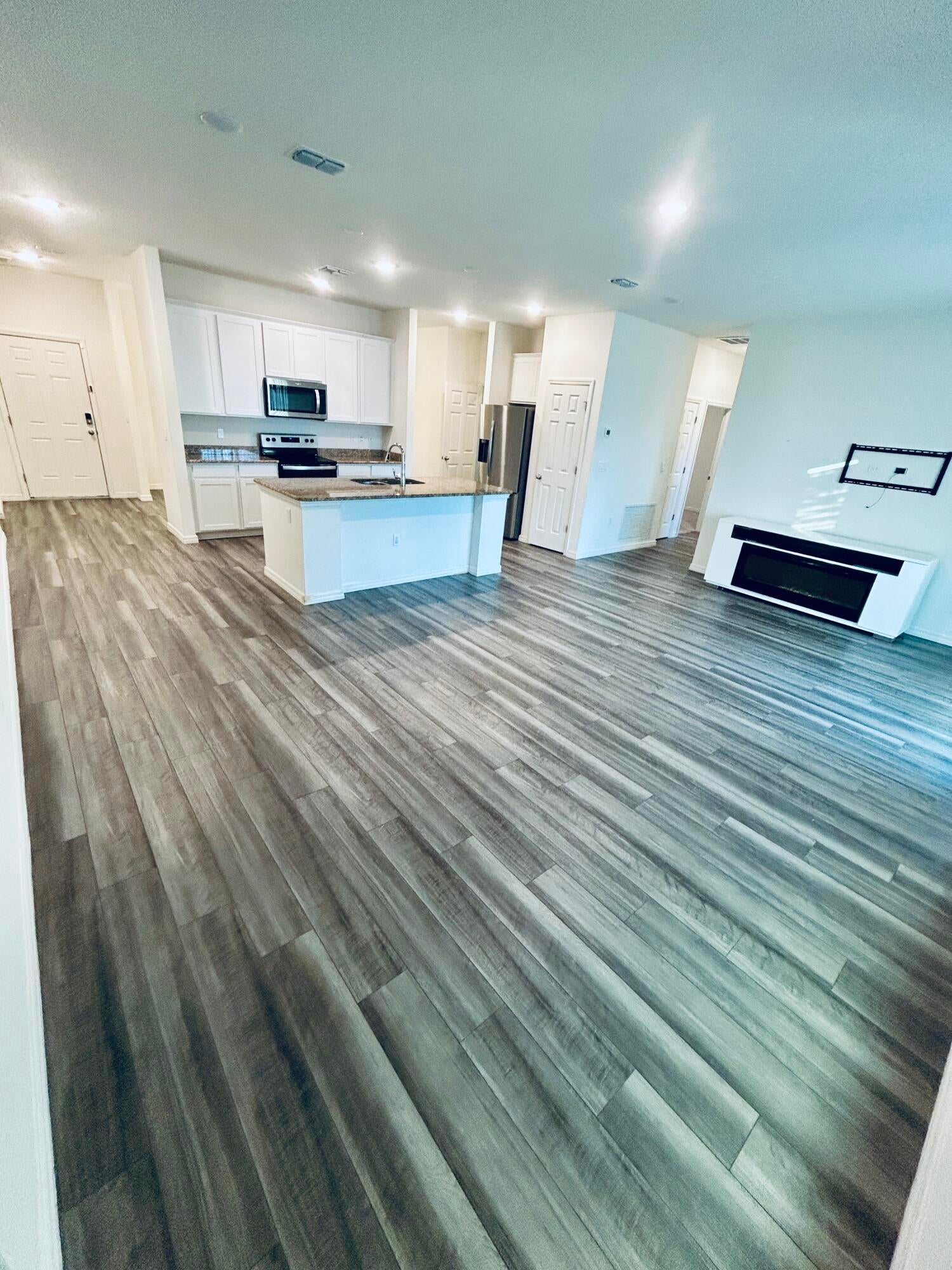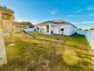 Welcome to this 2022-built gem spanning 1,869 sq. ft., Step inside this spacious 4-bedroom, 2-bathroom home to find a bright, open floor plan featuring durable vinyl flooring throughout the main living areas. The kitchen boasts sleek granite countertops and a suite of high-end appliances, including a brand-new dishwasher (Sept 2025). Granite surfaces carry through to both bathrooms, including a thoughtfully updated master suite .Enjoy the Florida breeze on your private lanai, overlooking a backyard secured by a premium vinyl fence. This home also features 8 hardwired security cameras and the added reliability of underground power lines. The professional playground set in the backyard is included in the sale!