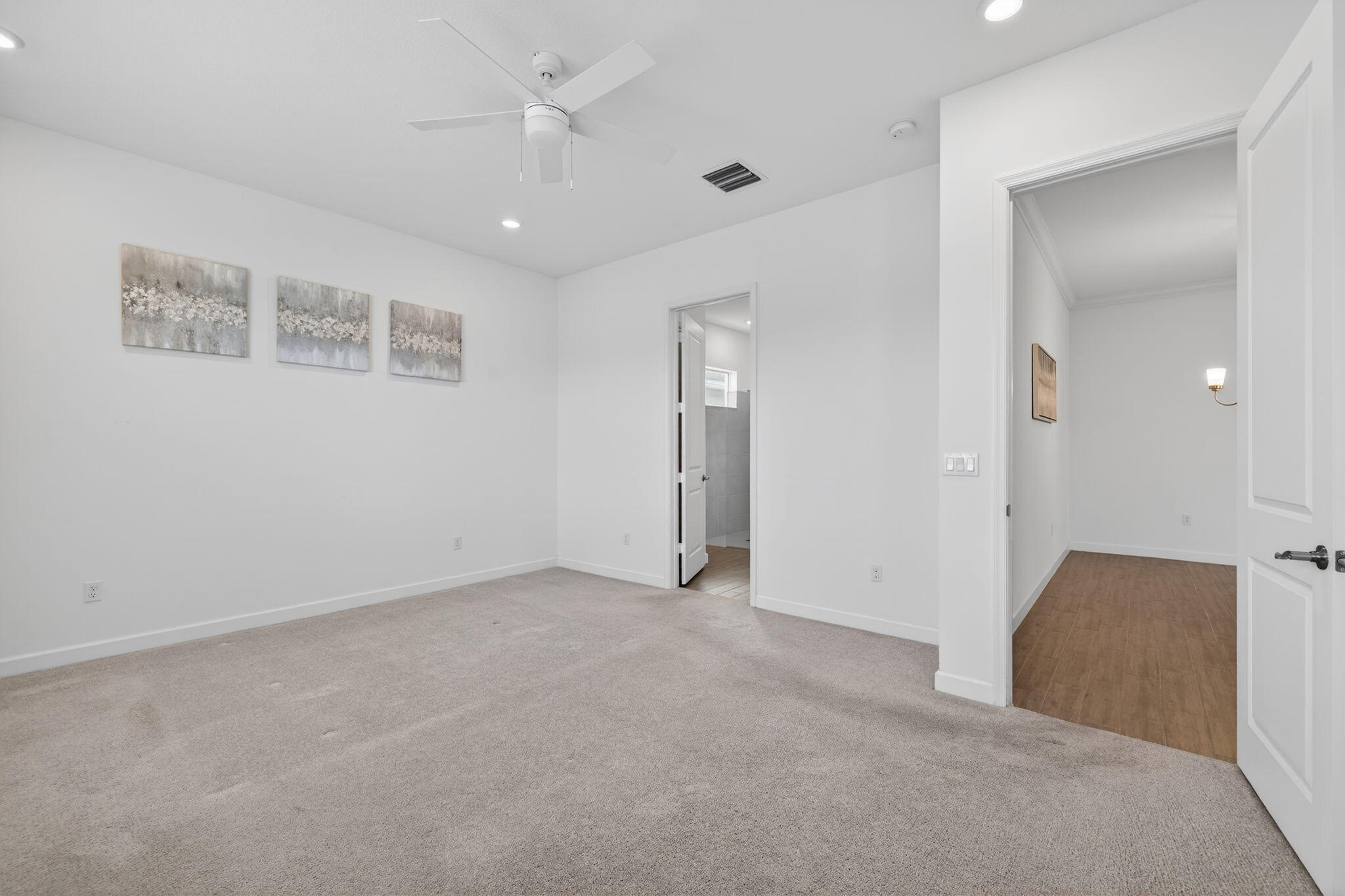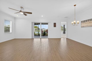 Refined lakefront living awaits in this beautifully upgraded single-story residence with expansive, tranquil water views in gated Veranda Preserve. This light-filled home offers 3 bedrooms, 3.5 baths, plus a private office or optional 4th bedroom, all arranged in a desirable split floor plan. The open-concept design features an elegant kitchen with oversized island, abundant cabinetry, walk-in pantry, and inviting dining space ideal for entertaining. The owner's suite is a true retreat with dual vanities, a spa-inspired bath, and an oversized walk-in closet. Enjoy peaceful mornings on the screened, covered lanai overlooking the lake. Situated in an active 55+ community with resort-style amenities and close to Tradition shopping, dining, and activities.