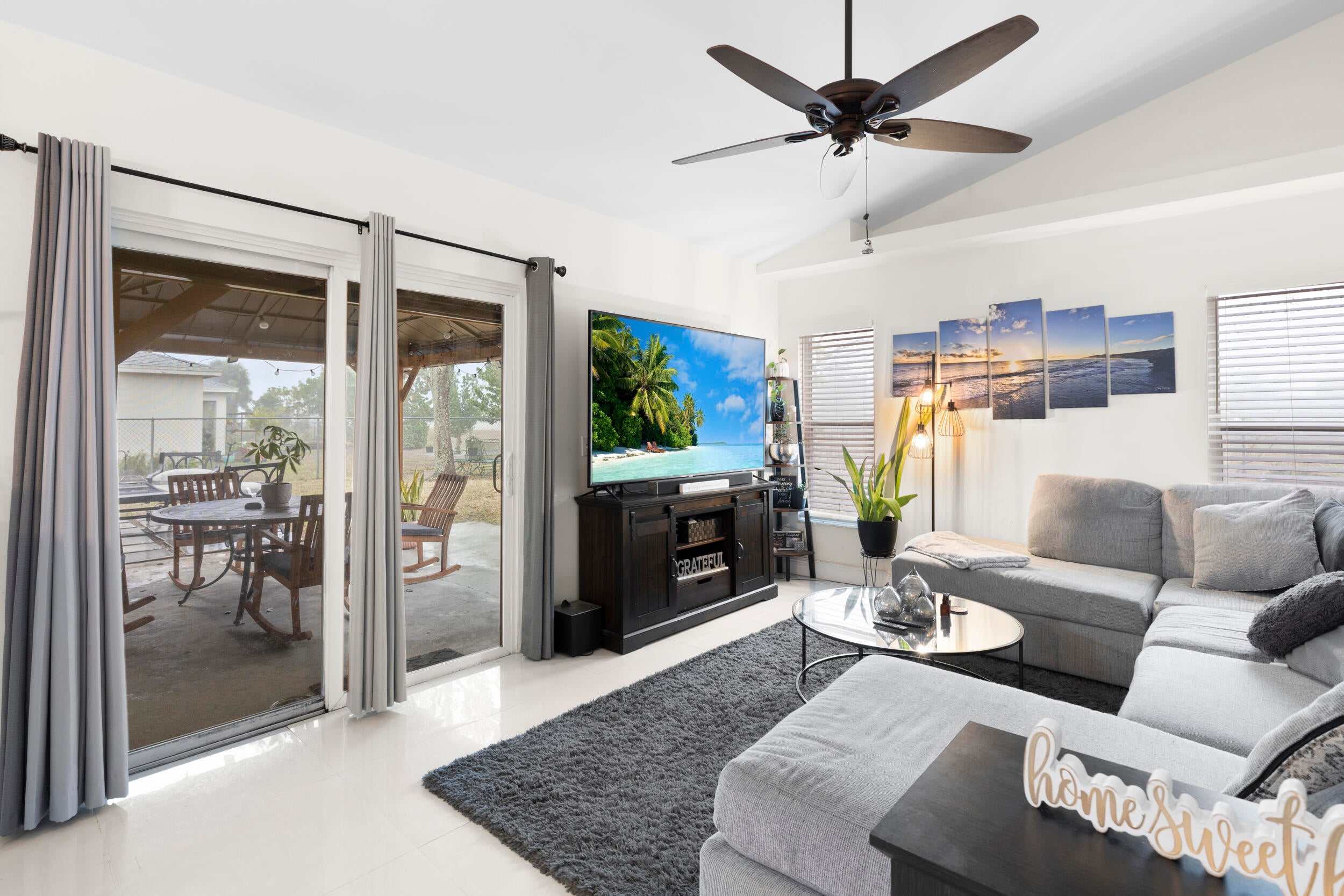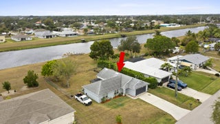 Waterfront CBS concrete block home on the C-24 Canal featuring hurricane panels, 2017 roof, and 2020 water heater. This home offers large white tile throughout, soaring ceilings, and a desirable split floor plan with formal living room, family room, formal dining area, and breakfast nook. The spacious primary suite is a private retreat, while the open layout is ideal for entertaining. Enjoy a fully fenced backyard with a gazebo/lanai overlooking the canal watch boats and jet skis pass by, fish or just relax with peaceful water views by the fire pit. Docks line the canal, enhancing the waterfront lifestyle. Plenty of room to add a pool. Priced to sell and move-in ready schedule your showing today before it's gone.