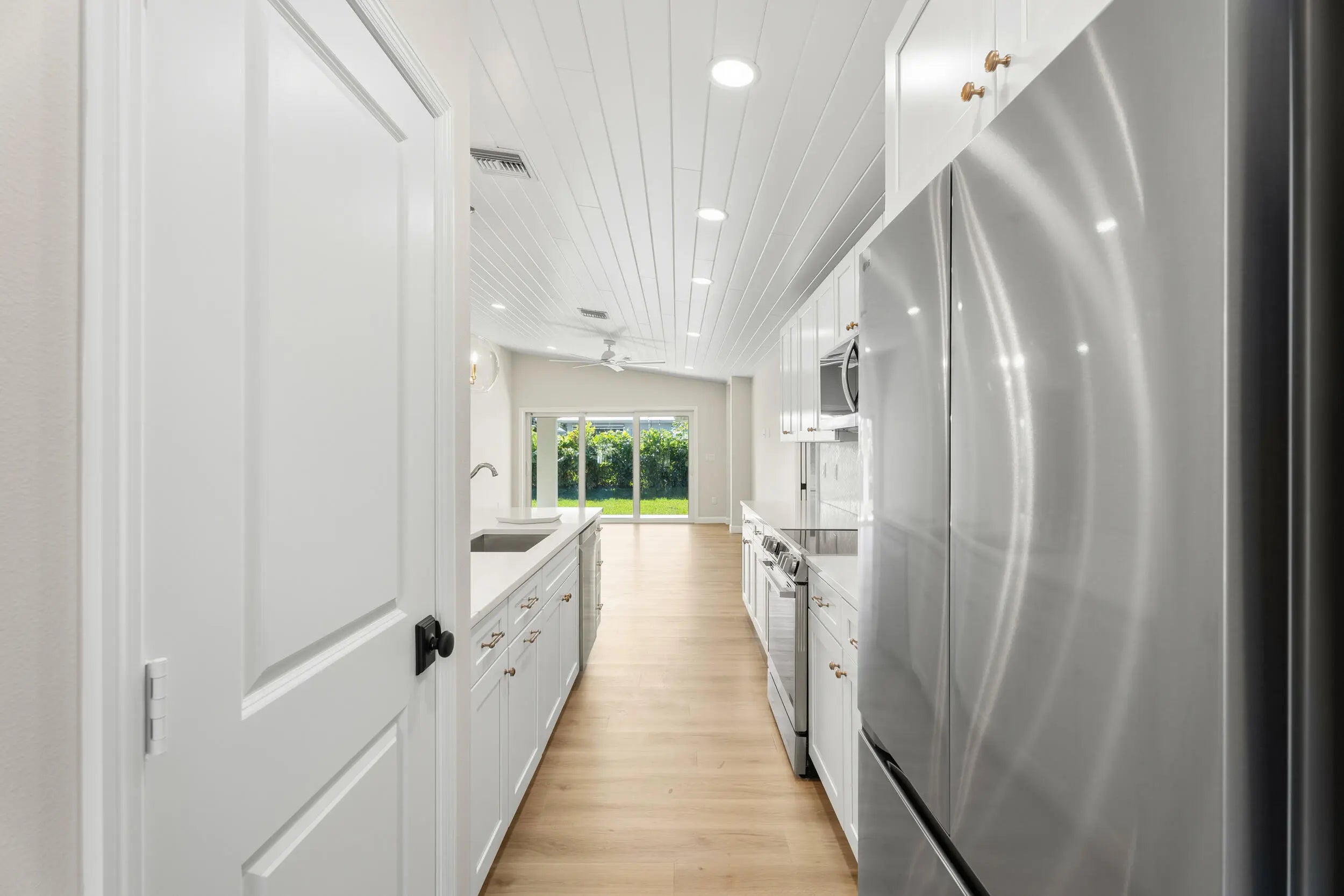 New construction 2026 custom-built Showcase Designer Home. 3BR/2BA residence in a prime Palm City location. Featuring lush landscaping, a private backyard, and no HOA, this thoughtfully designed home offers an open, light-filled floor plan vaulted tongue and groove ceilings, Stainless appliances, quartz counters and designer lighting fixtures throughout. Open the impact sliders to your open patio with room for a pool. Split-bedroom layout provides privacy, while the spacious primary suite includes his/her closets and vanities. Full laundry room with a wash sink too! Enjoy the convenience of being walking distance to Downtown Palm City's shops, dining, and The Patio. ''A'' rated schools and close to I95 and turnpike for commuters.