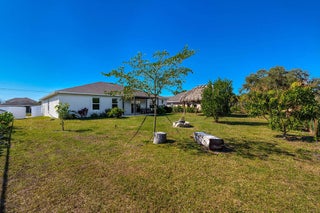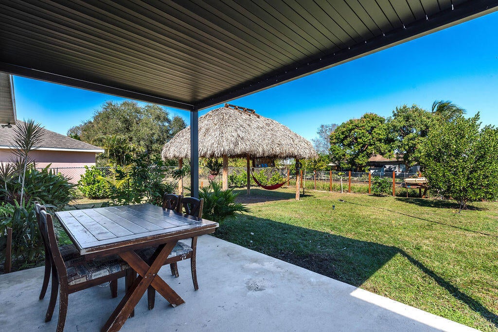 Recent construction home built in 2023, move-in ready and in excellent condition.Features 4 bedrooms, including a den ideal for a home office or extra bedroom. Open-concept kitchen with granite countertops opens to the living and dining areas. Enjoy a fully fenced backyard with covered porch and a thatched tiki-style gazebo, perfect for relaxing and entertaining. Landscaping included. Conveniently located near Tradition, shopping, and popular restaurants.