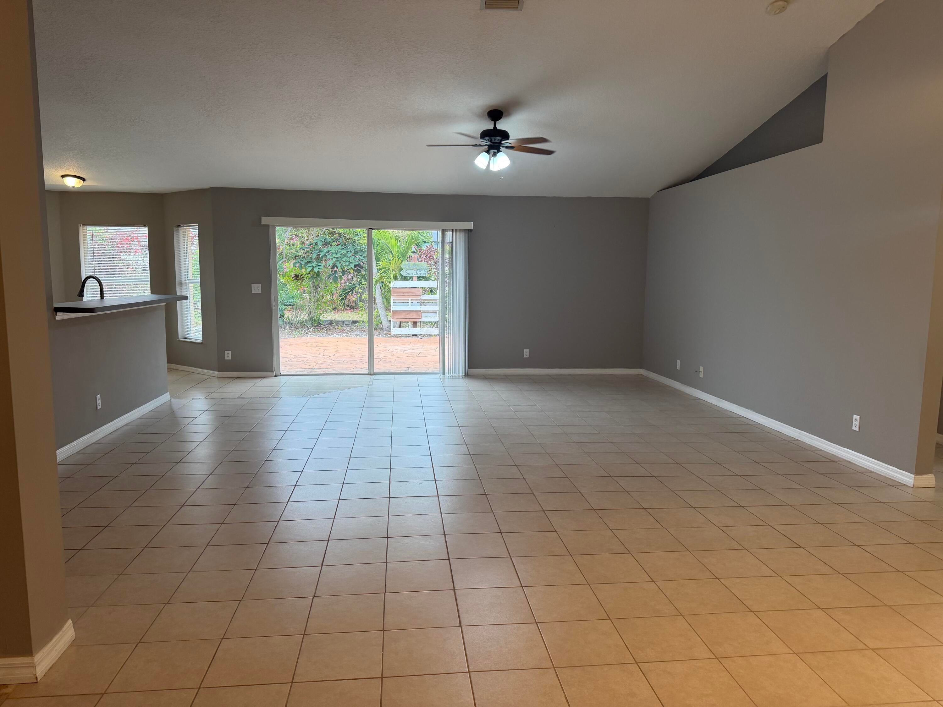 Bright and spacious 3BR, 2BA, 2 Car Garage Family Home in SW Port St Lucie. Separate Living, Family and Dining Rooms, Open Kitchen with Breakfast Nook, Large Master Suite with large walk in Closet, Split Floor Plan, Interior Laundry Room, Large Back Yard with Stone Open Patio. Tile and Laminate Throughout. Small Pet Welcome. Located just 1 block from Becker, Close to Highways, Shopping, Etc. A Must See! 1st and Security Moves you In.