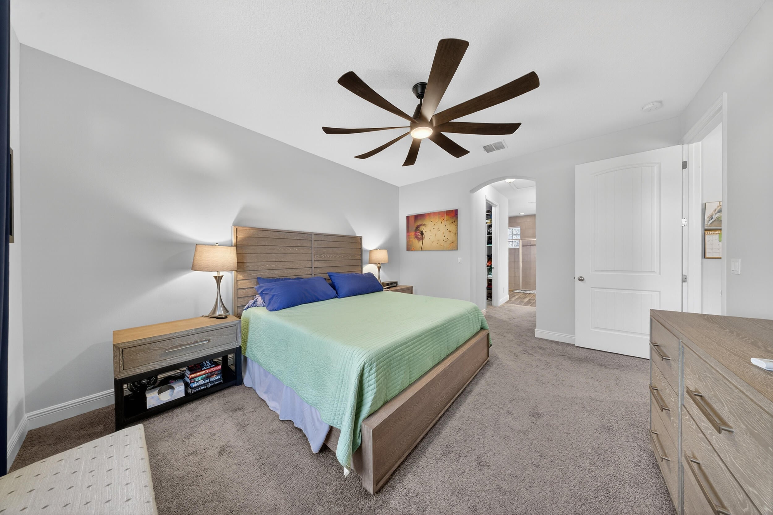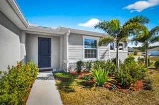 Upgraded 2021 Carharp Seaside model on an oversized .27-acre corner lot with 4 bedrooms and 2 baths. This move-in-ready home features impact windows, gutters, epoxy garage floor, custom window treatments, and two oversized 72-inch ceiling fans. The kitchen offers soft-close cabinet drawers, a large pantry, and excellent storage. The primary suite includes dual closets with custom built-ins, plus added built-ins in the laundry room. The 4th bedroom is currently used as an office. Enjoy lush tropical landscaping with foxtail palms, frangipani, irises, and perennials. Conveniently located near I-95 and Becker Rd. A standout home with style, upgrades, and location--truly a must-see property offering comfort, space, and modern Florida living.