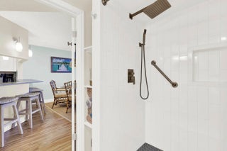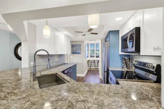 ISLAND DUNES OCEANSIDE II ON HUTCHINSON ISLAND - walk outside to the backyard, pool/grilling area and use gated boardwalk to the beach from this 1st level, 2BR/2BA remodeled condo. Features include: renovated with wood-style flooring, Quartz counters, cabinets with soft close, pantry, glass tile backsplash, modernized bathrooms, custom shelving in closets, plantation shutters, tankless water heater, stackable washer/dryer and so much more. Community amenities include: gated with guard, heated pools, spa/hot tub, social room with kitchen and bar, exercise room, sauna, billiard room and gated boardwalk to beach. Country Club Amenities include: docks, golf course, tennis and pickleball club, pro shop, kayak racks and restaurant.
