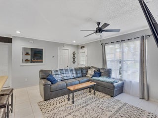 Welcome to your dream home in the heart of Port St. Lucie! This beautifully updated 3-bedroom, 2-bathroom residence boasts custom features throughout. Step inside to find a cozy built-in fireplace, a stylish shiplap accent wall in the dining room, and upgraded lighting fixtures that enhance the warm ambiance. The open kitchen, complete with a breakfast bar, is perfect for entertaining, whis perfect for entertaining, while the split floor plan offers privacy for the primary suite. The guest bathroom has been tastefully updated, adding to the home's modern appeal. Relax on the screened patio overlooking the expansive .23-acre lot. Don't miss this opportunity to own a gem in Port St. Lucie! Garage can be converted back upon request. 2015 HVAC 2021 roof PA states 2 bedroom this is a 3 bedBuyer to verify exposure all measurements are approximate