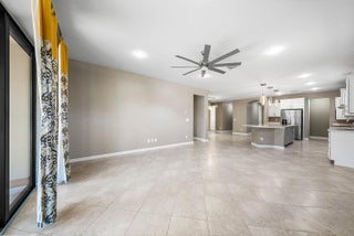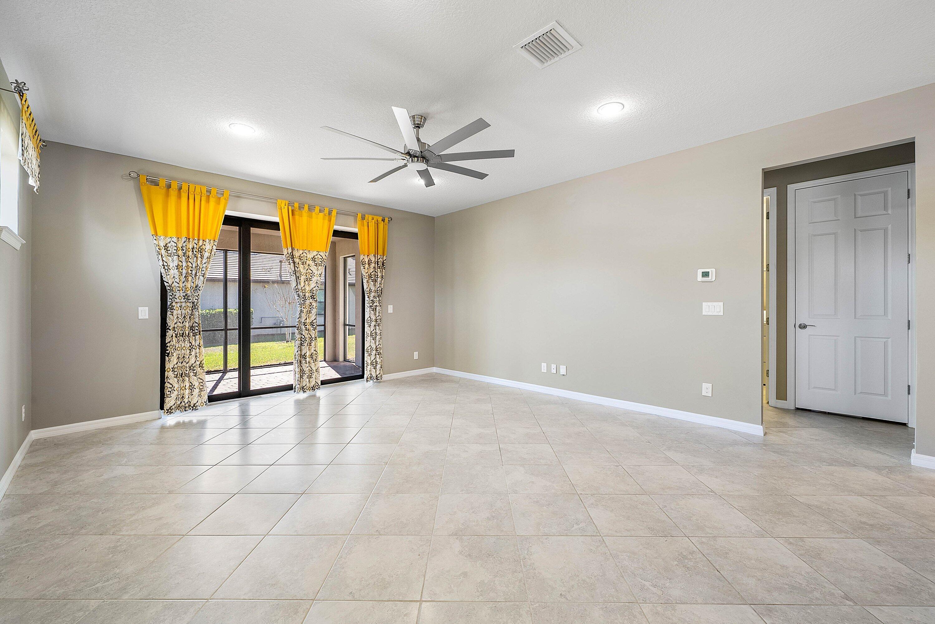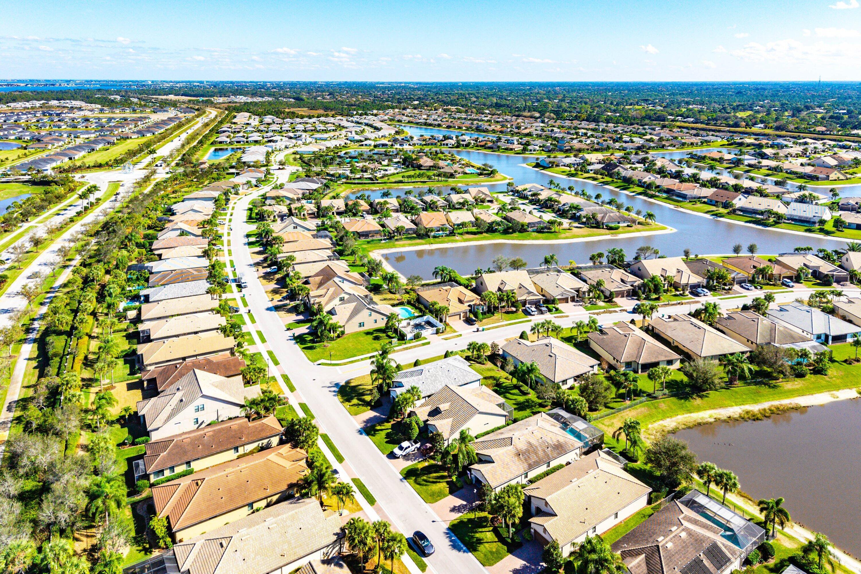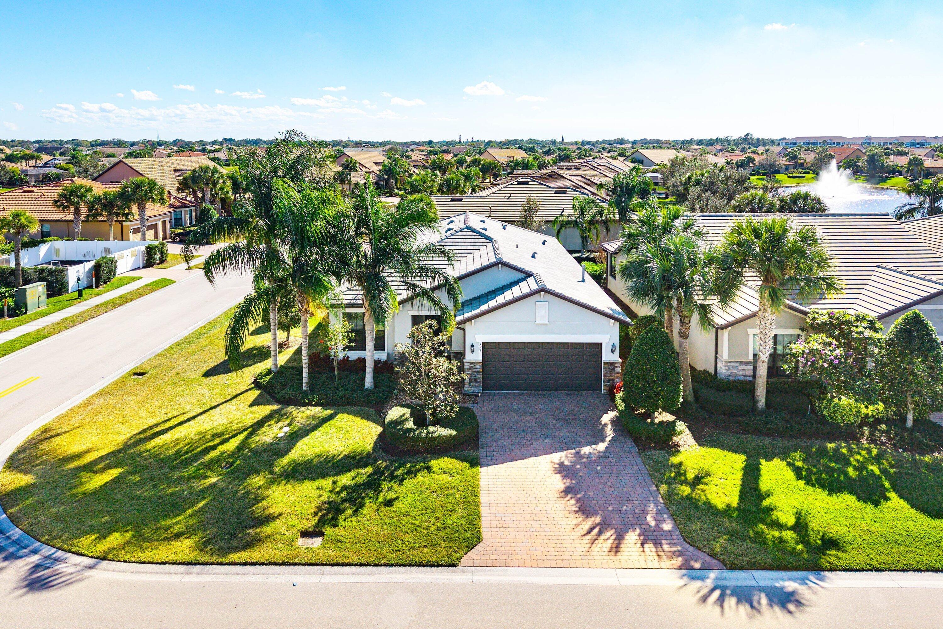 Welcome to resort-style living in this highly sought-after community where lifestyle and comfort meet. This beautifully appointed 3-bedroom, 2-bath home with a 2-car garage and private den/office features a bright, open layout ideal for everyday living and entertaining. The kitchen offers soft-touch shaker cabinetry, quartz countertops, a large island, stainless steel appliances with gas range, walk-in pantry, and wine bar with refrigerator. Impact glass throughout and a three-panel sliding glass door open to an extended screened patio for seamless indoor-outdoor living. Ceramic tile floors run throughout, and the primary suite features a tray ceiling, oversized walk-in closet, dual quartz vanities, and glass-enclosed shower. Enjoy resort-style amenities including a fitness center,clubhouse with indoor/outdoor bar, pool, spa, fire pits, tennis, pickleball, bocce, shuffleboard, dog park, playground, and picnic areas. Minutes to the Turnpike, shopping, and dining. Seller offering up to 2% towards buyers closing costs!