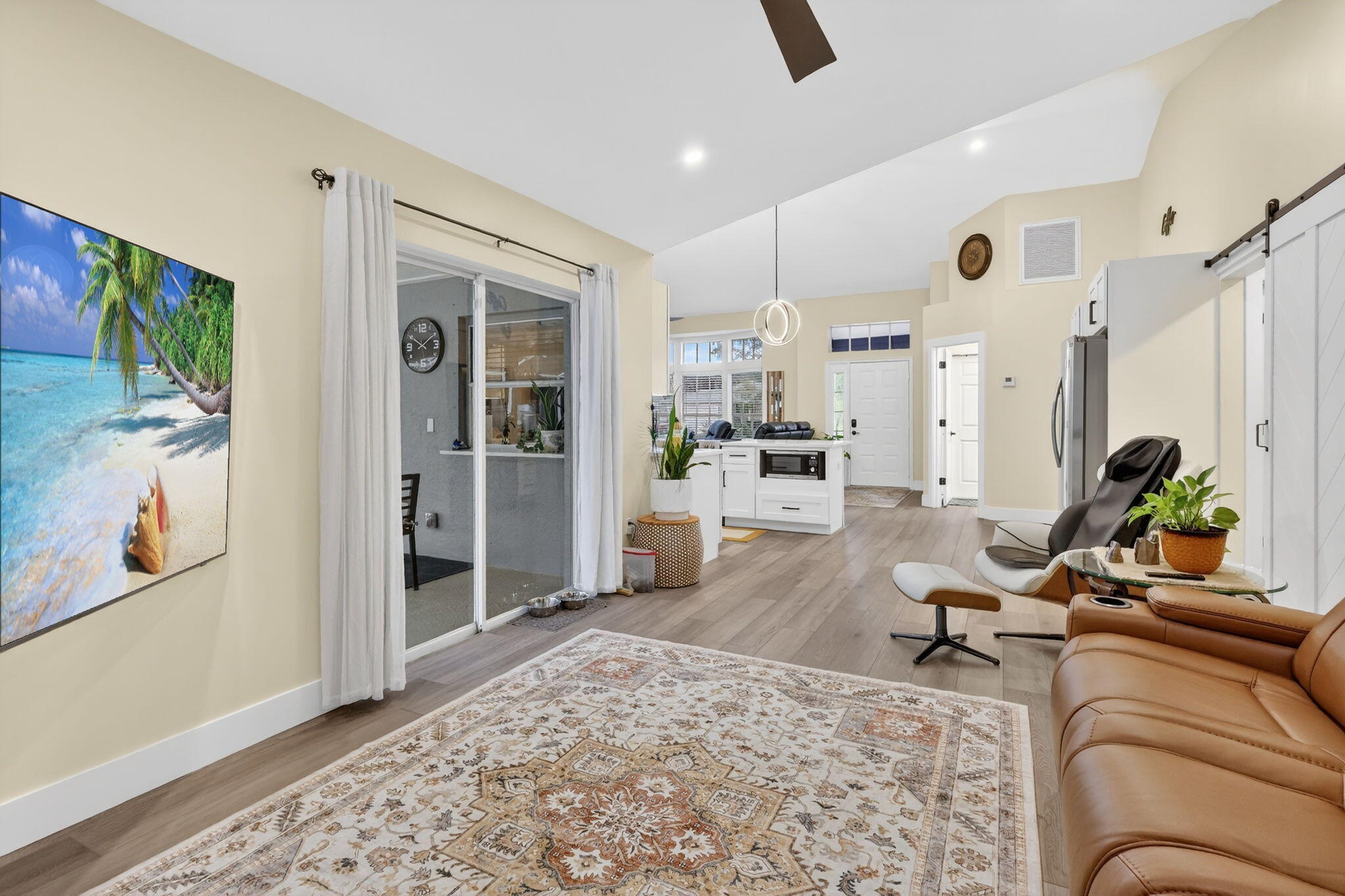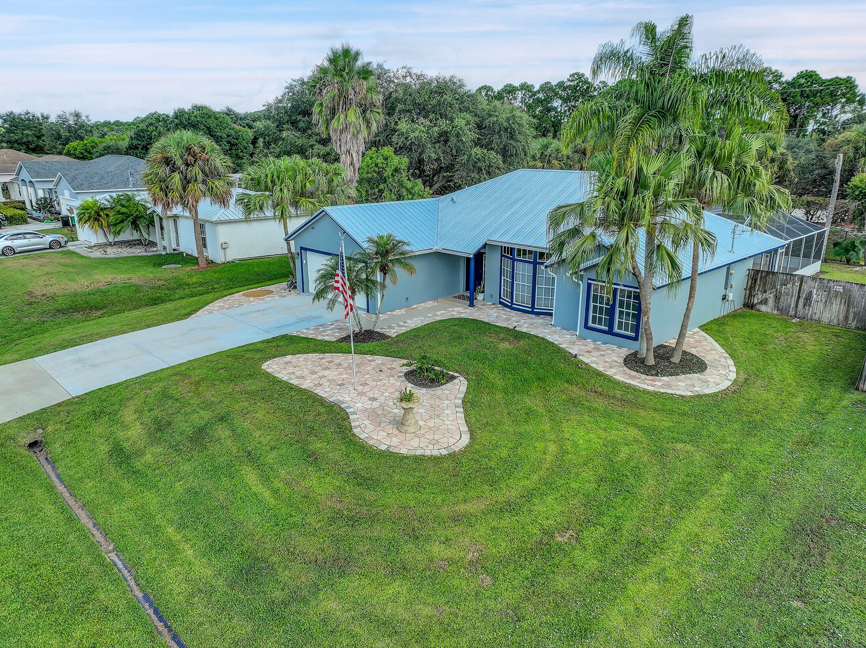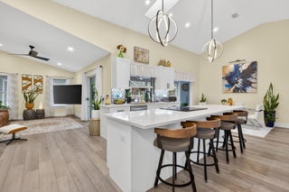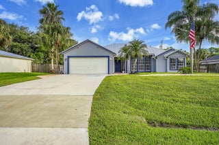 Welcome to this MODEL-HOME caliber, resort-style 3-bedroom, 2-bath Heated Pool positioned between Tradition &St. Lucie West with NO HOA & NO impact fees.This very well designed home has been finished to true model-home standards & offers a bright, open floor plan with high vaulted ceilings, skylights, seamless flow, &cohesive designer aesthetic throughout. freshly painted interior & exterior the home features coordinated ceiling fans &blinds, updated lighting throughout, LED-lit bathrooms.Stunning kitchen quartz countertops, brand-new Frigidaire appliances, a dedicated coffee bar, reverse osmosis water system. NEW ROOF (2024), NEW A/C SYSTEM (2024), ALL NEW DUCTWORK (2024), NEW HOT WATER HEATER (2024), NEW POOL HEATER (2025). PREPPED FOR BOAT OR RV PARKING WITH DOUBLE GATE