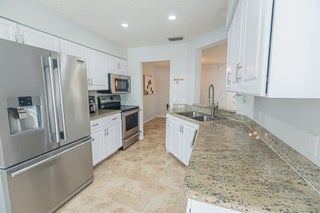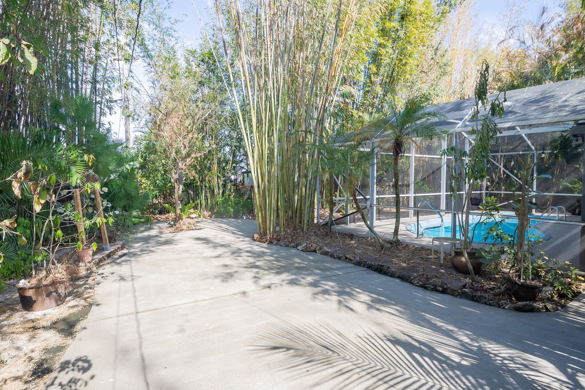 Discover your private tropical oasis in this move in ready 3/2/2 pool home! Perfectly situated on a spacious corner lot, the property is enveloped by mature, tall bamboo for ultimate natural privacy. The modern interior features tile flooring throughout and an updated kitchen complete with elegant granite countertops and sleek stainless steel appliances. Step outside to your personal retreat: a covered lanai and screened-in pool area designed for entertaining, featuring a convenient outdoor shower. With a 2-car garage, a newer roof (2022), and no HOA fees, this move-in-ready gem offers the perfect blend of secluded Florida living and contemporary comfort.