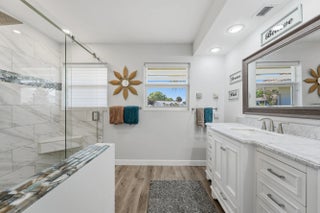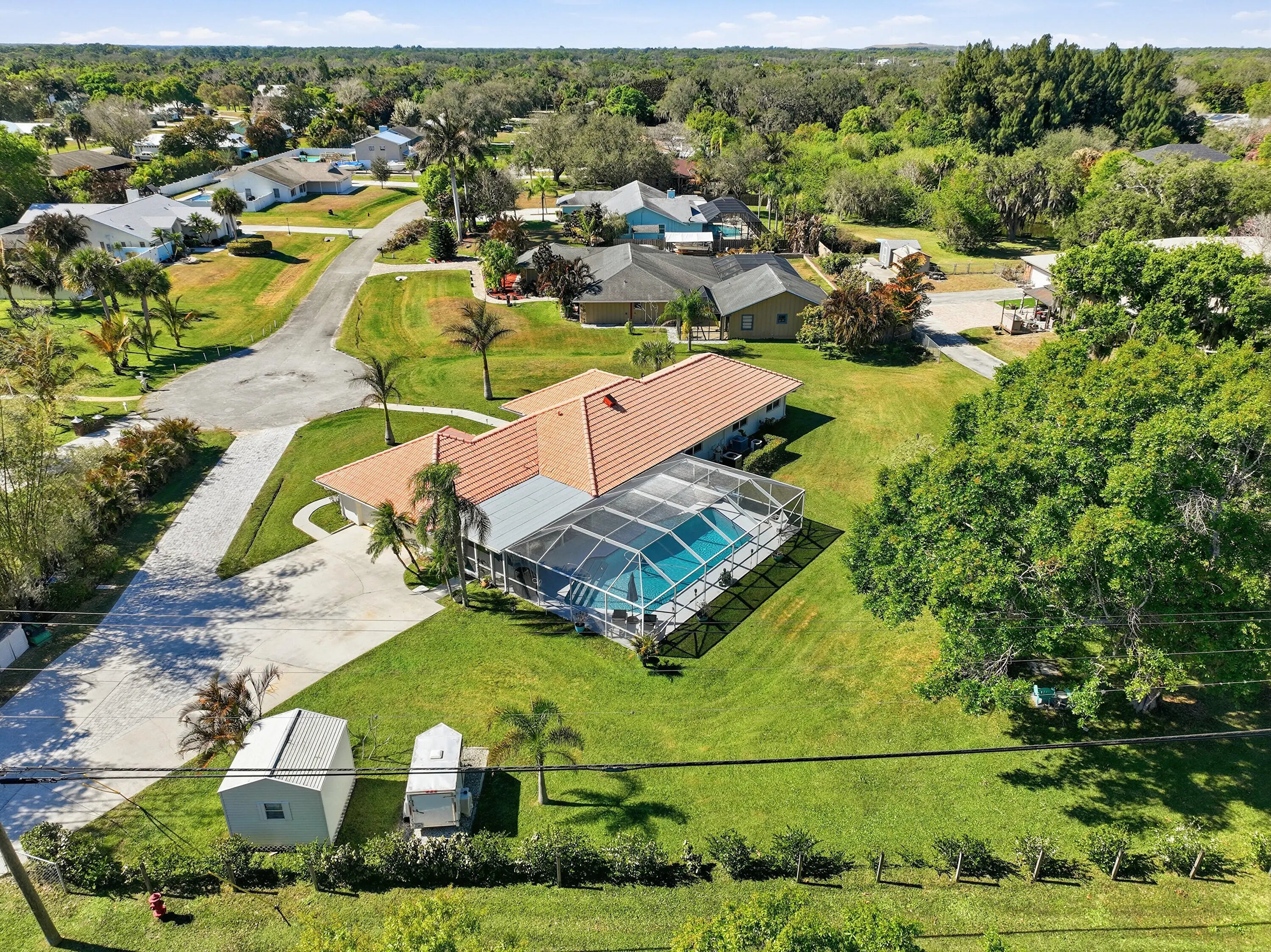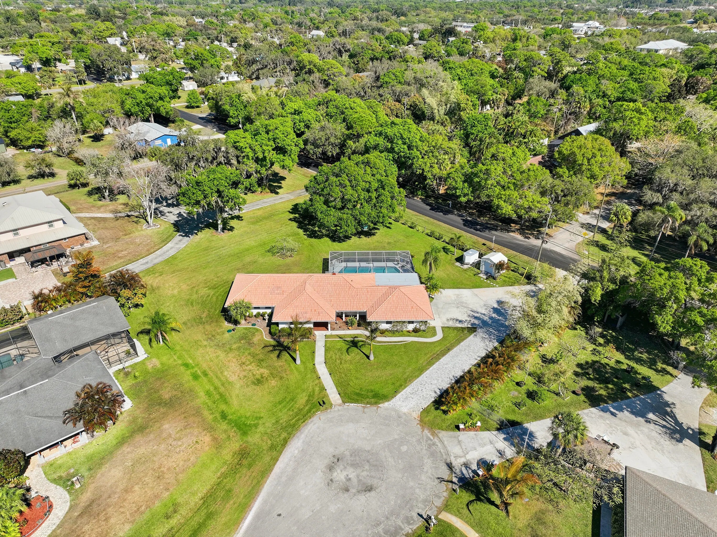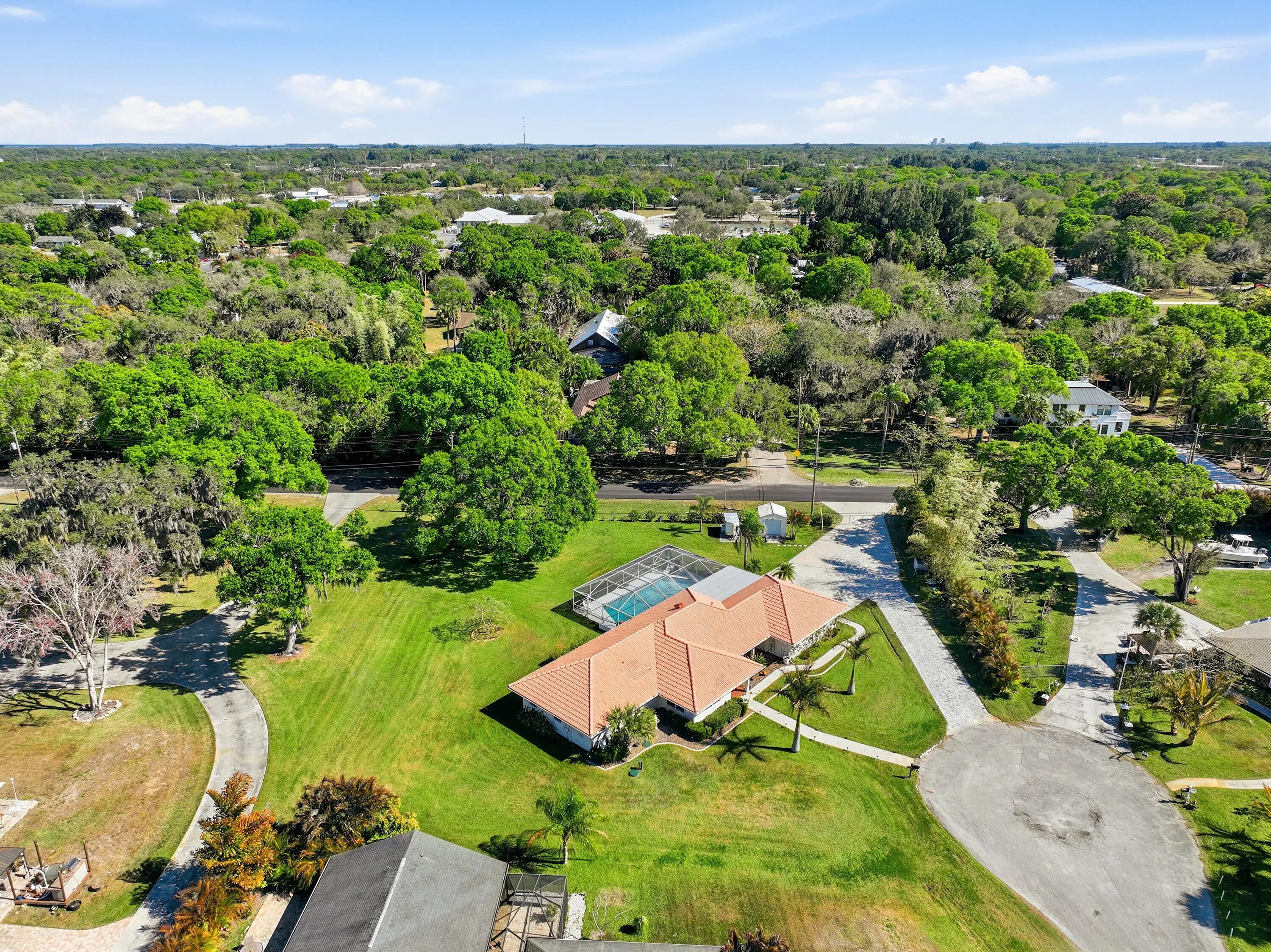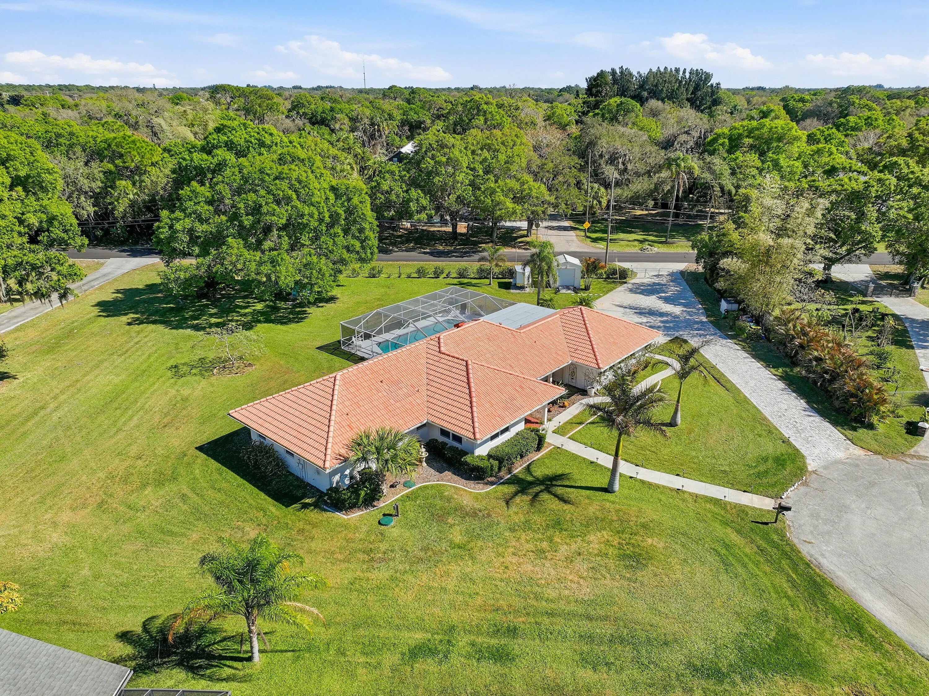 Located on a quiet cul-de-sac, this 3-bedroom, 3-bath home sits on a spacious .62-acre lot and offers extensive upgrades throughout. Key highlights include impact-rated doors and windows, an updated primary bathroom, removed popcorn ceilings, new baseboards, LED lighting, ceiling fans, and a tankless-style water heater for the bedroom baths. The true two-car garage features added lighting, cabinetry, attic access, and flexibility for future expansion.Outdoor living shines with a covered patio (2025), new decking with LED lighting, a screened pool with upgraded pump, filter, plumbing, and high-efficiency electric heater, plus hurricane shutters for the updated French doors. Additional features include an approx. 84' paver driveway with RV parking, extra 50 amps for RV hook up, permitted