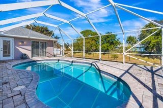 Fantastic opportunity to own a spacious split-floorplan home designed for the Florida lifestyle! The interior boasts a massive primary retreat with a spa-style bath, a private office/den off the kitchen, and guest bedrooms featuring oversized walk-in closets. Enjoy hosting in the large formal dining room or the light-filled family room with its custom TV built-in.The backyard is a true oasis, featuring a screened-in pool and lanai (2016) with stylish pavers, a full cabana bath, and a fully fenced yard for ultimate privacy. Recent upgrades include a brand-new water heater (2025), a kitchen reverse osmosis system, and city water/sewer connections. Complete with a 2-car garage and storm shutters, this home offers a functional layout and a stunning outdoor space ready for your personal touch. All information pertaining to the property is deemed reliable, but not guaranteed. Information to be verified by the Buyer. Be advised that cameras may exist recording audio and video inside/outside the property, such as ring doorbells. Photos are digitally enhanced and could be altered, please verify.