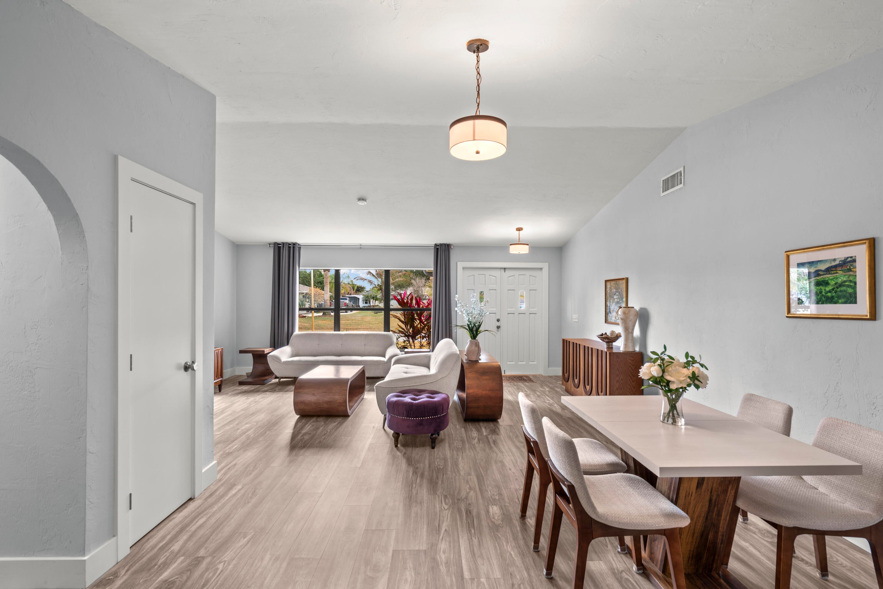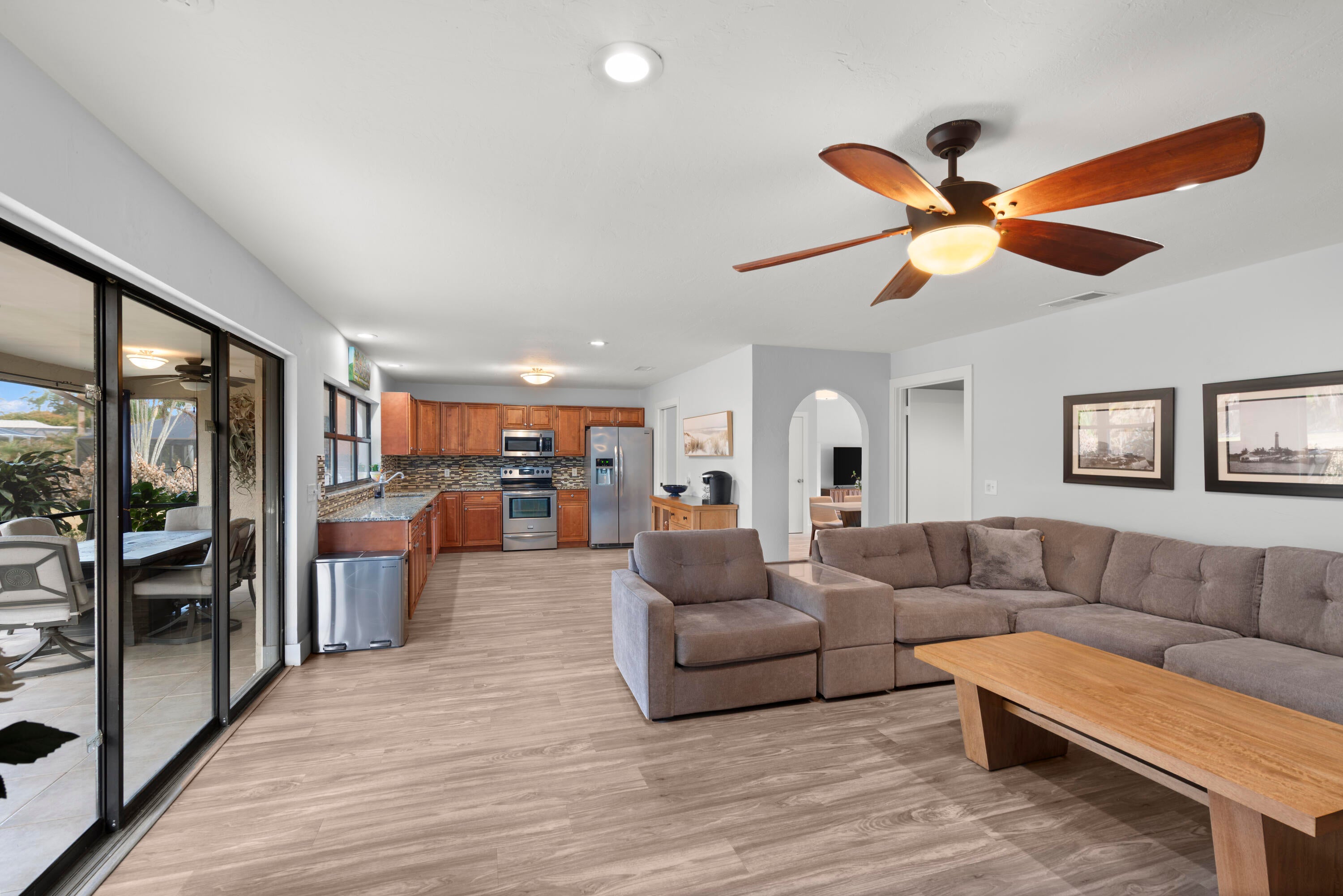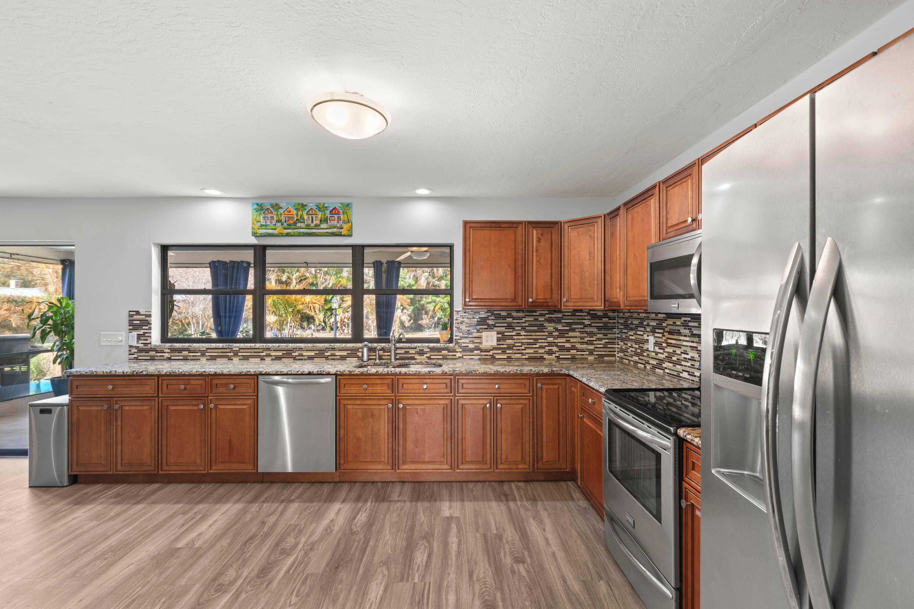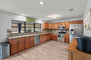 Welcome to this beautifully updated 3-bedroom, 2-bath home in the highly desirable Sandpiper Bay area of Port St. Lucie. Offering over 2,000 square feet of interior living space, this home features a spacious open floor plan designed for comfortable everyday living and easy entertaining. The interior has been completely refreshed with all-new luxury vinyl flooring and baseboards throughout, creating a clean, modern feel from room to room. The kitchen features granite countertops, stainless steel appliances, and a tile backsplash, blending style and function at the heart of the home. Step outside to enjoy the large covered back patio overlooking a newly fenced backyard with fresh landscaping -- perfect for relaxing evenings, pets, or gatherings with family and friends. The property also includes a 2-car garage, dedicated RV pad, and a durable metal roof installed in 2015. Major updates provide peace of mind, including a new electrical panel (2024), generator hookup plug, irrigation pump (2024), water heater (2019), and AC system (2017). This move-in ready home combines space, updates, and an unbeatable location in one of Port St. Lucie's most established neighborhoods.