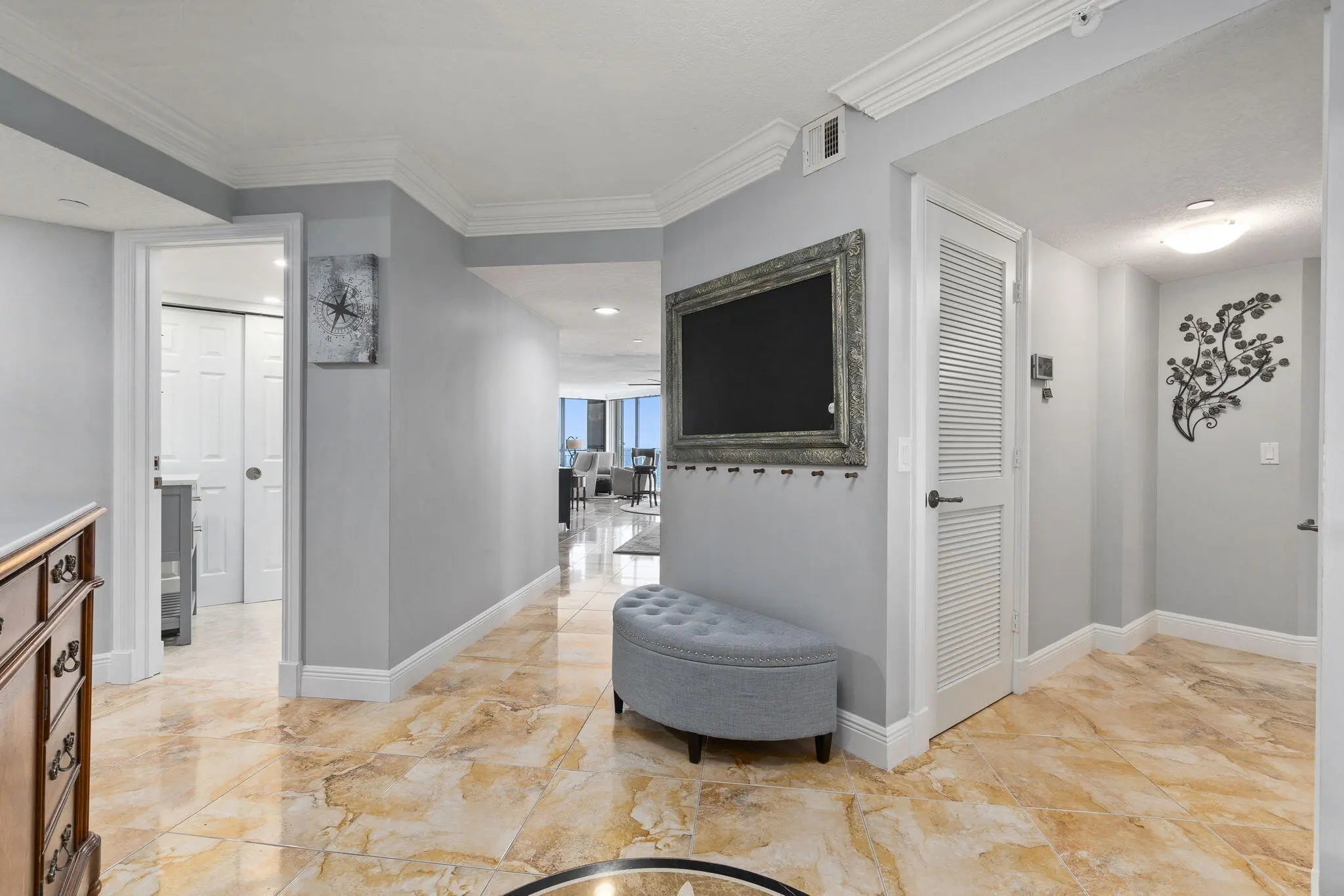 Southern exposure, end unit features unparalleled luxury & meticulous design with this exceptional 4-bed, 3.5-bath Every inch of this home has been thoughtfully crafted, combining elegance & comfort with stunning ocean views & top-tier amenities.Enjoy abundant natural light & breathtaking ocean views from multiple balconies, perfect for year-round sunshine. The beautifully appointed formal dining room is ideal for entertaining & all the essentials you need for hosting in style. A unique raised pool offers the ultimate relaxation experience w/ panoramic ocean vistas while sunbathing. There is even a dedicated space for movie lovers to enjoy cinematic experiences in the comfort of home.This prime location provides easy access to shopping, dining, & everything Jensen & Stuart have to offer