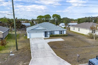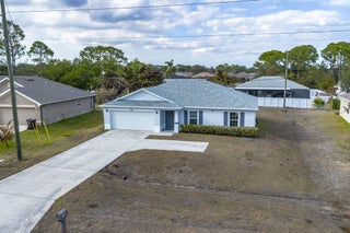 OPEN HOUSE 12-2 Sunday 2/15!!! NO HOA! Built in 2022 by Groza Builders (GBI), this CBS home offers 3 spacious bedrooms, 2 full bathrooms, and a 2-car garage. The open concept layout features vaulted ceilings and a desirable split floor plan for added privacy. Tile flooring flows through the main living areas, with carpet in the bedrooms for comfort. The kitchen is a standout with white cabinetry, granite countertops, stainless steel appliances, and ample storagea"ideal for cooking and entertaining. Enjoy outdoor living on the covered patio. Conveniently located just minutes from the Turnpike, this move-in ready home blends modern finishes with functionality in a growing Port St. Lucie neighborhood.