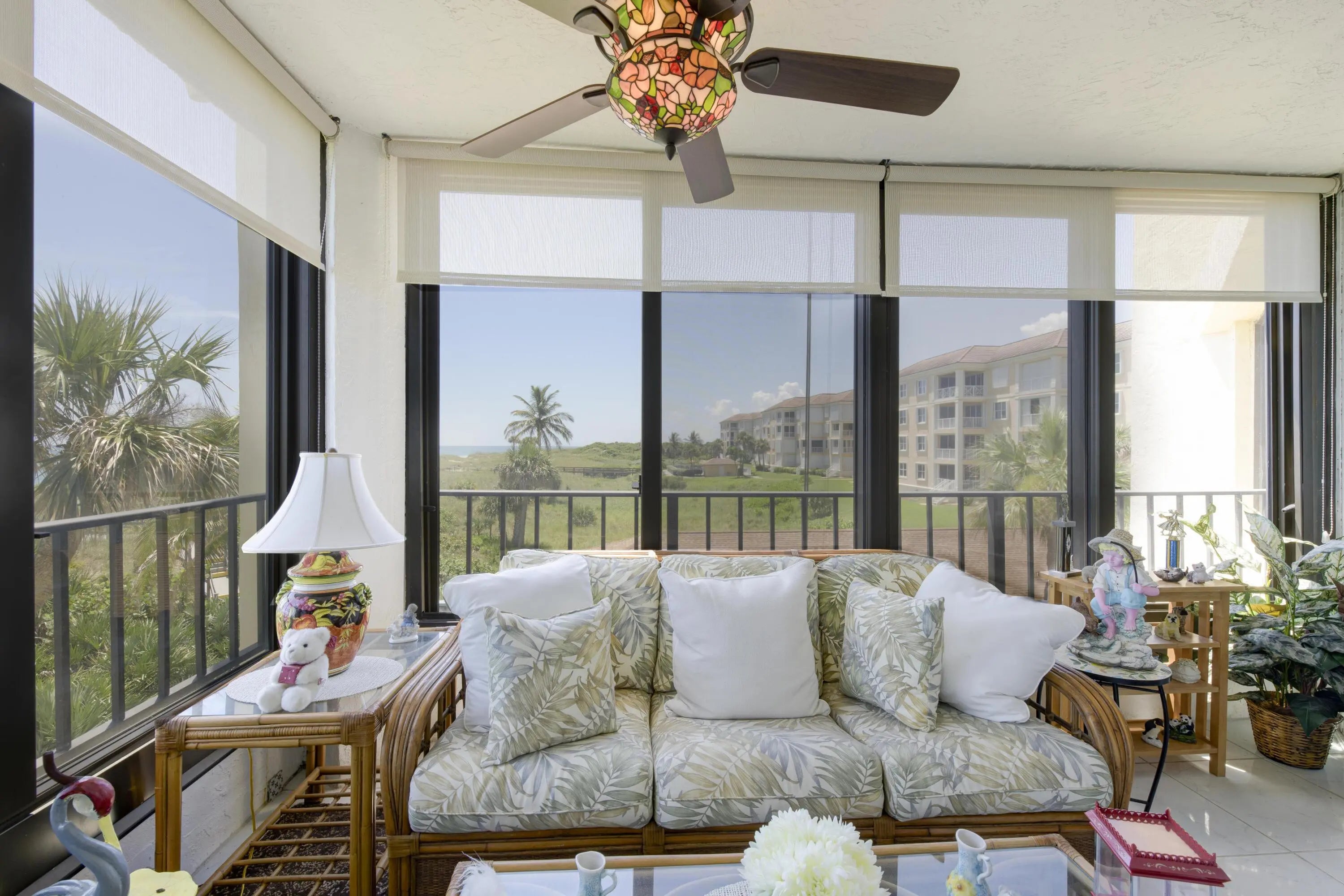 Welcome to oceanfront resort style living in Ocean Village. This large 1850 sq ft spilt 2 bedroom 2 bathroom condo offers stunning ocean views from every room. Ceramic tile and hurricane windows. The condo has a private garage with storage, large walk in closet, washer and dryer. Ocean Village is a gated community that boast of top notch amenities which includes restaurant, olympic size pool with poolside tikibar, private beach, pickleball courts, clubhouse, gym, tennis courts, bocce and shuffle board. Roof completed in 2025. Recently passed SIRS and milestone inspections with great reserves. Florida living at its finest.