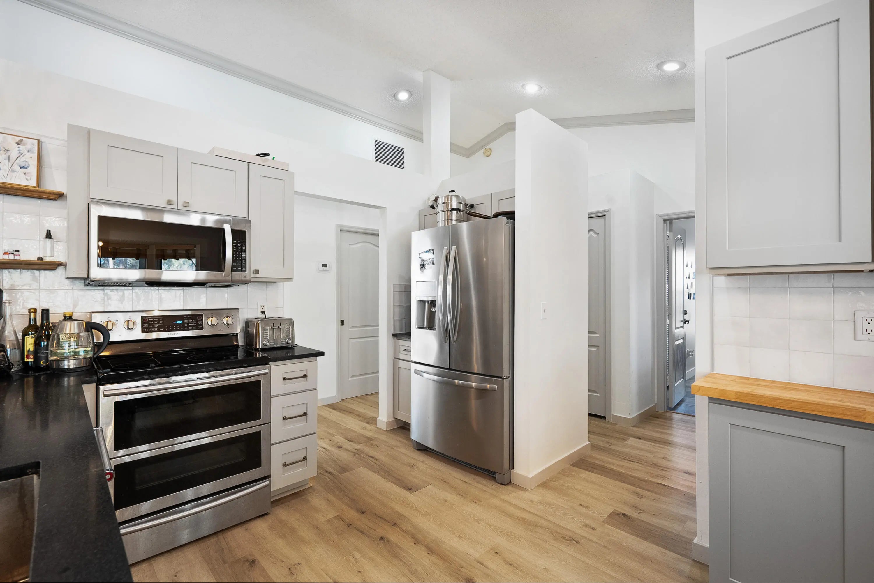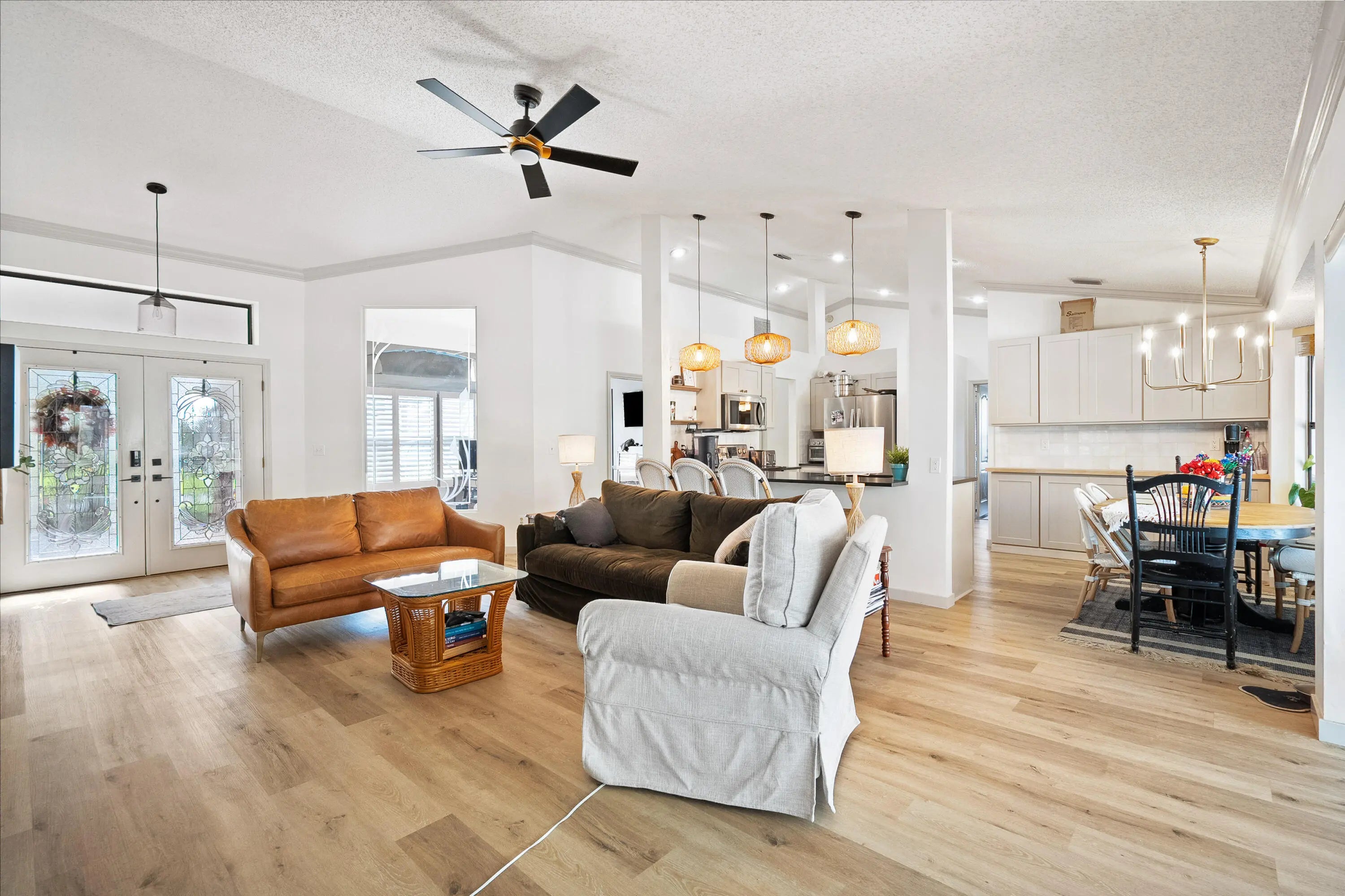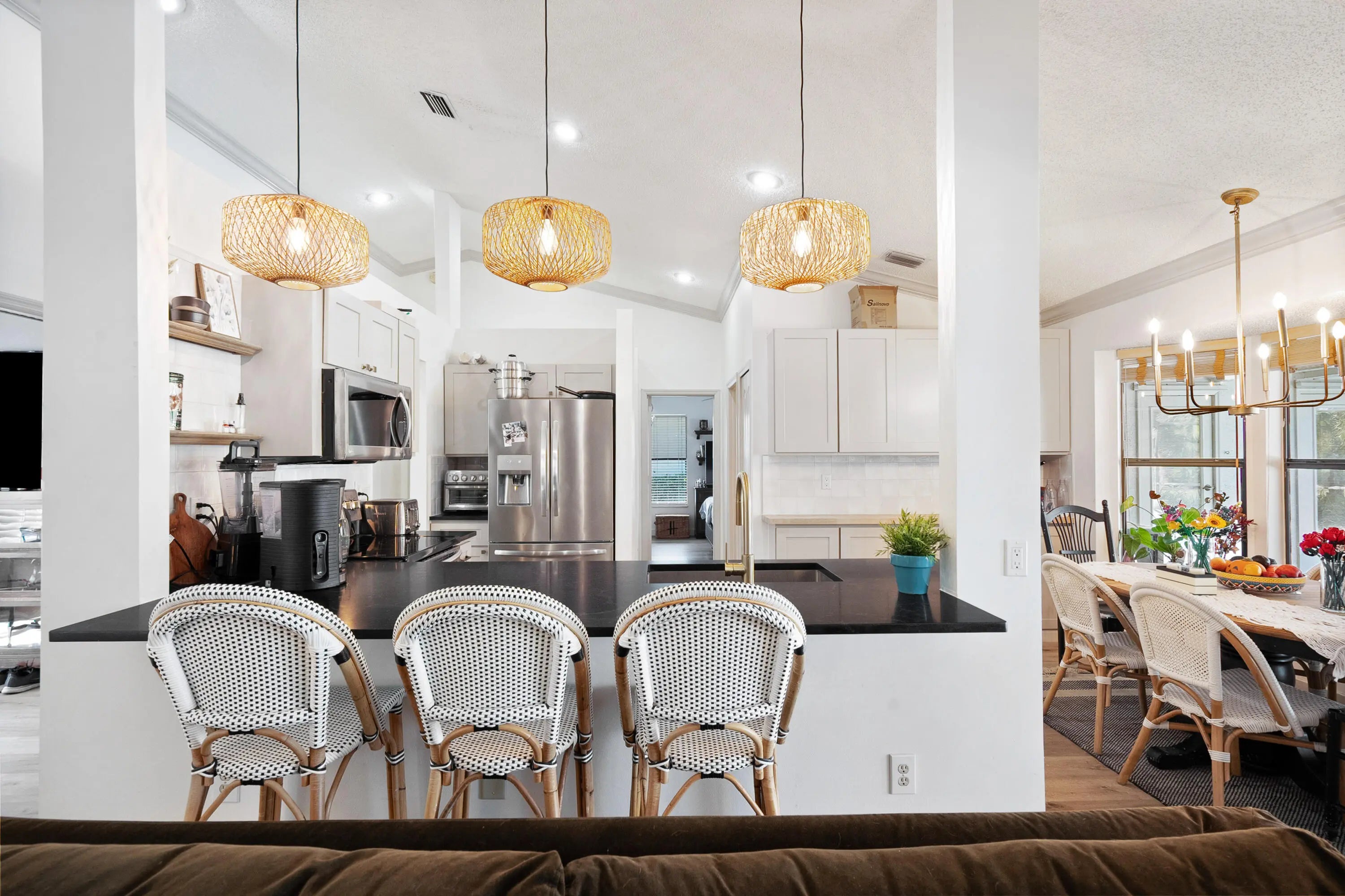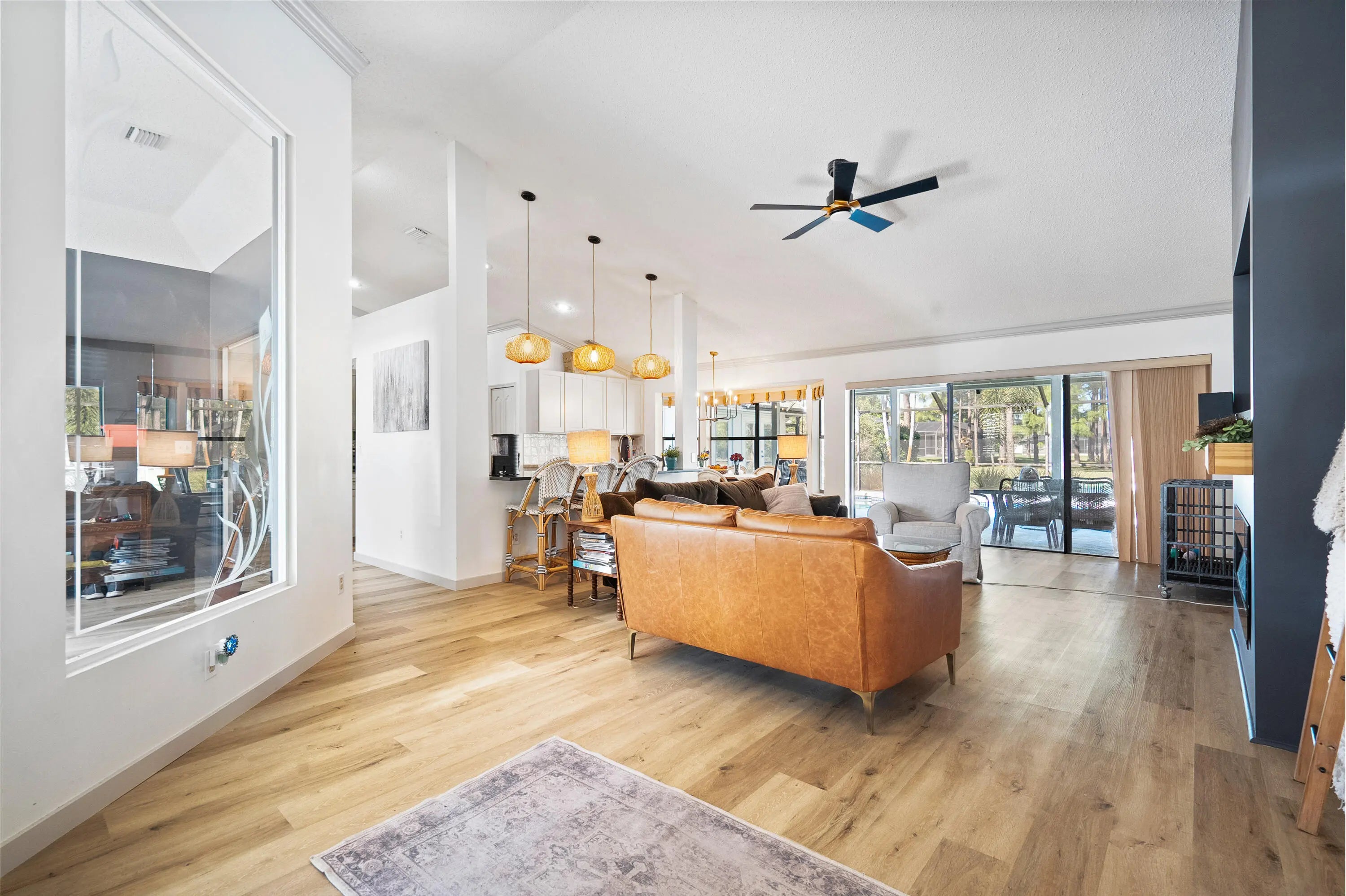 Beautifully modernized updated pool home is 3 bed/2 bath w/ nearly 2700sf of space! Includes bonus room & office (either room could be 4th bedroom or playroom)! Located in highly desirable Oak Ridge community w/ private community boat ramp w/ ocean access, club house, community pool, tennis/pickleball courts! New washer/dryer & water heater(2025). Metal roof. Koi pond. Renovated kitchen. Enjoy the expansive screened pool area, pool heater, outdoor kitchen (grill, sink, & fridge) & magnificent lake views w/ wide open back yard area, perfect for entertaining or large family gatherings. *Pool maintenance, lawn, wifi & cable included!* A rated schools- conveniently located near Bessey Creek Elementary. Easy access to highway! Pets allowed w/ owner approval. Available April 1st!