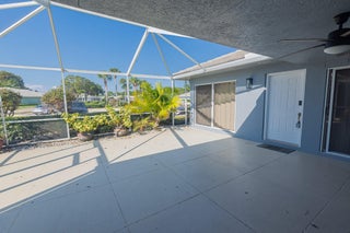 Welcome to this beautifully updated 2BR/2BA villa in Sun Terrace, St. Lucie West! This Divosta quad is move-in ready & showcases stylish LVT flooring throughout the main living areas. The modern kitchen features quartz countertops & comes complete with all appliances. In-unit laundry is conveniently tucked away in a utility closet. Property also has an exterior storage shed for additional space. Relax & enjoy extra living space on the covered and screened lanai, perfect for year-round use. The exterior was freshly painted in November 2025. HOA dues cover lawn care, basic cable, exterior maintenance including the roof, and access to community amenities such as two swimming pools and tennis courts. A perfect opportunity for low-maintenance living in St Lucie West!