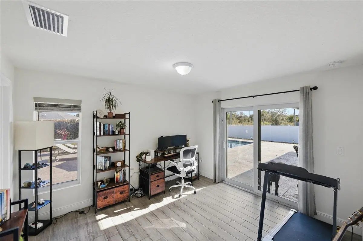 Newer construction on a larger-than-standard lot, backing to partial open green space for extra privacy. Inside, high ceilings and sun-filled living areas create an airy feel, with a modern kitchen and an easy, open flow for everyday comfort and entertaining. The split primary suite features a spacious bath and generous storage; secondary bedrooms are well sized. Step outside to an amazing pool and spa/hot tub with a covered lanaia"your year-round retreat. Close to I-95 for easy commuting, but yet tucked away on a quite street