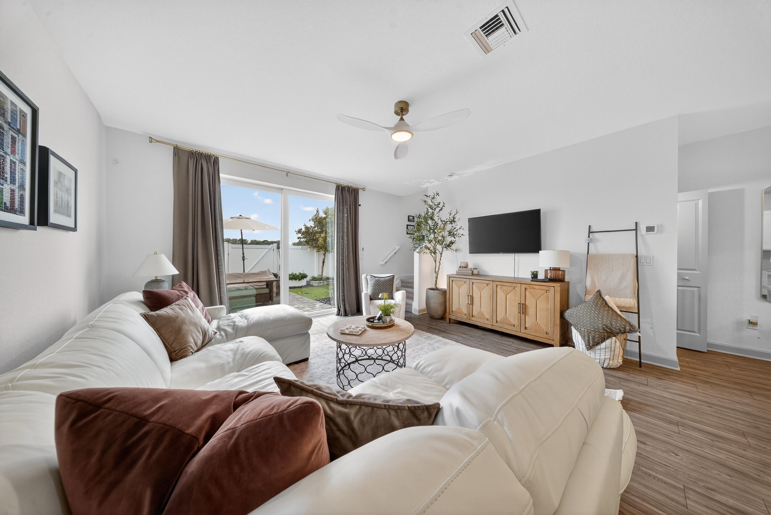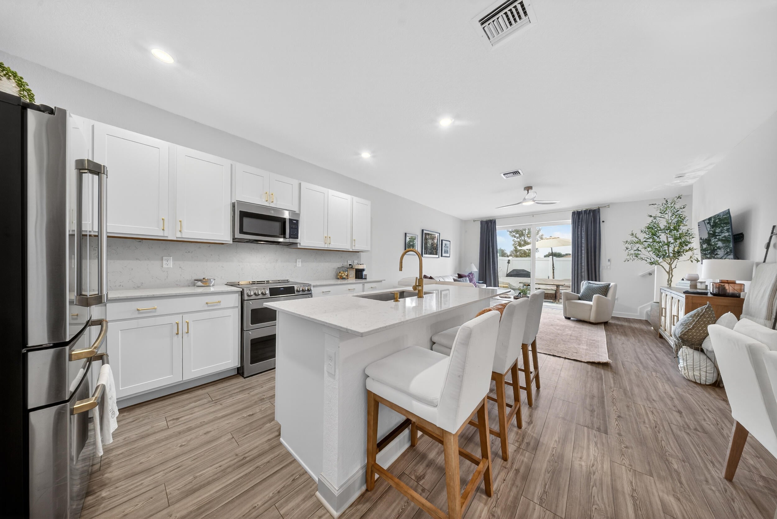 Welcome to this beautifully maintained 2024 construction townhouse located in the highly desirable Veranda Landing community in Port St. Lucie. This 3-bedroom, 2.5-bath home offers 1,632 square feet of living space and a 1-car garage, blending modern style with everyday functionality.The home features a sleek, modern kitchen with upgraded GE CafA(c) appliances, including an induction cooktop, quartz countertops and full backsplash, stylish cabinetry with under cabinet lighting, and an open-concept layout ideal for entertaining. Spacious living and dining areas flow seamlessly to an extended paver patio, creating an inviting indoor-outdoor living experience.Enjoy a fenced and meticulously landscaped backyard, while the second floor offers peaceful canal views that provide privacy and a relaxing backdrop. Upstairs, the well-appointed bedrooms offer versatility, with the primary suite featuring a large walk-in closet and spa-style shower. Convenient upstairs laundry adds to the thoughtful design. Additional highlights include impact windows, a guest half bath, low HOA fees, and access to a gated community with a resort-style pool. Ideally located less than one mile from Florida's Turnpike and adjacent to a brand-new hospital, this home is also just minutes from parks, shopping, dining, and downtown Stuart. This move-in-ready home delivers the best of modern Florida living in one of Port St. Lucie's most sought-after communities. Schedule your private showing and experience it for yourself.