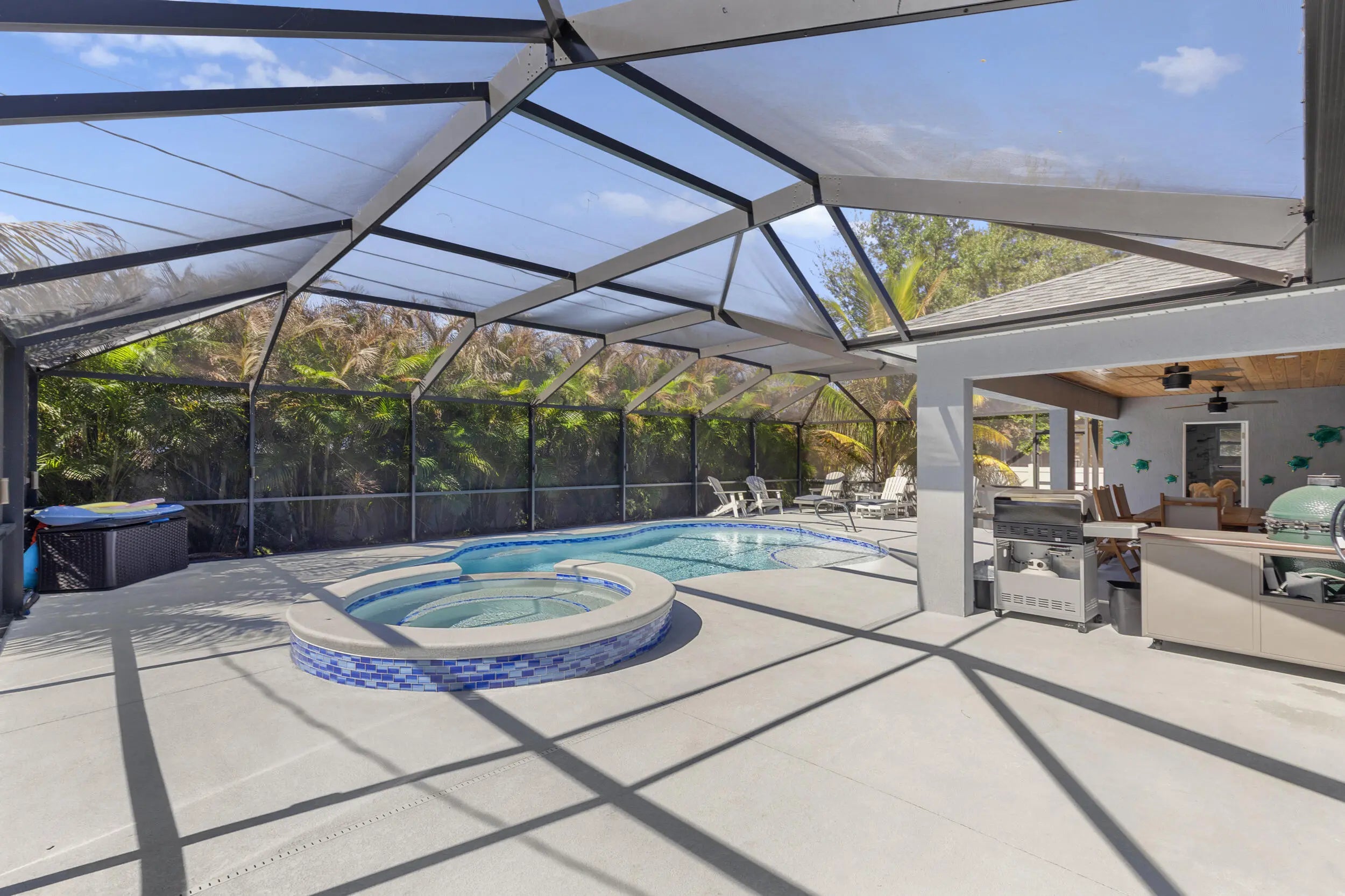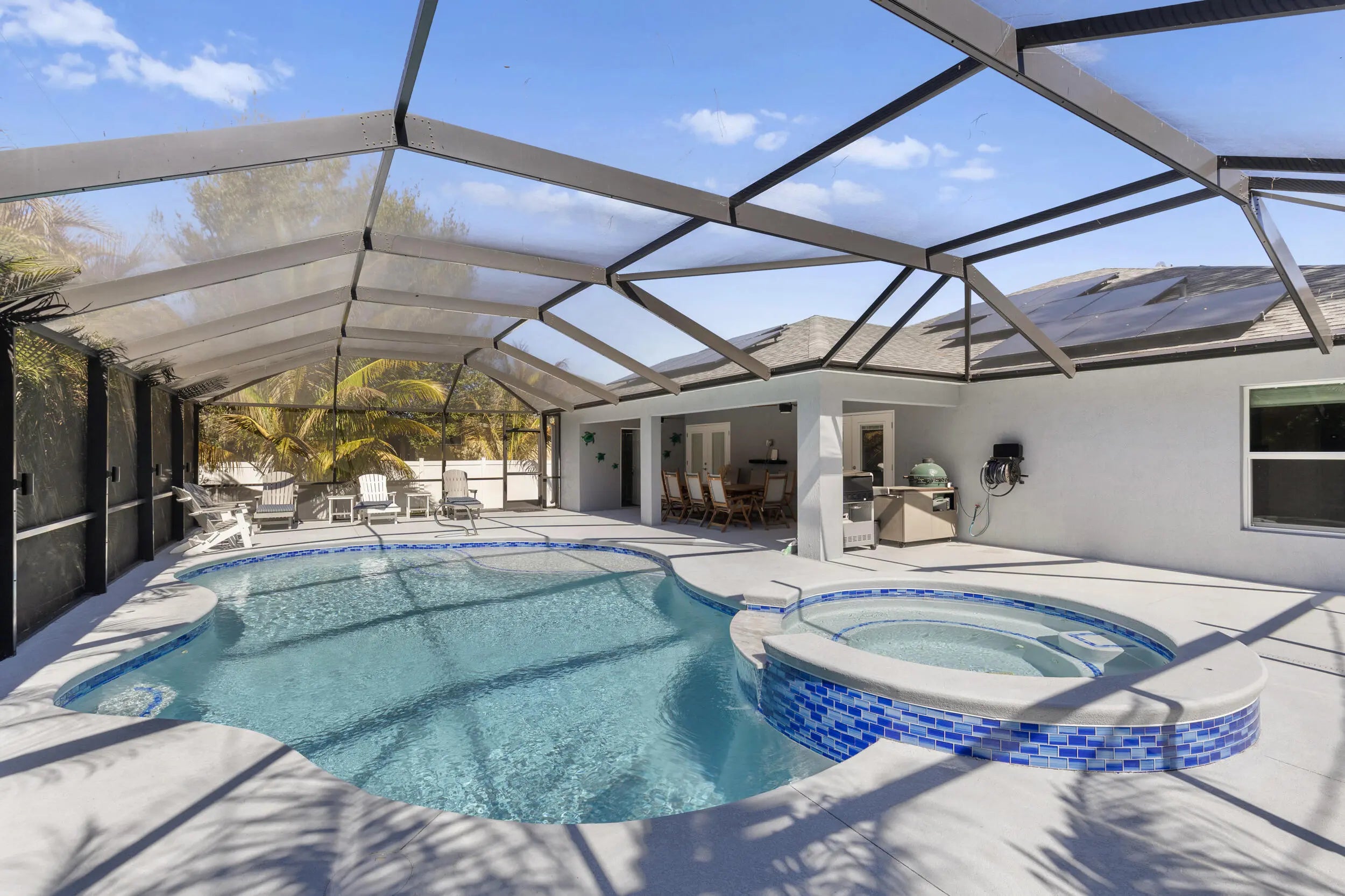 Stunning Groza-built 4-bedroom, 4-bath home with 2,120 sq ft under air, featuring a pool and spa and a 2-car garage, with a true split floor plan and high-end finishes throughout. The spacious kitchen is equipped with top-of-the-line stainless steel appliances, quartz countertops, and a large island perfect for cooking and entertaining. The primary suite offers a custom built-in closet system, dual sinks, and a beautifully finished modern bathroom, while all bedrooms feature additional recessed lighting for a bright, contemporary feel. This home is loaded with premium improvements, including owned solar panels, a whole-house generator with a 500-gallon underground propane tank, a full Ring security system, a whole-house water filtration system, a new reverse osmosis tap in the kitchen
