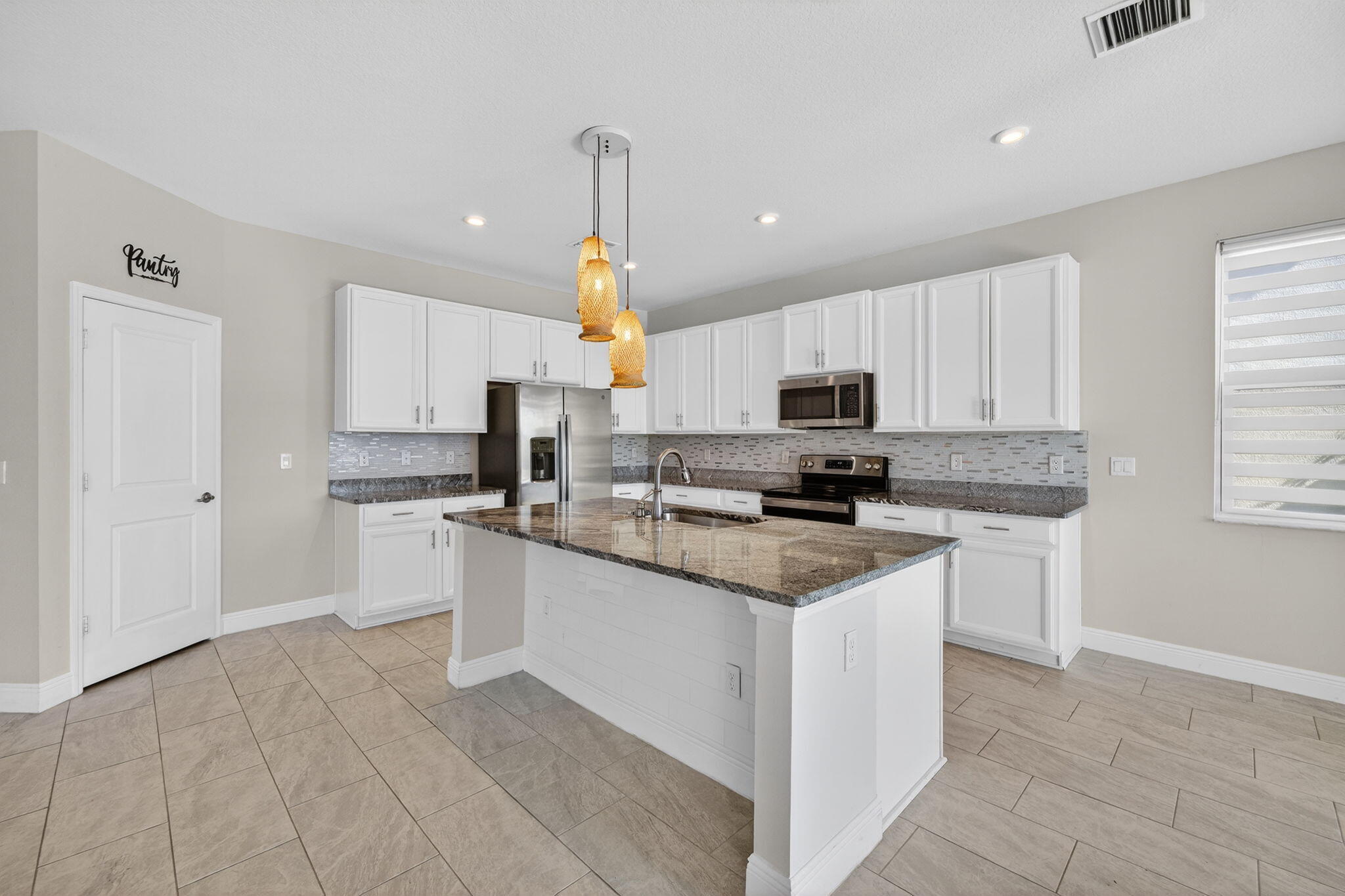 Welcome to family-friendly Crosstown Commons, now available for annual rent or sale. This beautiful 2021-built home offers 4 bedrooms plus an office, 3.5 baths, and 2,477 sq ft of bright, open living space with peaceful lake views from the main living areas and oversized lanai. The gourmet kitchen features granite countertops, stainless steel appliances, and plenty of space for entertaining, while a downstairs flex room with a guest half bath adds versatility. Upstairs a spacious loft, a relaxing primary suite, 3 additional bedrooms with 3 full baths, and a convenient laundry area with washer & dryer included. Enjoy a quiet neighborhood with a resort-style pool and playground, just minutes from i-95, Tradition Square shopping, dining, and more.