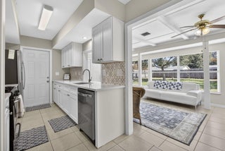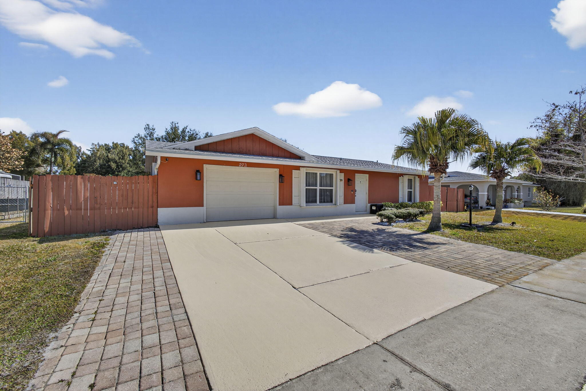 Move right into this 2-bedroom, 2-bath single-family home with 1,909 sq ft of total space. Ideally located in a sought-after Port St. Lucie neighborhood with NO HOA!! Highlights include a newer roof (2021), updated kitchen with white shaker hardwood cabinets with soft close hardware, beautiful countertops, tile flooring throughout, and accordion shutters for added safety and storm protection.The huge Family/Florida room provides flexible living and entertaining space. Large oversized single car garage. Step outside to a large, pool-ready fenced yard, perfect for outdoor living and entertaining. Situated in a great school district and a welcoming community--an outstanding option for first-time homebuyers or anyone looking for a solid, move-in-ready home. This is a must see.