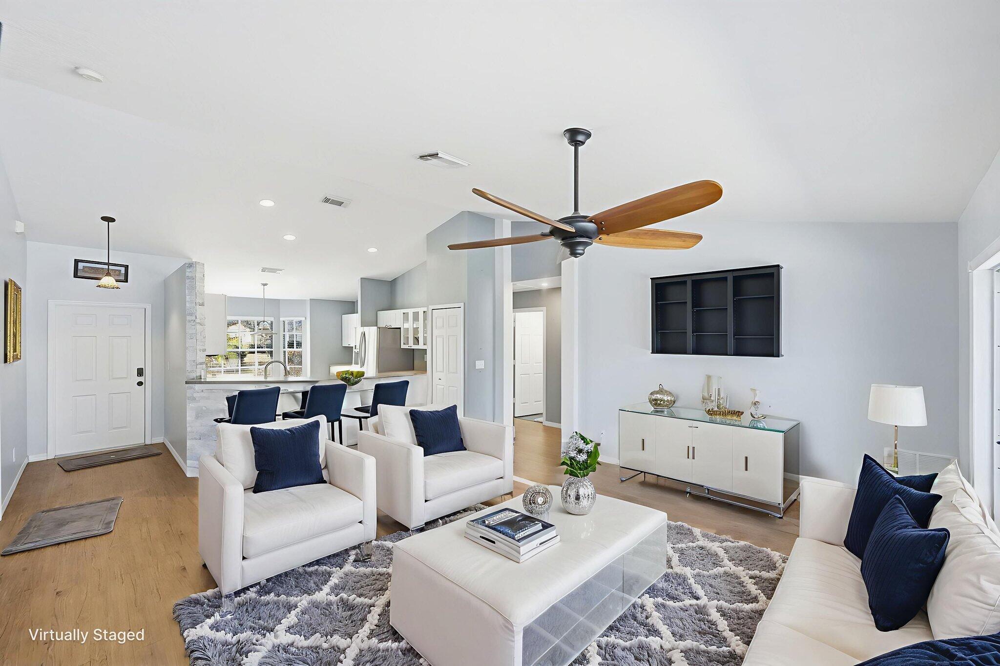 Discover this beautiful 3 Bed, 2 Bath, CBS home with open floor plan and gourmet kitchen with breakfast nook. Home was built in 2003 are features a split bedroom plan, great room and spacious owners suite with walk-in closets and newly tiled master bath. You will love the NEW Heated, Saltwater POOL installed in 2023, paver patio and fenced yard. This is great outdoor space that is perfect for entertaining! The home has been well maintained and updated with a New Roof in 2022, New AC 2021 and New Electric Panel in 2023. There are NO HOA fees and NO tax assessments! Complete storm protection! This home shows great! Excellent location near the FL Turnpike, I-95, schools and shopping.