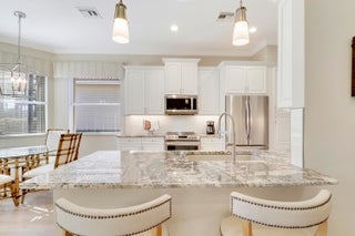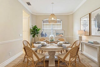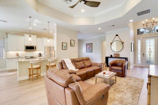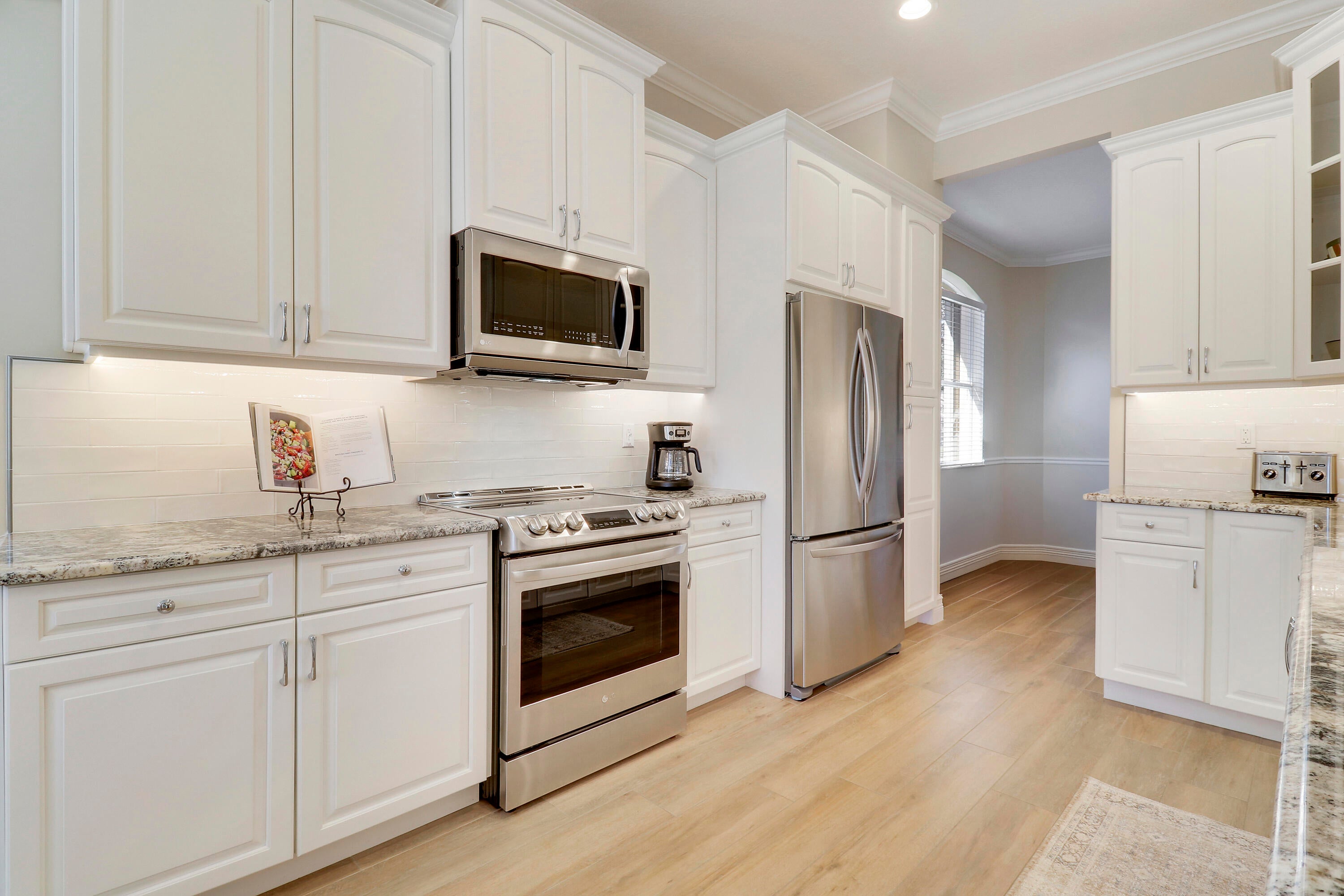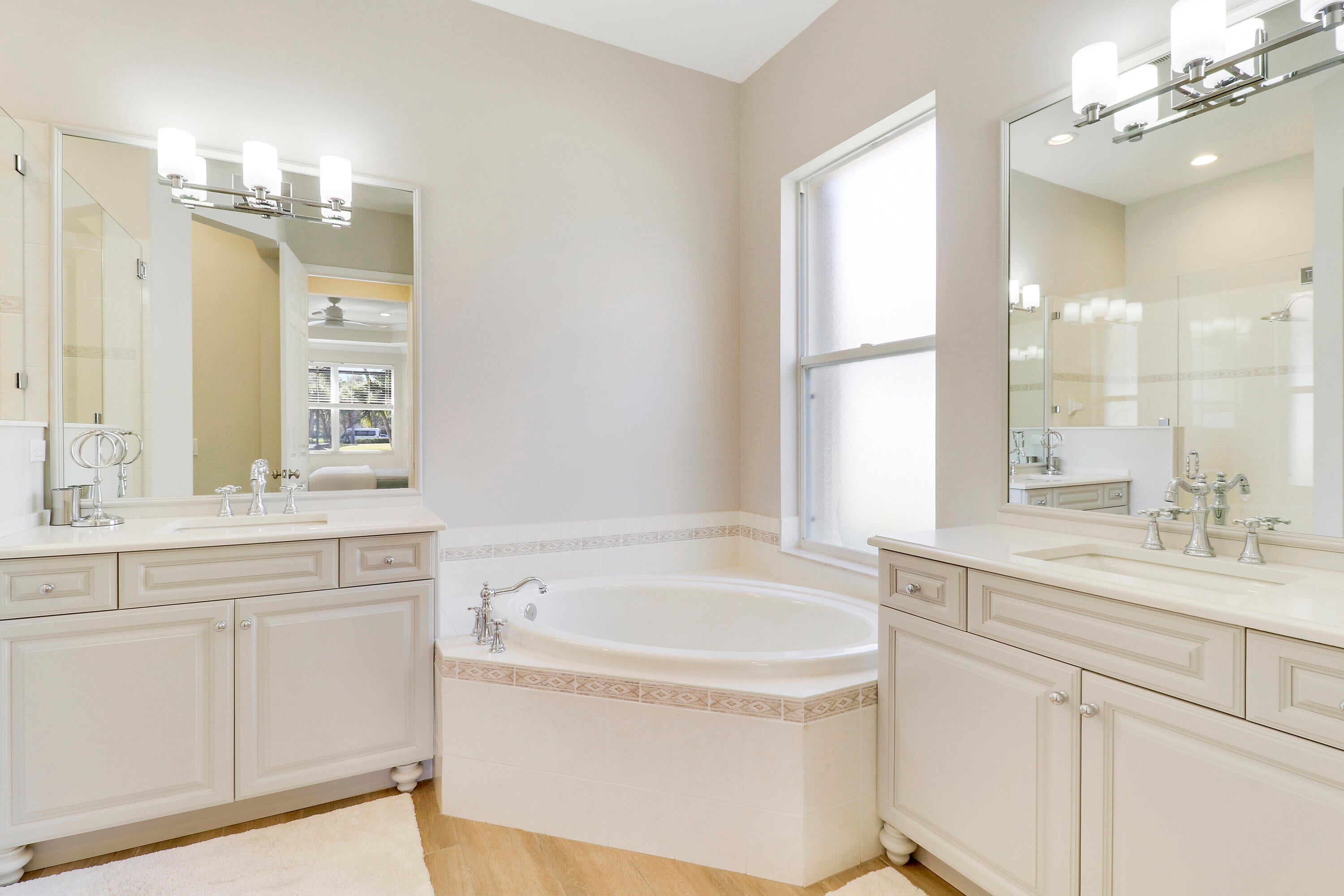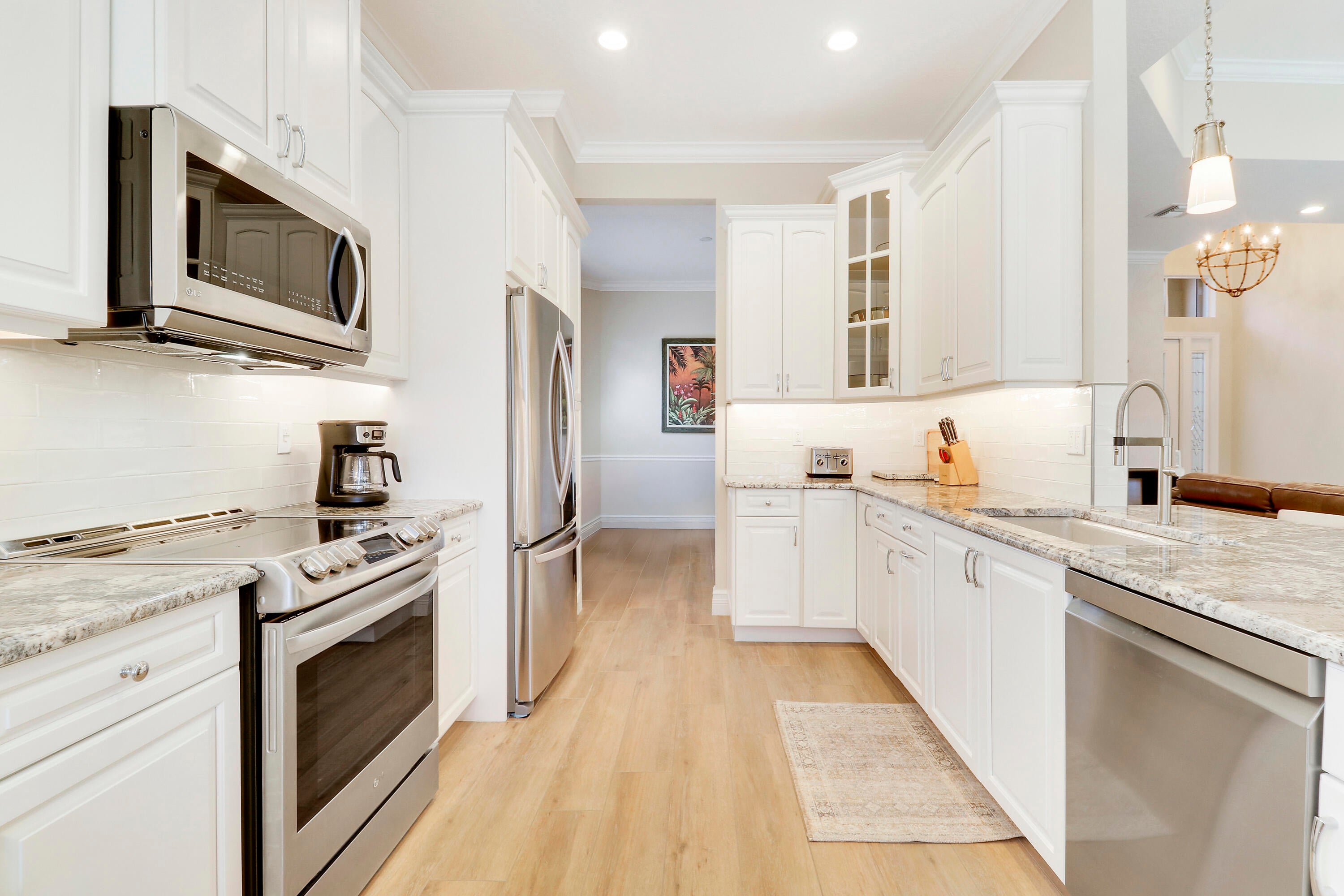 BEAUTIFULLY UPDATED POOL & SPA HOME IN PGA VILLAGE WITH LAKE VIEWS! Move right into this 3BR/2BA/2CG home just steps from the clubhouse. Remodeled in 2017, you will notice the elegant upgrades the moment you walk through the front door with wood look tile flooring t/o, newer baseboards, designer lighting & fans, neutral wall paper accents, LED hihat lighting, crown molding, glass entry front door, newer door knobs t/o, finished garage flooring, new AC in 2025 and so much more! The bright and airy kitchen opens to the living room and features white cabinetry, stainless steel appliances, pendant lighting, single level granite counters, under cabinet lighting, tiled backsplash, pantry with pullout drawers, single basin sink and charming casual dining area overlooking the pool area.The master suite features tray ceilings, dual closets and a spa-like ensuite with dual vanities, soaking tub and frameless glass shower with updated shower pan, lighting and stone vanity tops. Two guest bedrooms have access to the hall bathroom. The laundry room has cabinetry for storage, tiled backsplash and a utility sink, perfect for those messy jobs. Want to enjoy that Florida sunshine? Jump into your private, heated pool & spa! This home is also outfitted with accordion hurricane shutters, making storm preparation a breeze! Enjoy all the amenities PGA Village has to offer! This home is just steps away from the community clubhouse, the Island Club! HOA dues cover cable, internet, lawn care, mulching, tree & hedge trimming, common area maintenance and community security. PGA Village is an amenity rich community with COUNTY ONLY TAXES surrounded by multiple golf courses where MEMBERSHIP IS OPTIONAL. Activities at the Island Club include pickleball, tennis, resort style pool, exercise rooms, ballroom, billiards and more. A short drive to the Palm Beaches, Stuart, Jensen Beach, Vero Beach, airports, baseball, dining, shopping and beaches. Call today to view!