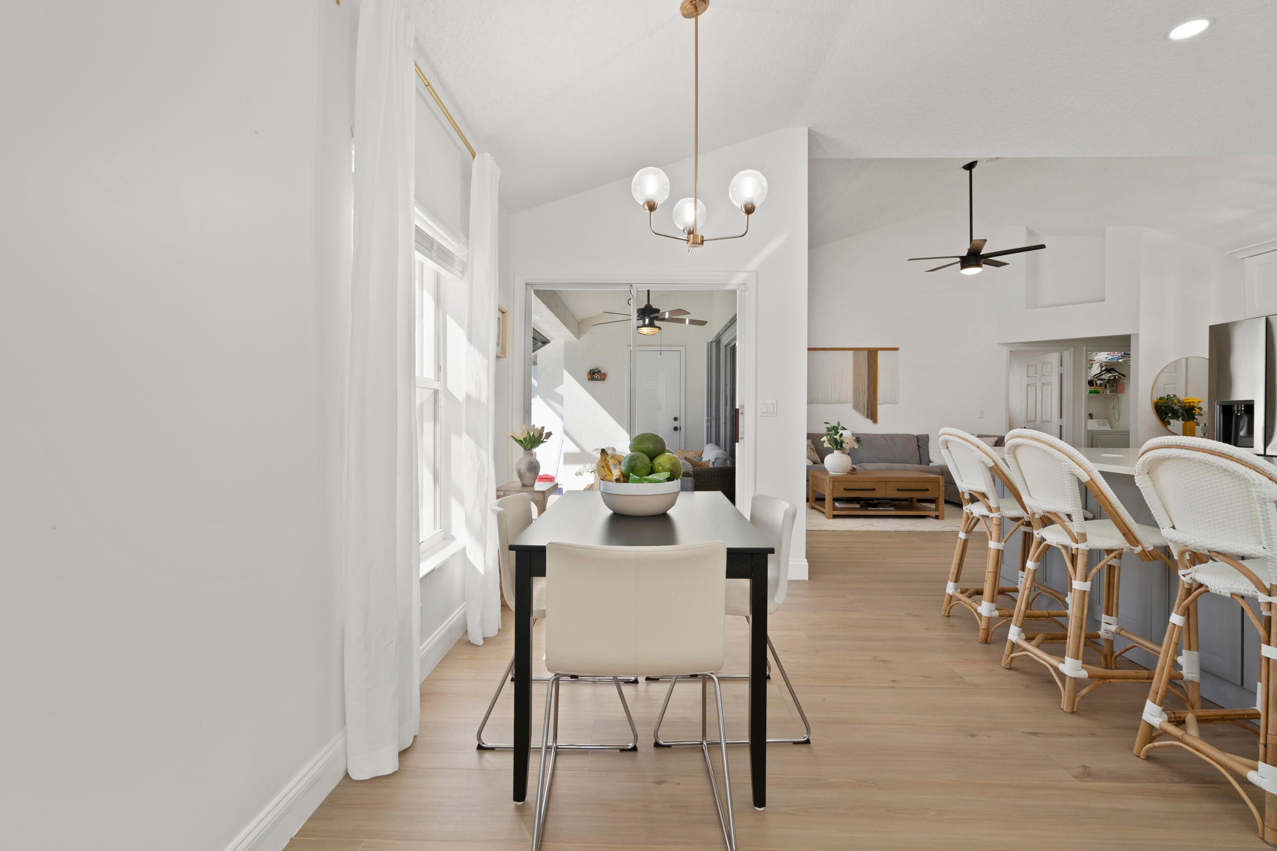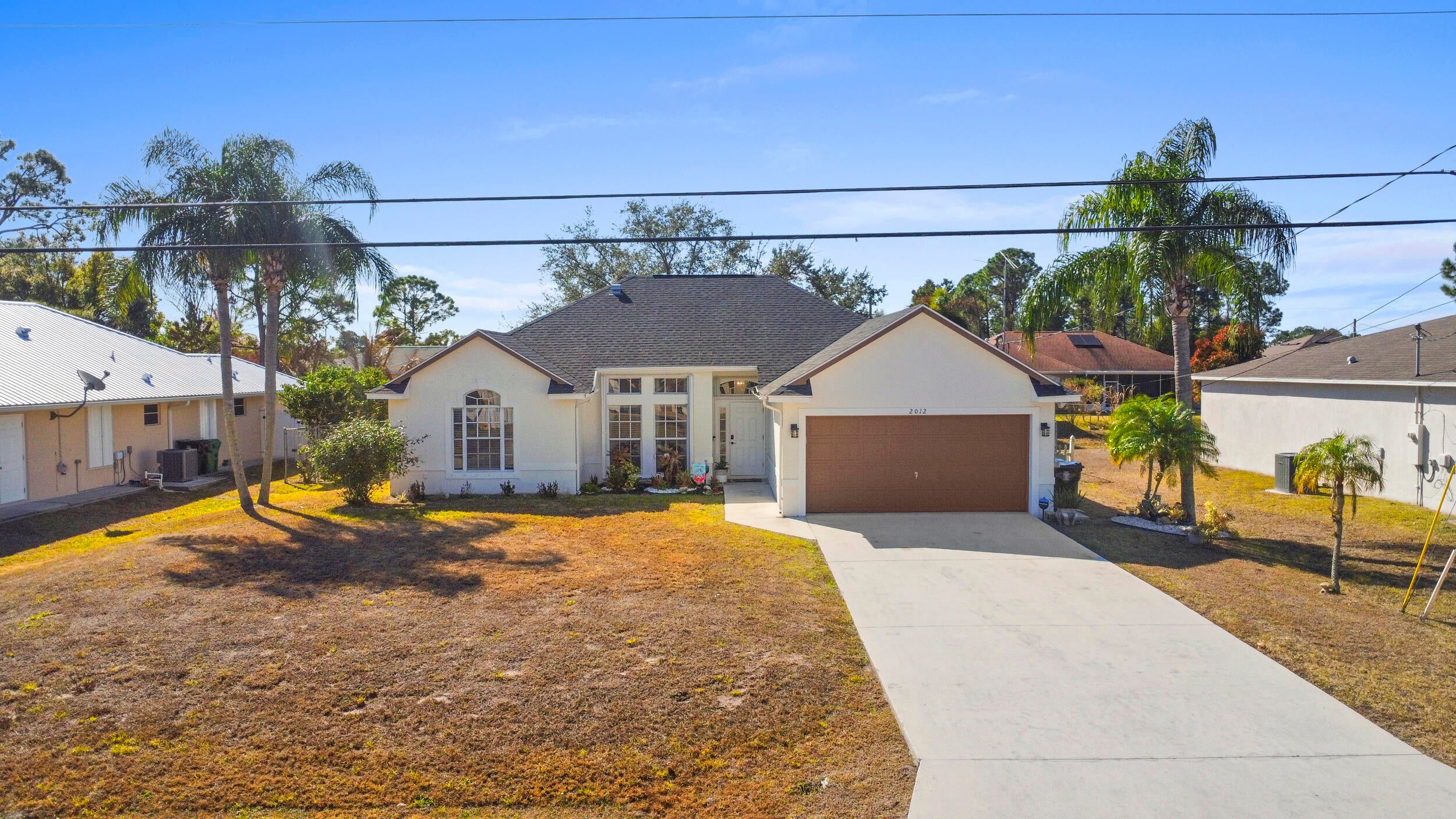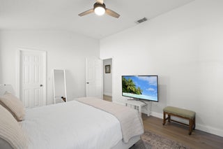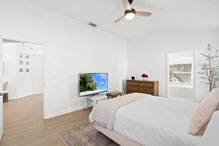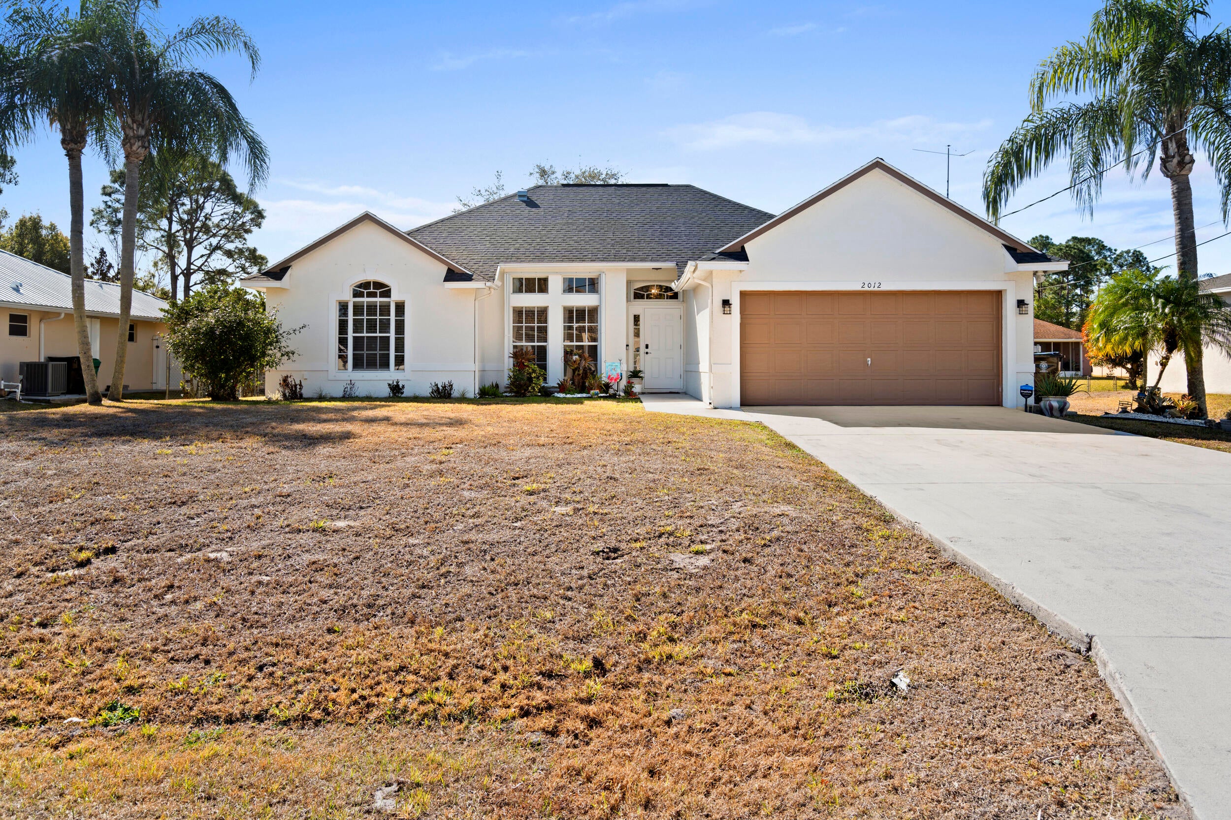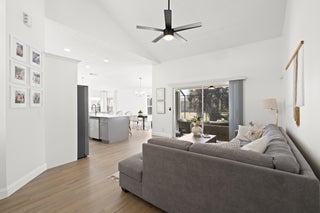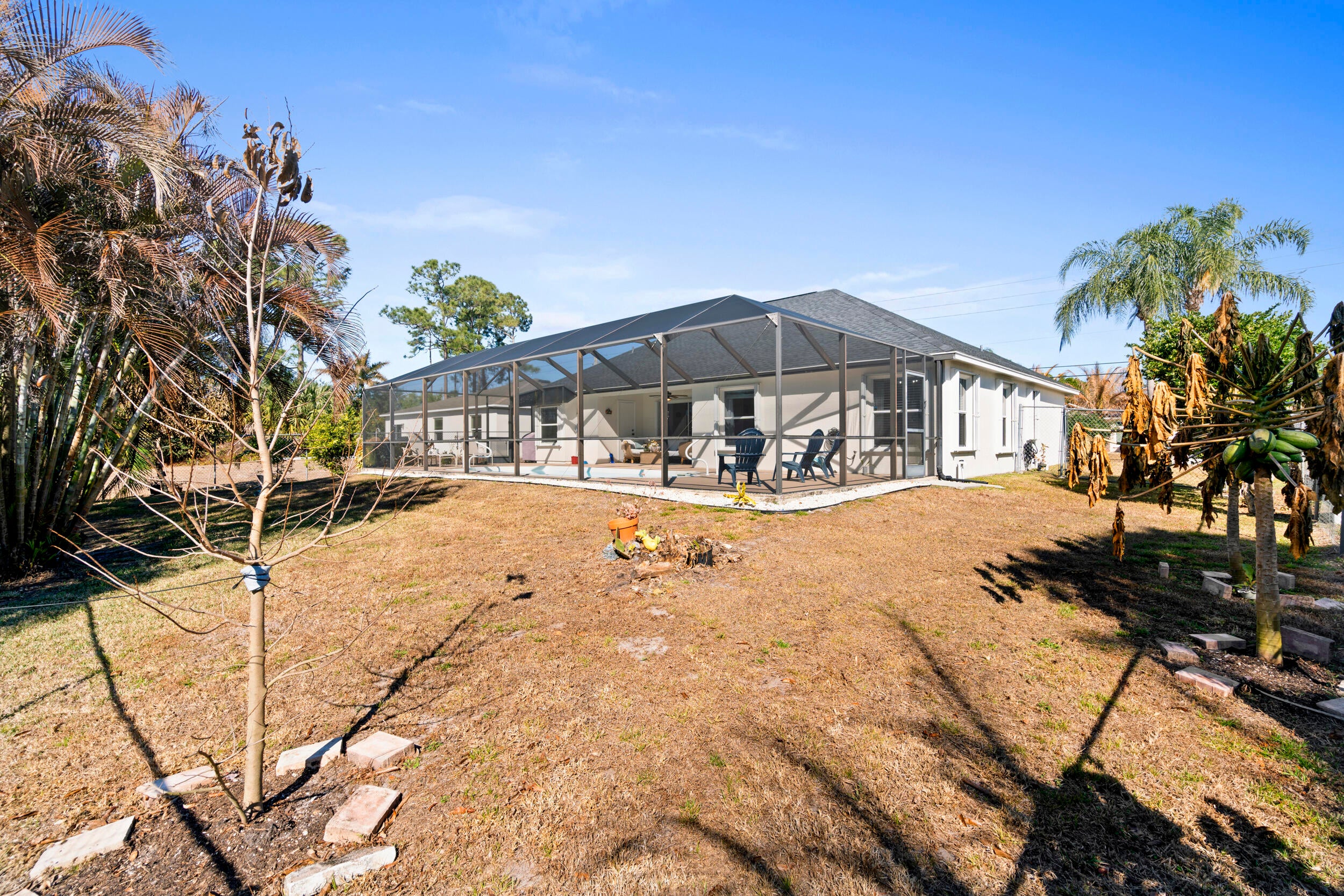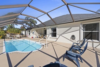 Recently renovated 3-bedroom 2 bath pool home. New roof, new floors on the entire house. Master suite has vaulted ceilings, a walk in closet and luxurious bath with roman tub, separate shower and dual sinks. New counter tops and new kitchen cabinets. 2 sets of sliders lead to the screened pool overlooking the fenced yard that backs up to a Drainage right of way for extra privacy, 2 car garage. Kitchen Stove, refrigerator in the garage and alarm system are excluded.