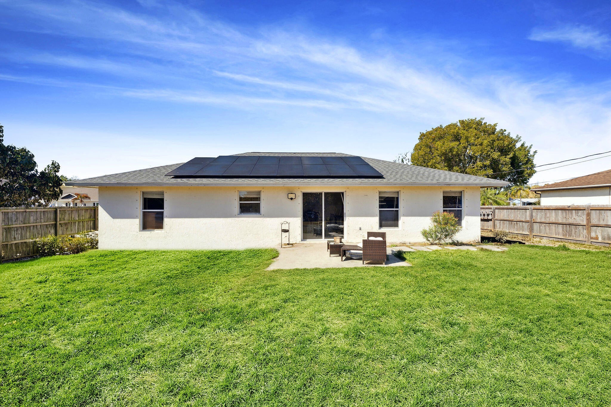 Welcome to this beautifully maintained 3-bedroom, 2-bath home offering comfort, efficiency, and abundant natural light throughout. Enjoy peace of mind with major upgrades already completed, including a new roof (2023) and brand-new A/C (2024).The bright, open living spaces are filled with natural sunlight, creating a warm and inviting atmosphere. The home also features a whole-house water filtration system and solar panels, delivering both convenience and energy efficiency.Step outside to a spacious backyard with plenty of room to add a pool, perfect for entertaining or creating your own private outdoor oasis. Whether you're relaxing indoors or enjoying the expansive yard, this home offers the ideal blend of functionality and lifestyle.Move-in ready and packed with valuedon't miss this opportunity!