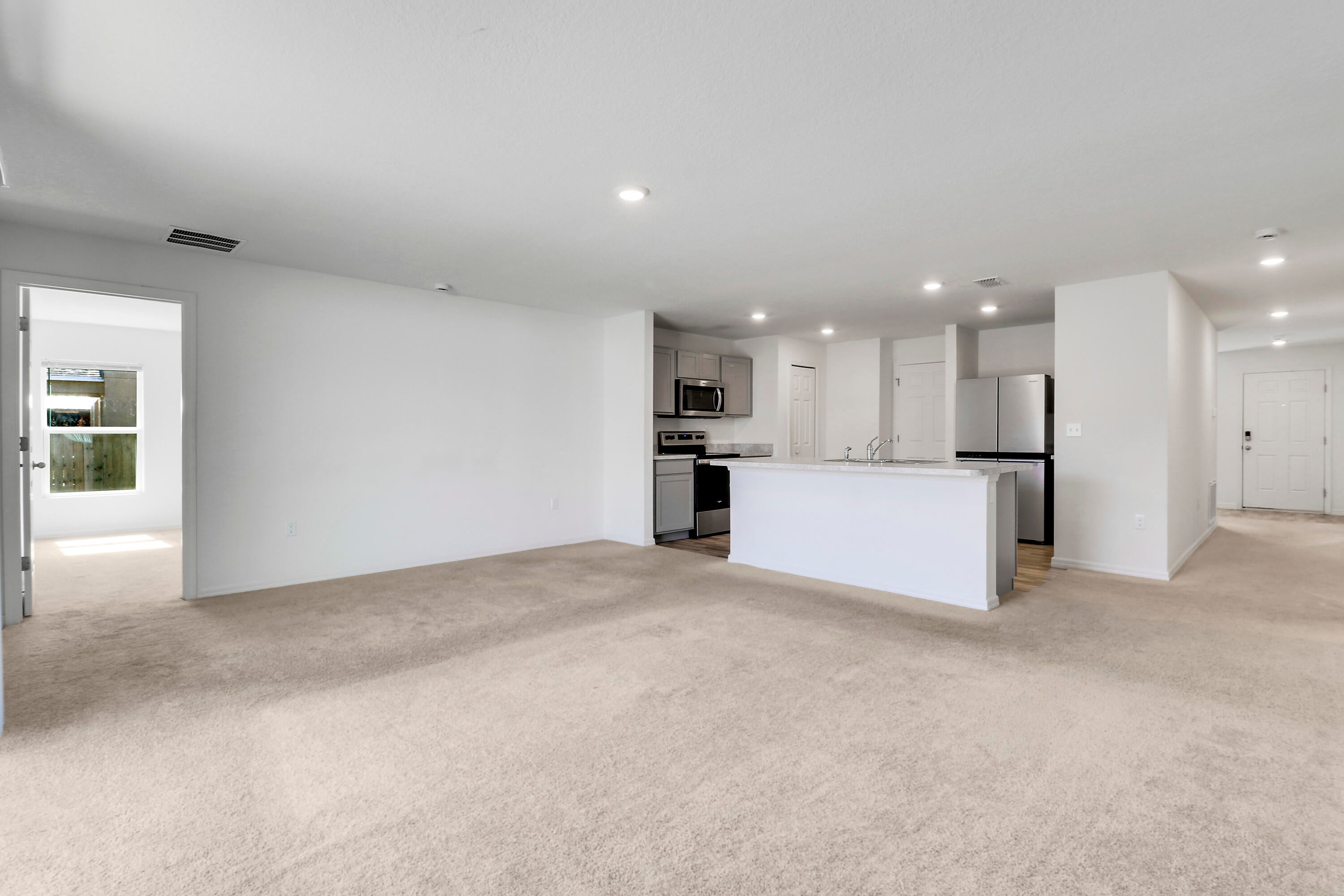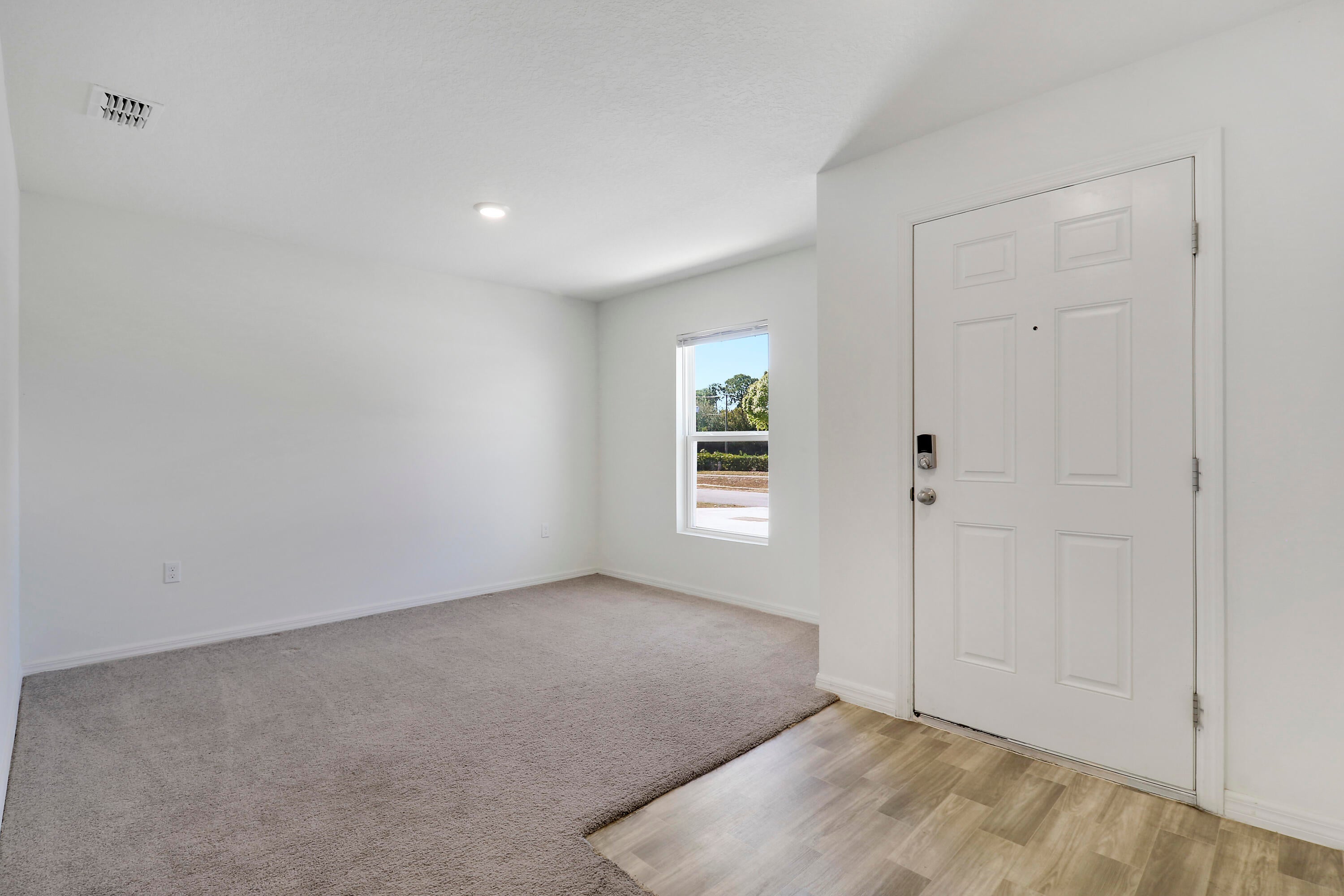 Move-in ready 2023-built home featuring 4 bedrooms, 2 bathrooms, and a 3-car garage. Bright open floor plan with a spacious living area, modern recessed lighting, and neutral finishes throughout. Kitchen offers stainless steel appliances, ample cabinetry, and a large island overlooking the main living space. Indoor laundry room, and waterproof vinyl flooring in main areas with carpeted bedrooms. Large backyard and convenient Port St. Lucie location near the Florida Turnpike, shopping, dining, & schools. No deed restrictions or HOA!