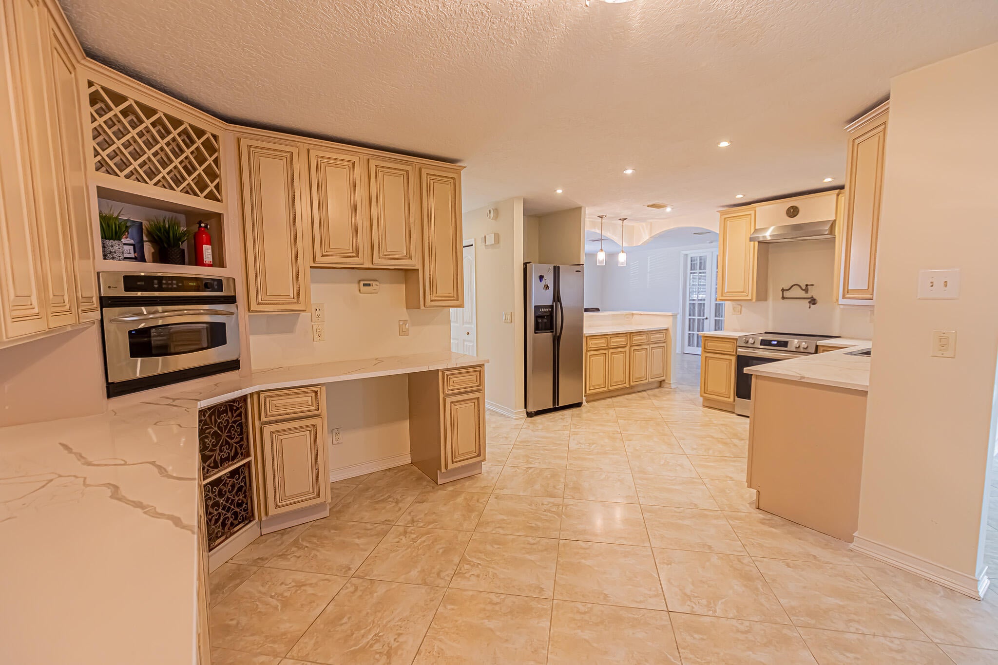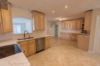 Well-Maintained 3/2/2 Home is move in ready! Updated with modern finishes throughout. Spacious brick home featuring separate living, dining, and family room areas. Tiled floors throughout. The kitchen offers stainless steel appliances, a pot filler, ample wood cabinet spaces, new quartz counters. The primary suite includes dual sinks and a walk-in shower. Additional features include French and pocket doors, pull-down attic access, and partial hurricane shutters. Enjoy outdoor living on the open patio overlooking the large fenced backyard. Major updates include a 2018 A/C and water heater, and a 2020 roof. A great deal, check it out!