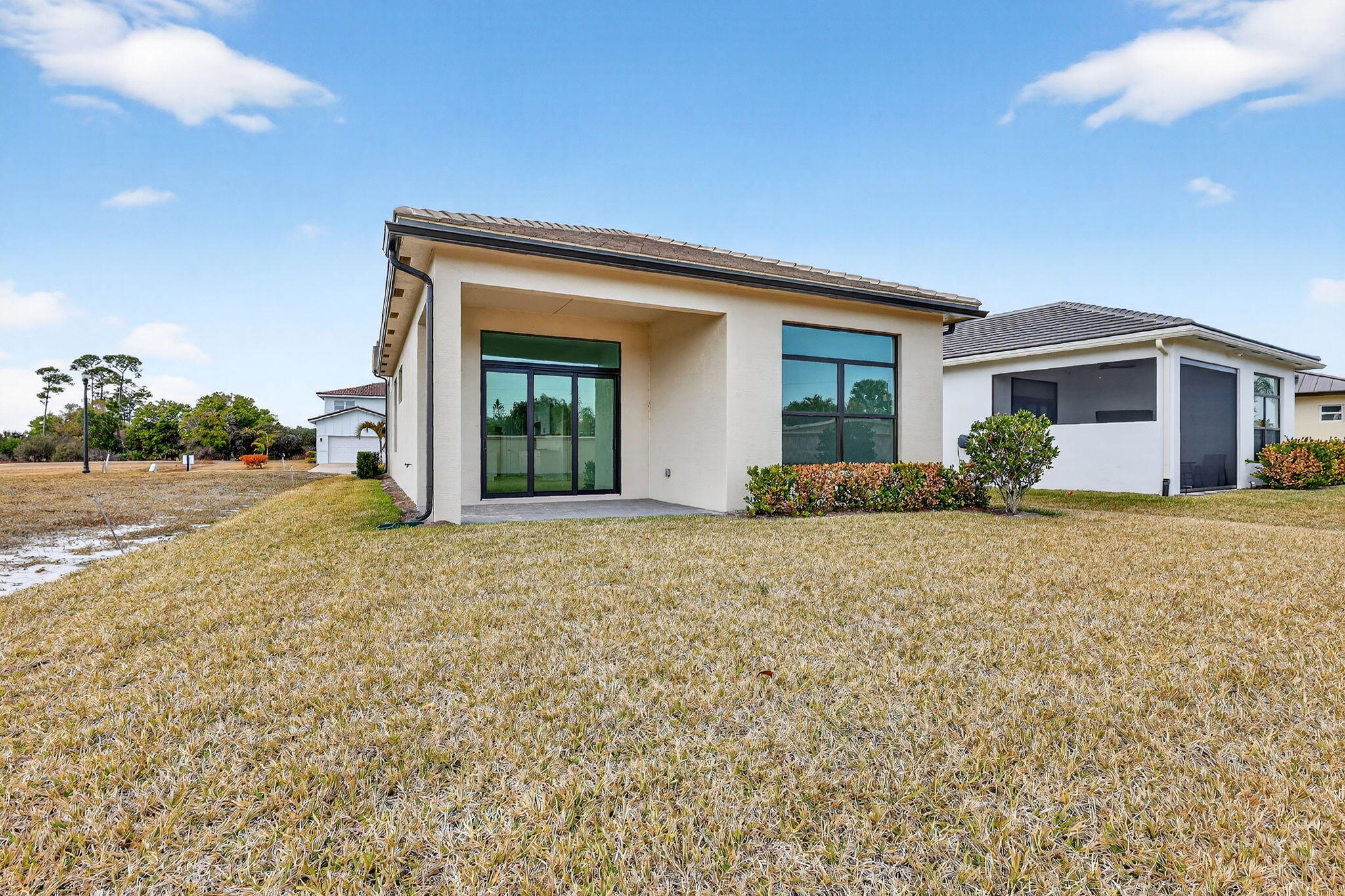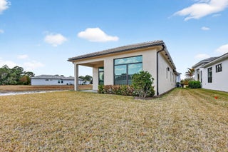 Your vision, your style, your brand-new home! This never-lived-in residence in the gated Rivella community is a standout for modern design and open space. Soaring 11'4'' ceilings create an immediate sense of scale in the grand entry, flowing into a 3BR layout plus a den with classic double French doors. The kitchen is designed for daily life and entertaining alike, featuring Quartz countertops and a gas range. Complete impact glass throughout offers security and modern efficiency. Set on an oversized lot with significant backyard depth, there is plenty of room for outdoor customization. Rivella residents enjoy a clubhouse, lakeside pool, and tennis. Ideally located near Stuart dining, Jensen Beach, and Clover Park, this home offers a fresh start in a premier location. Ready for move-in!