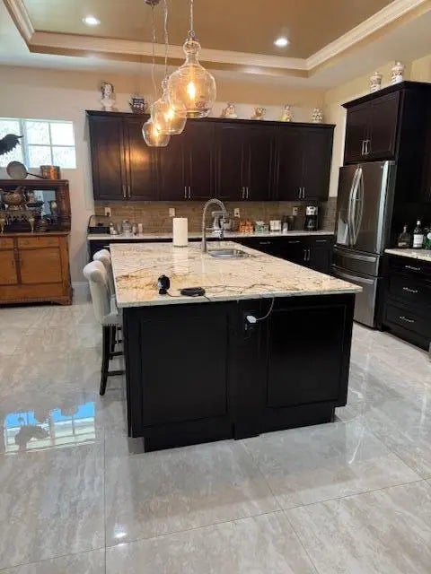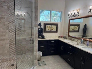 Custom built home with columned entry flowing into an open concept living. The home features porcelain tile flooring throughout the home, Coffer ceitling in the living room. with a split floor plan. The bedrooms are all ensuite with private baths and a home office. The kitchen features self closing 42 inch cabinets, granite counters, subway tile backsplash and top of the line stainless steel LG appliances. The master bedroom features a tray ceiling walk in custom closets. There is a huge walk in shower with dual sinks in the master bath. The back yard backs up to a preserve so there will never be anything behind you besides nature.