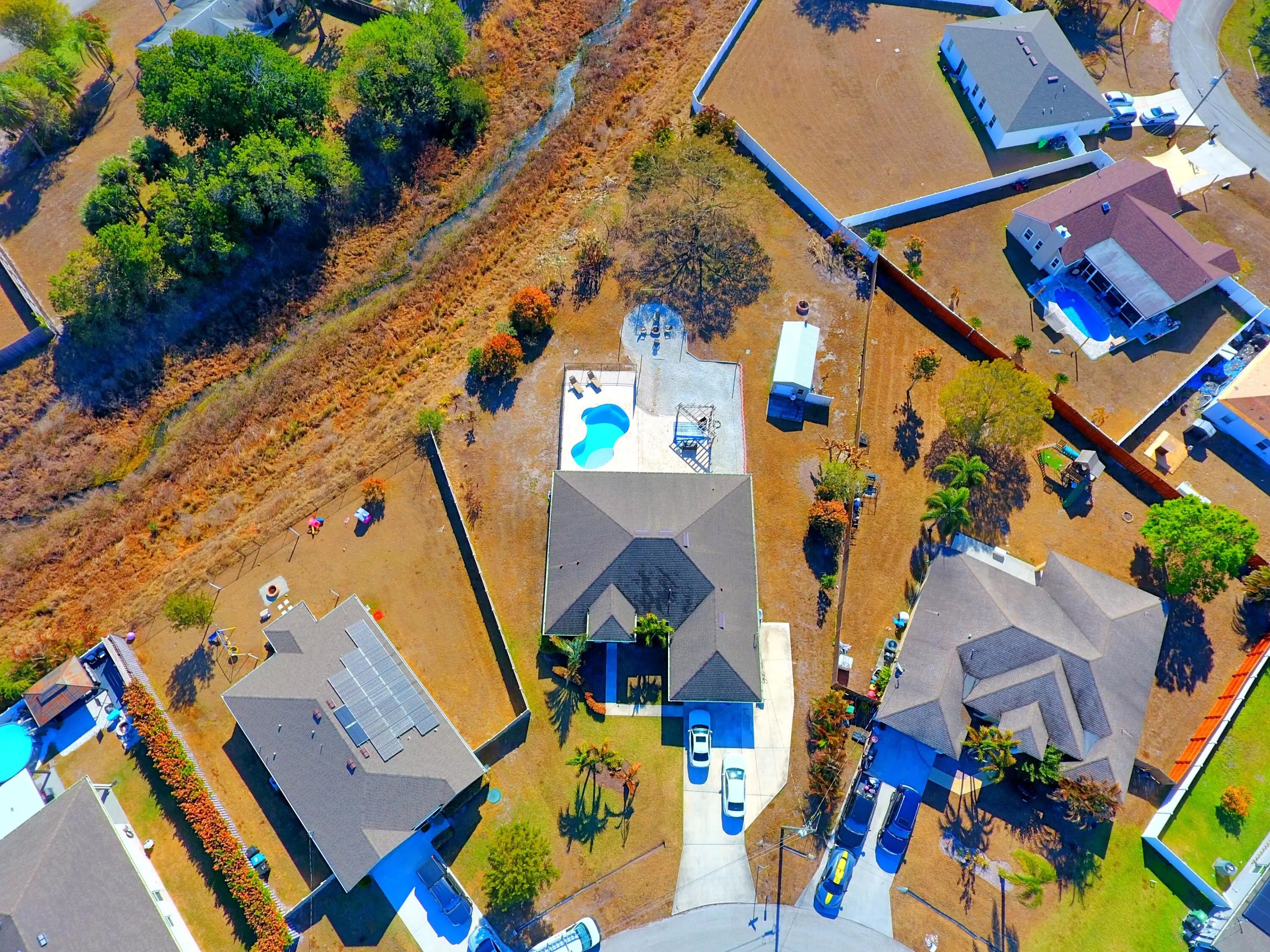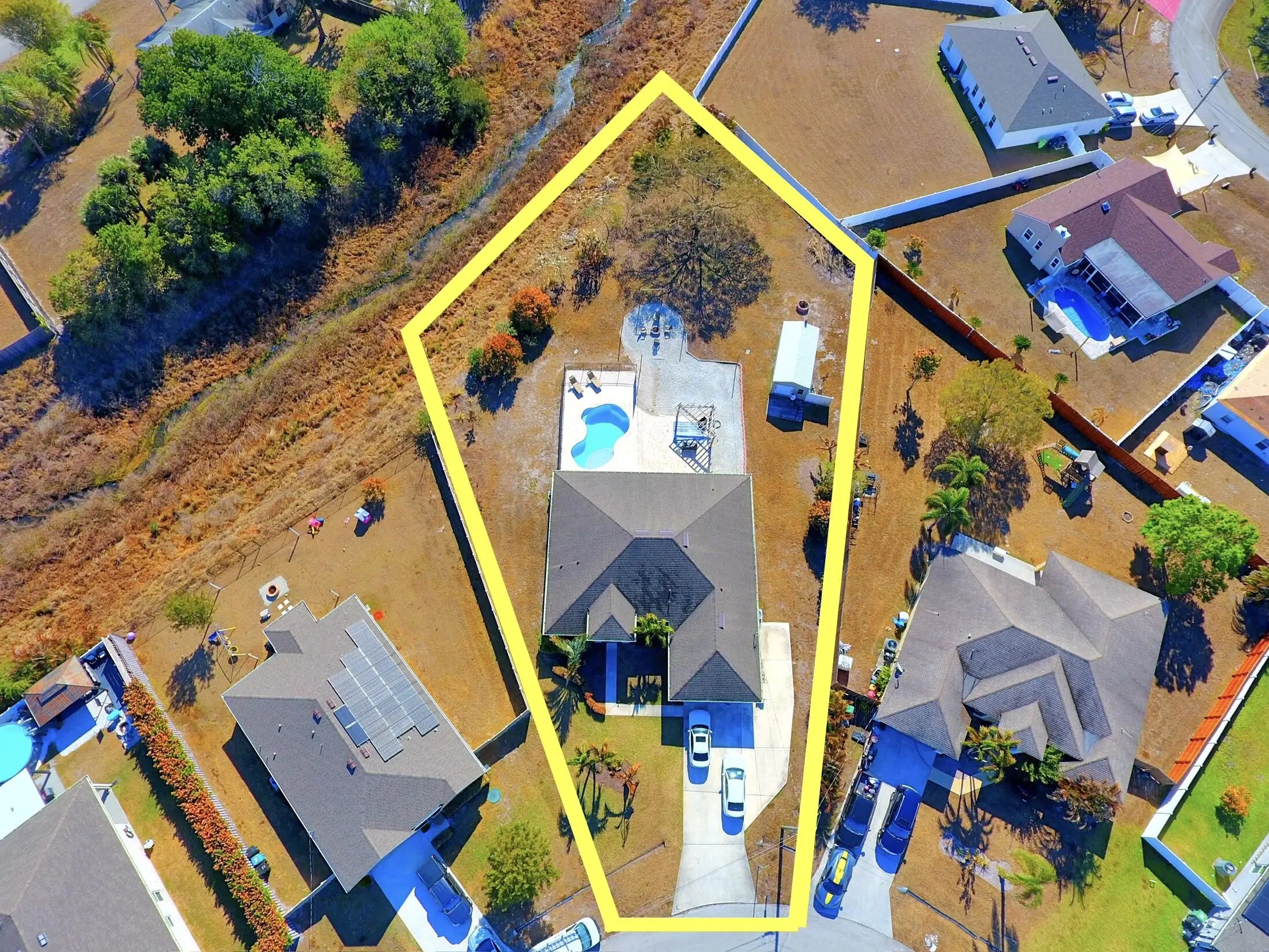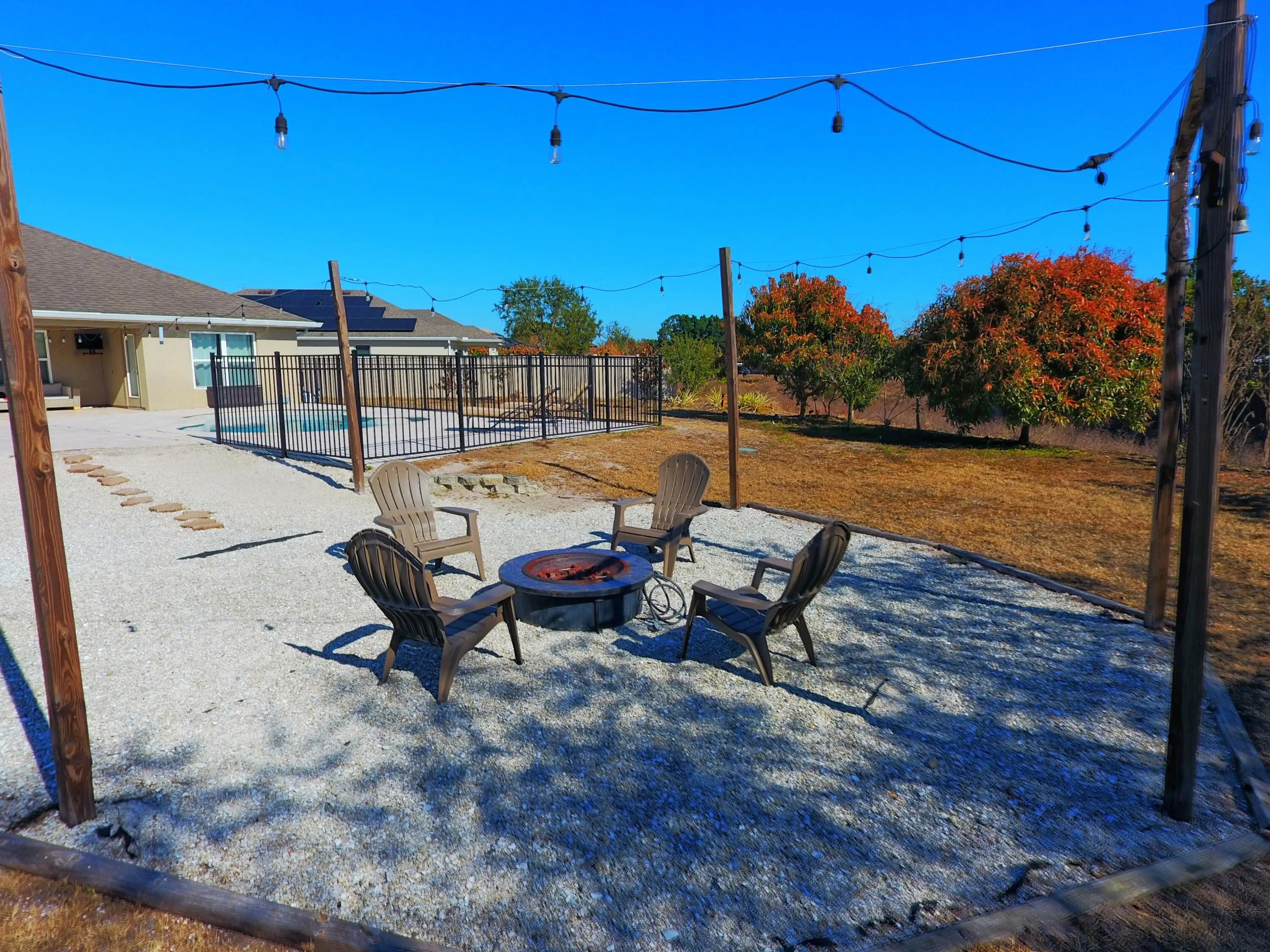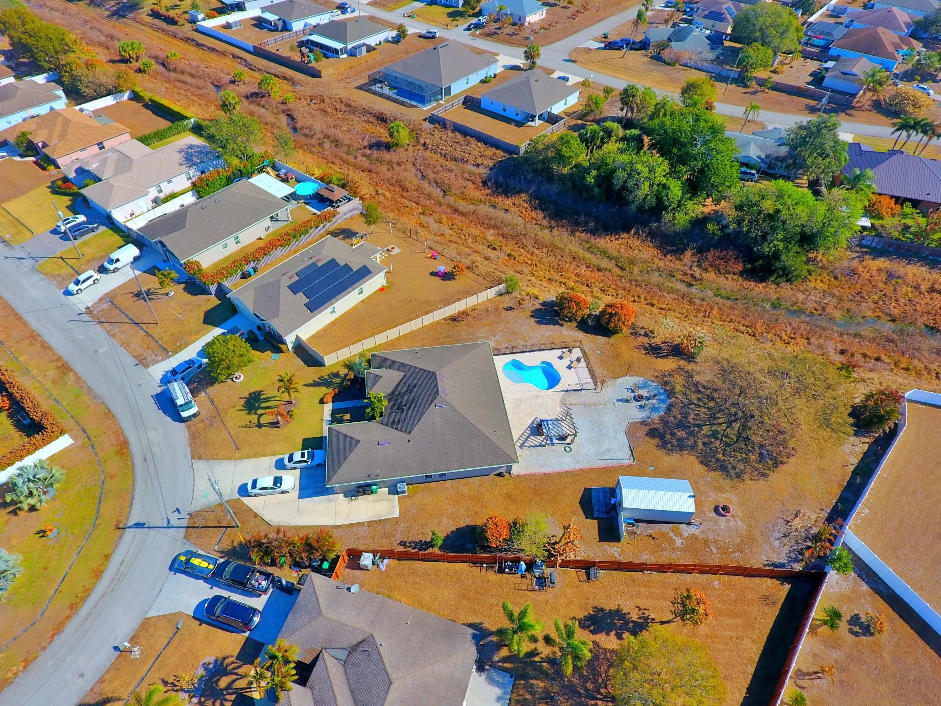 Well-appointed 4 BD/ 3 BA home on nearly a 1/2 acre oversized corner lot backing to a private preserve. Built in 2017 and move-in ready with vaulted ceilings, split floor plan, new appliances, and epoxy garage floor. Bring the toys - extended driveway with boat/RV hookup and fully electrical permitted shed for storage. The backyard steals the show with a saltwater pool, large travertine patio, covered lanai with outdoor TV, fire pit area, and tons of space to entertain or unwind. Privacy, upgrades, and room to live a little - this one checks all the boxes. Be sure to schedule a showing today because this property won't last long!