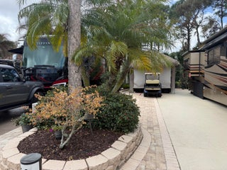 Enjoy the privacy of the preserve with this updated back in lot. Recently added Synthetic palm fronds for low maintenance on the nicely equipped tiki with kitchen! Plenty of room for vehicles and golf cart. Nice landscaping and paver accents this desirable lot. Storage bins and furnishings included. Lot faces cross street so easy back in access. A fantastic lot for warm weather getaway or rental income possibilities! Located in the Motorcoach Resort St Lucie West - a class A only resort. Amenities include 18 hole golf, pickleball, pools, spas, tennis, clubhouse, onsite manager with endless activities and social calendar and more!