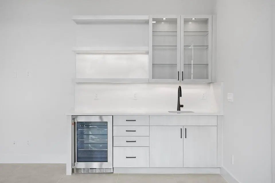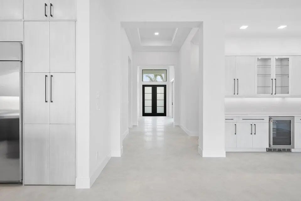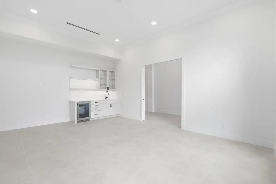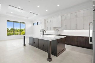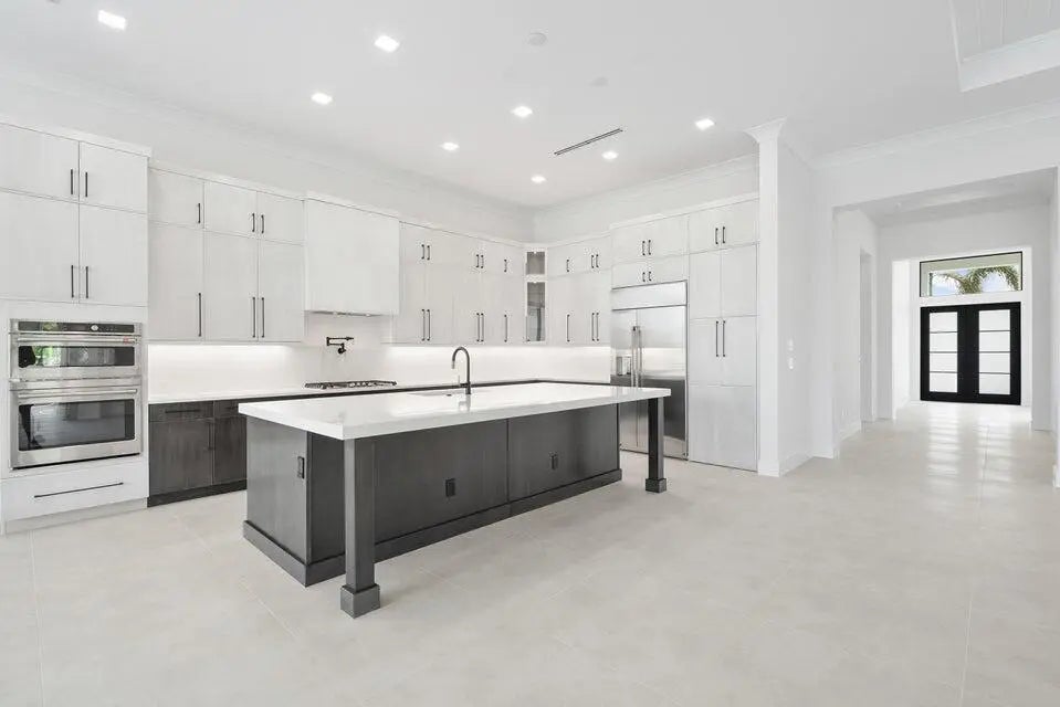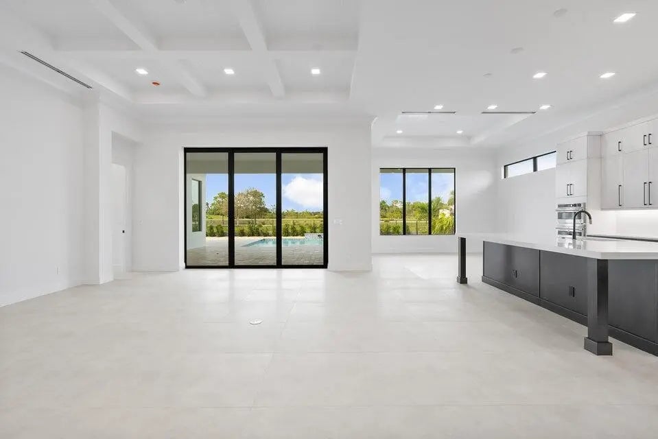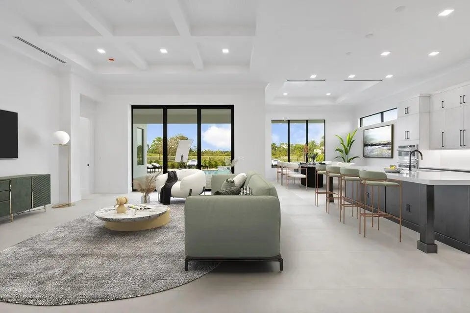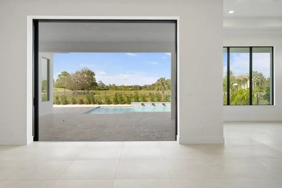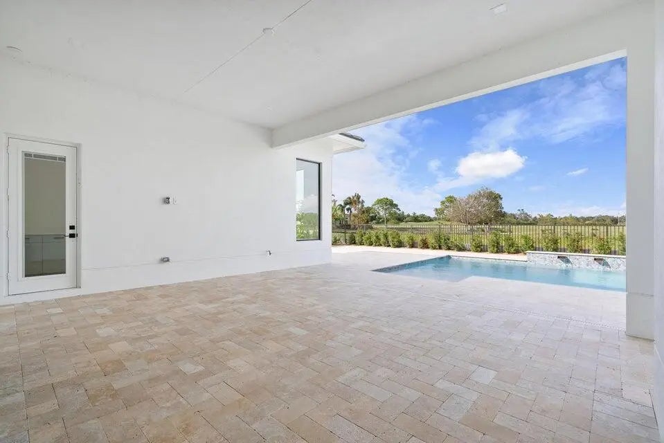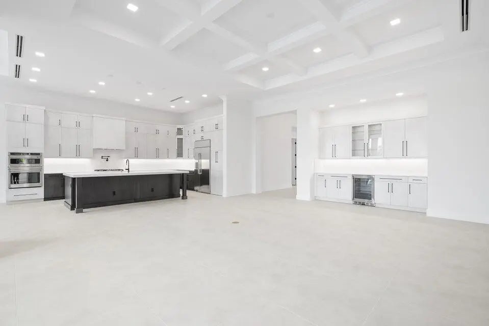 This coastal-contemporary semi-furnished home offers 3 bedrooms, 3.5 bathrooms and a 3-car split garage across 3,299 sq. ft. of air-conditioned space and 4,651 total sq. ft. The kitchen features a large center island with an extended breakfast bar, double-stacked white cabinetry, solid white quartz countertops, and premium Cafe appliances, including a 42'' built-in refrigerator, wall oven/microwave combo, gas cooktop, and a hidden pantry. Soaring 12-ft. ceilings, a club room with wet bar and elegant 32x32 tile flooring throughout enhance the home's luxurious feel. The great room includes a built-in bar with upper and lower cabinetry and opens to a spacious lanai and pool deck with travertine pavers. The pool showcases a sun shelf and water feature.