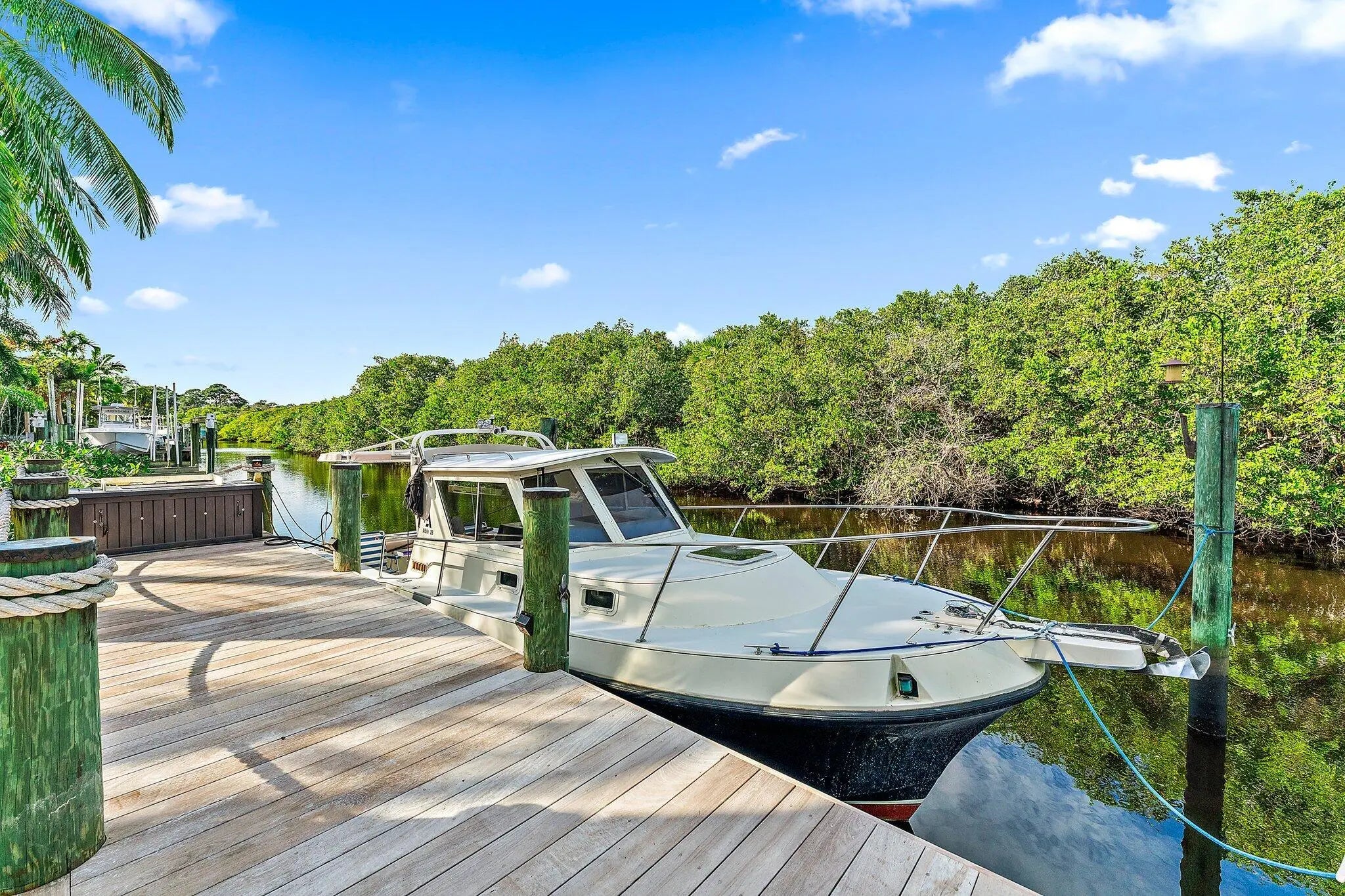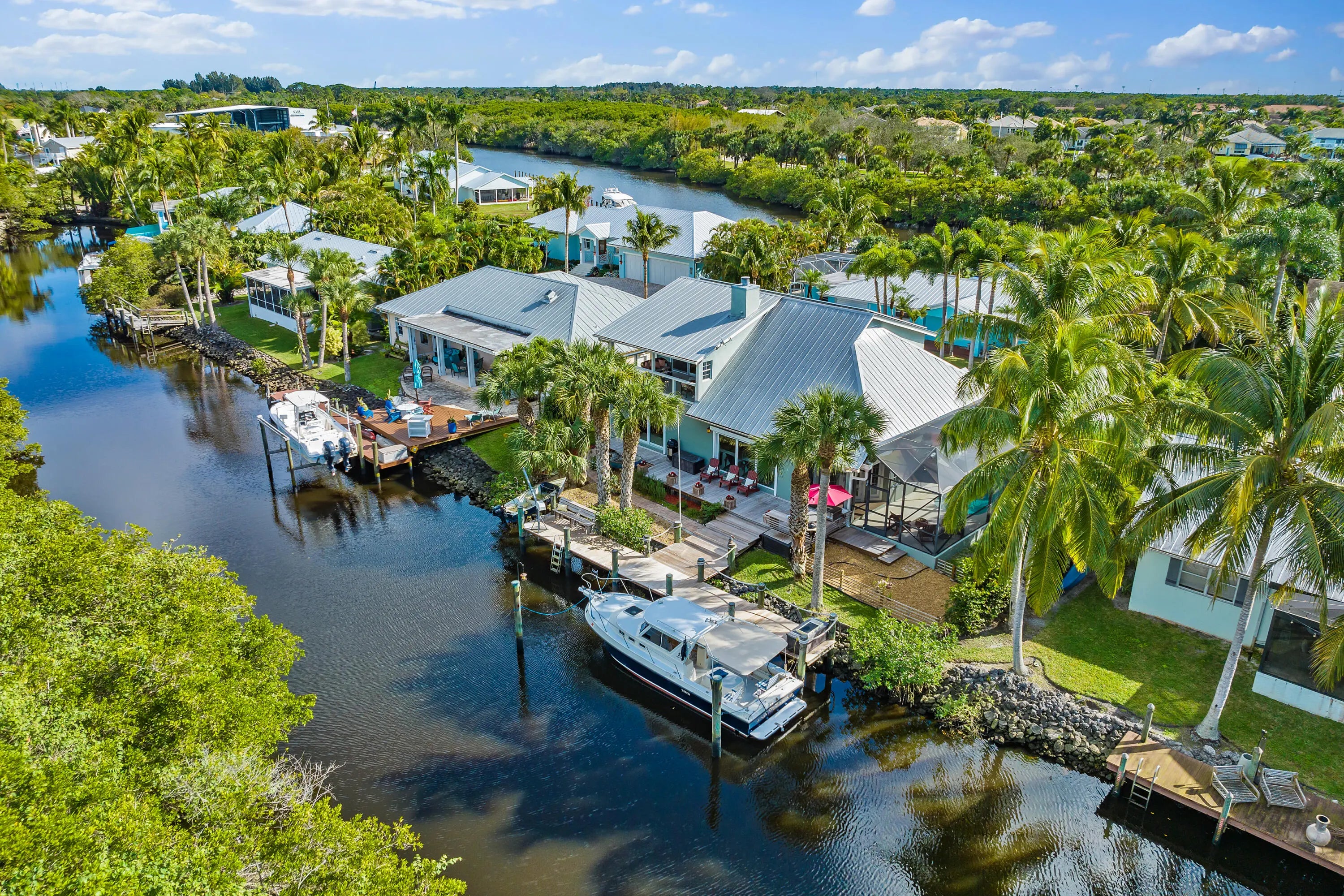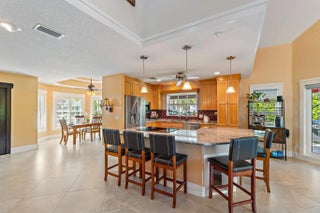 Boater's Paradise! STUNNING Waterfront & Preserve views! Your very own Tropical Oasis w/lush colorful plants, Fruit trees, Hardwood (IPE) Multi Level decking, Custom heated/salt water Pool, Brand NEW Pergola w/Trex deck & 62+ft Dock on a deep canal for your boating pleasure. Watch manatee & beautiful birds as you relax or fish by the water's edge. This Solid Built CBS 2 story Home has soaring 21 ft ceilings, Hurricane Impact Windows/Doors, Metal Roof & Solar Panels for Low Electric Bills! Features: Granite kitchen, laminate flooring, coastal color palette, 3.5 baths & beautiful views of the shimmering water & bountiful nature! The Open Floor boasts a chef's Kitchen, Dining Area & Great Room. Two Owner's Suites w/private baths & walk in closets, 1st Floor Primary Suite has sliders to an