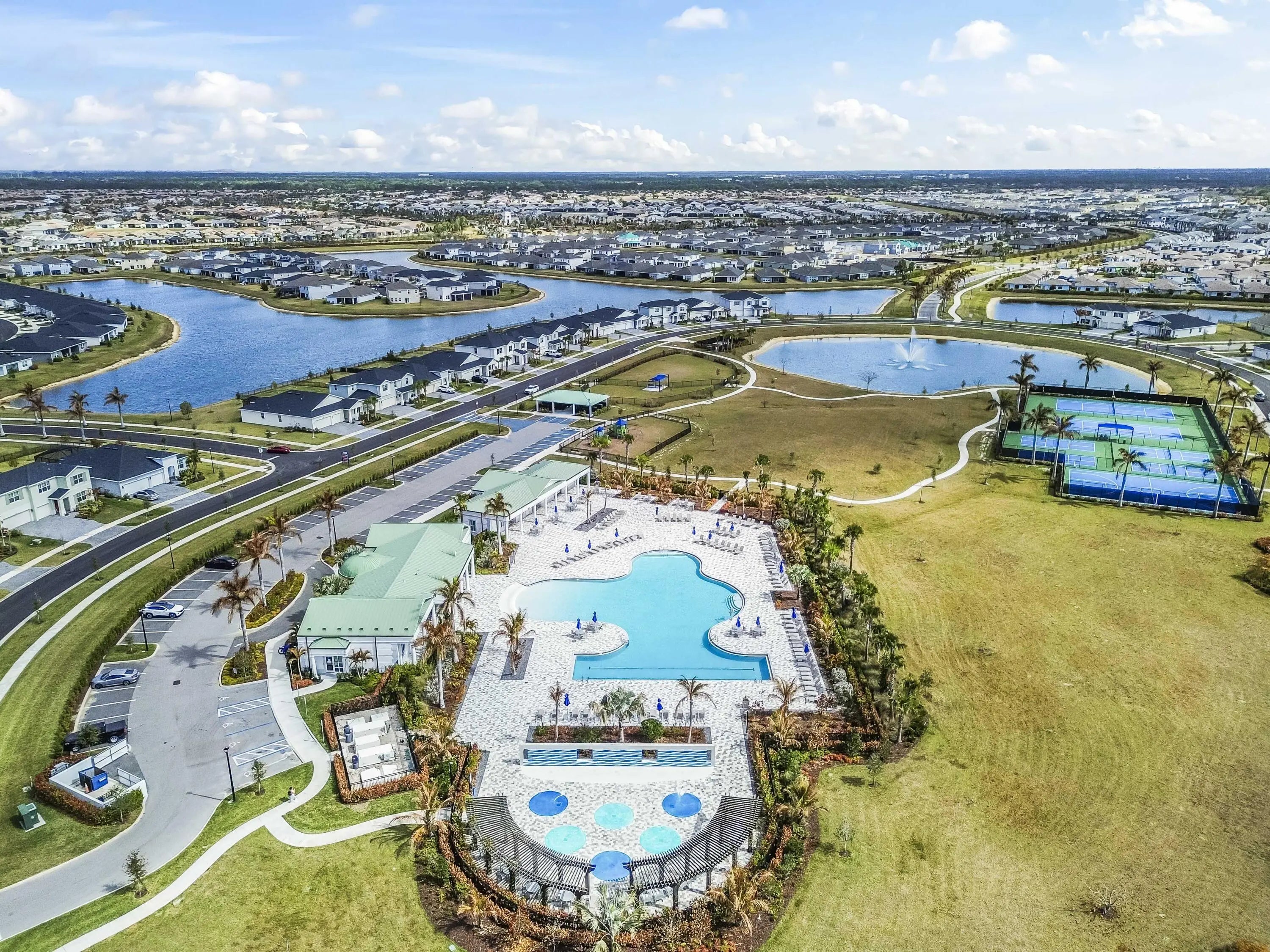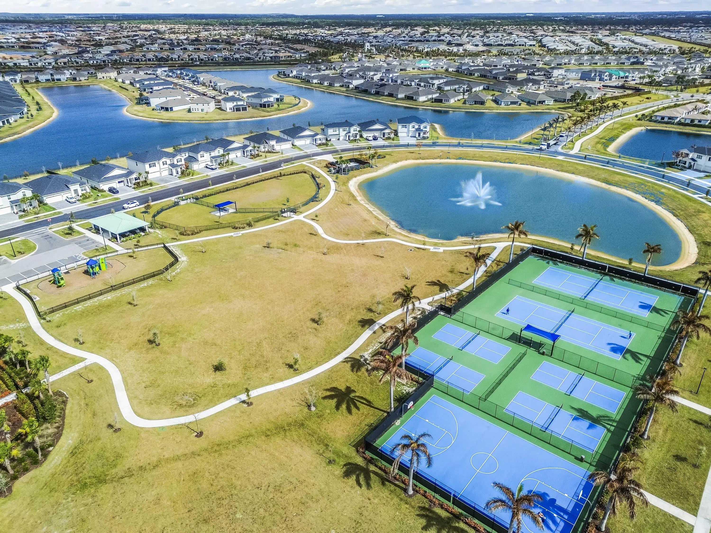 Basketball, Bike - Jog, Bocce Ball, Cabana, Clubhouse, Community Room, Fitness Trail, Game Room, Golf Course, Park, Pickleball, Picnic Area, Playground, Pool, Sidewalks, Street Lights, Tennis