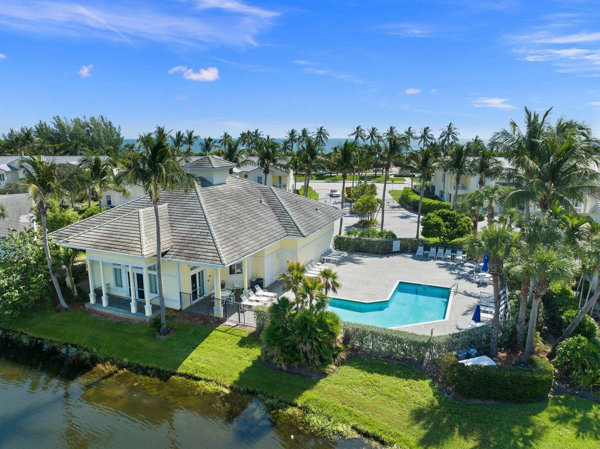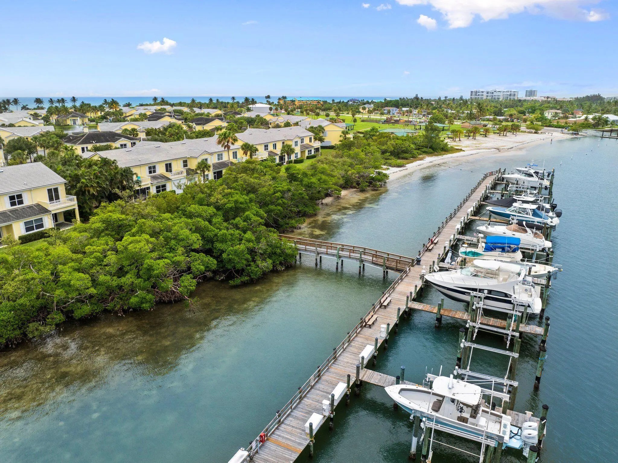 Step into the coastal lifestyle of Mariner Bay on South Hutchinson Island. Spacious 3 bedroom plus den/office, 2.5 bath townhouse w/ 2 car garage offers tall ceilings & room to spread out. New AC 10/25 & Roof 12/25. Beach access sits directly across the street from the community entrance, making sunrise strolls effortless. In the evenings, head to the community dock to watch the sunset, fish, or explore the option to purchase or lease a boat slip. Enjoy the small community feel, where neighbors gather for mahjong, book club, water aerobics, and various get togethers. The lakefront clubhouse offers a heated pool, fitness center, sauna, kitchen, & recreation/dining area. Outdoor lovers will appreciate nearby world class fishing. Next door at Jaycee Park, find pickleball, boat ramp, & more.
