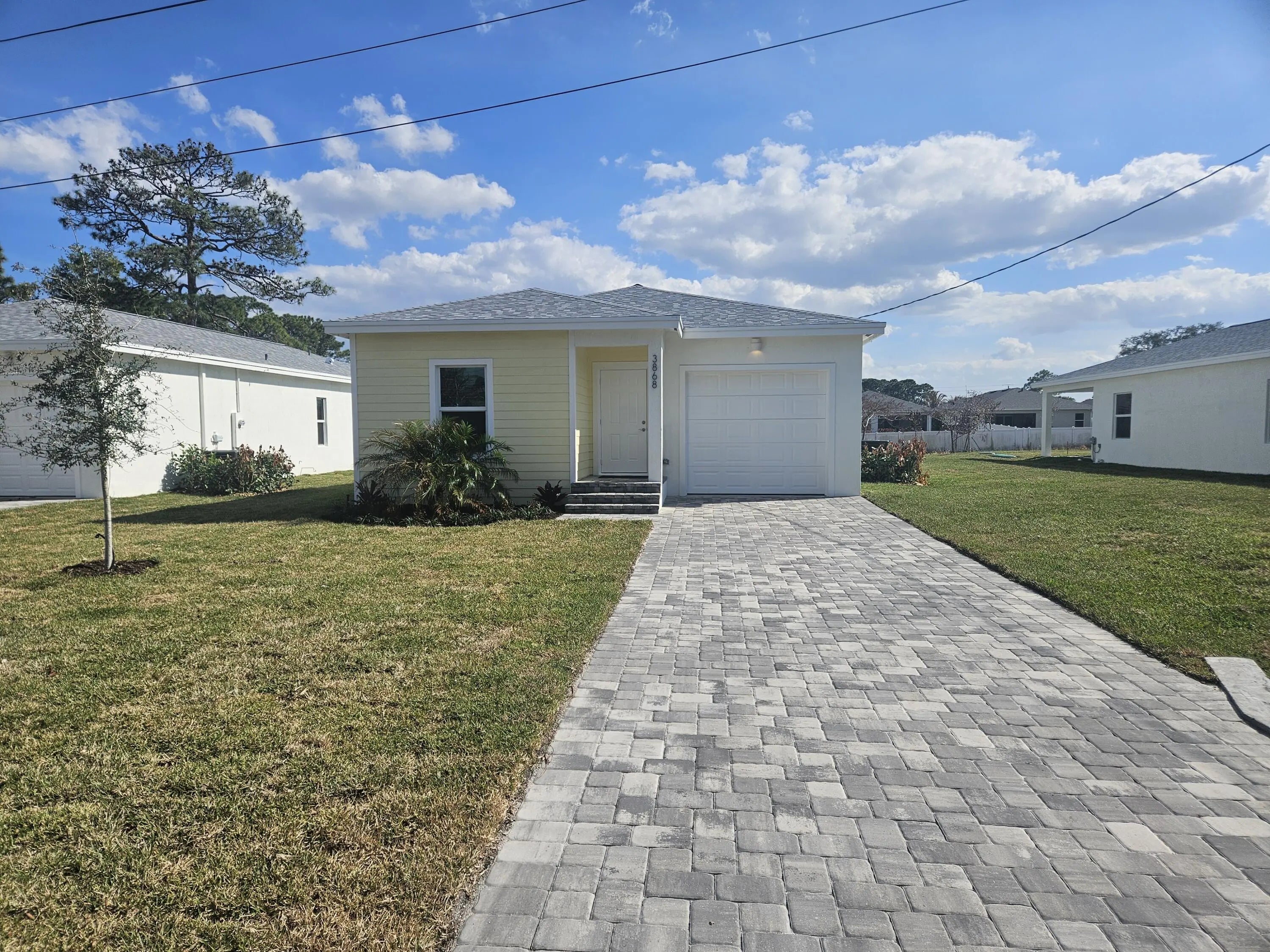 New Construction! 3 bed, 2 baths & garage. A WOPPING 1757 sqft. DONT LET THE ''COZY COTTAGE APPEARANCE FOOL YOU! THIS HOME HAS TON'S OF SPACE! Upgrades Galore.! Features 10'ceilings, 2'X4'' Porcelain Tile. Quality ALL WOOD Semi Custom Cabinetry/Quartz Counters throughout. Primary Features Walk in Closet & ensuite Bath w/Dual sinks. Solid Core Interior Doors, Upgraded 6'' Baseboard/4'' Casing, Closet Built in Organizers. Quality GE SS Kitchen Appliances, Upgraded Impact windows & doors. Laundry/Util Room. Upgraded Plumbing/Electrical fixtures/Ceiling Fans. Split Bedroom Design w/ large Open Great Room Incl Seating For 4 at Counter & Access to Covered Patio. Exterior Features Paver Driveway/Patio. Automated Irrigation & Large Rear Yard. Conveniently Located to Waterfront, Dining, parks & Mo